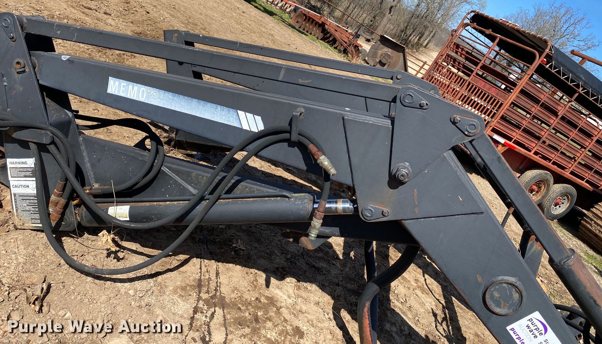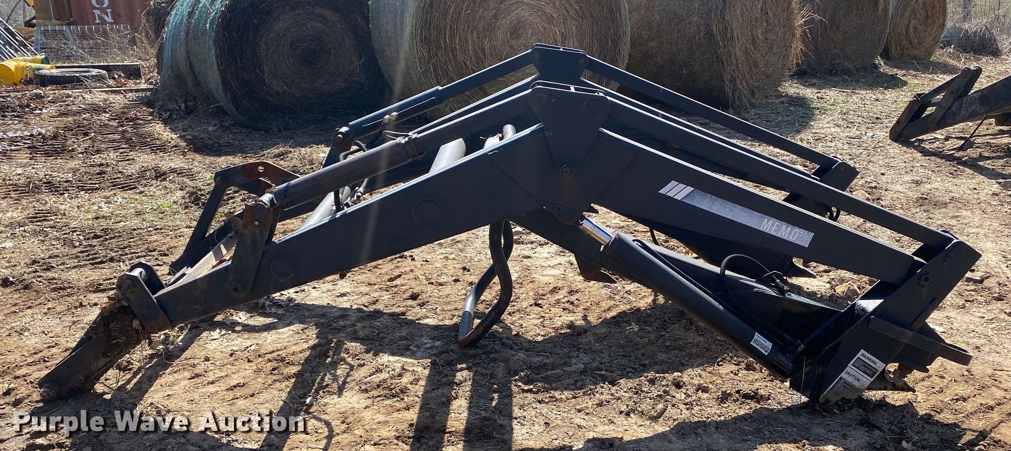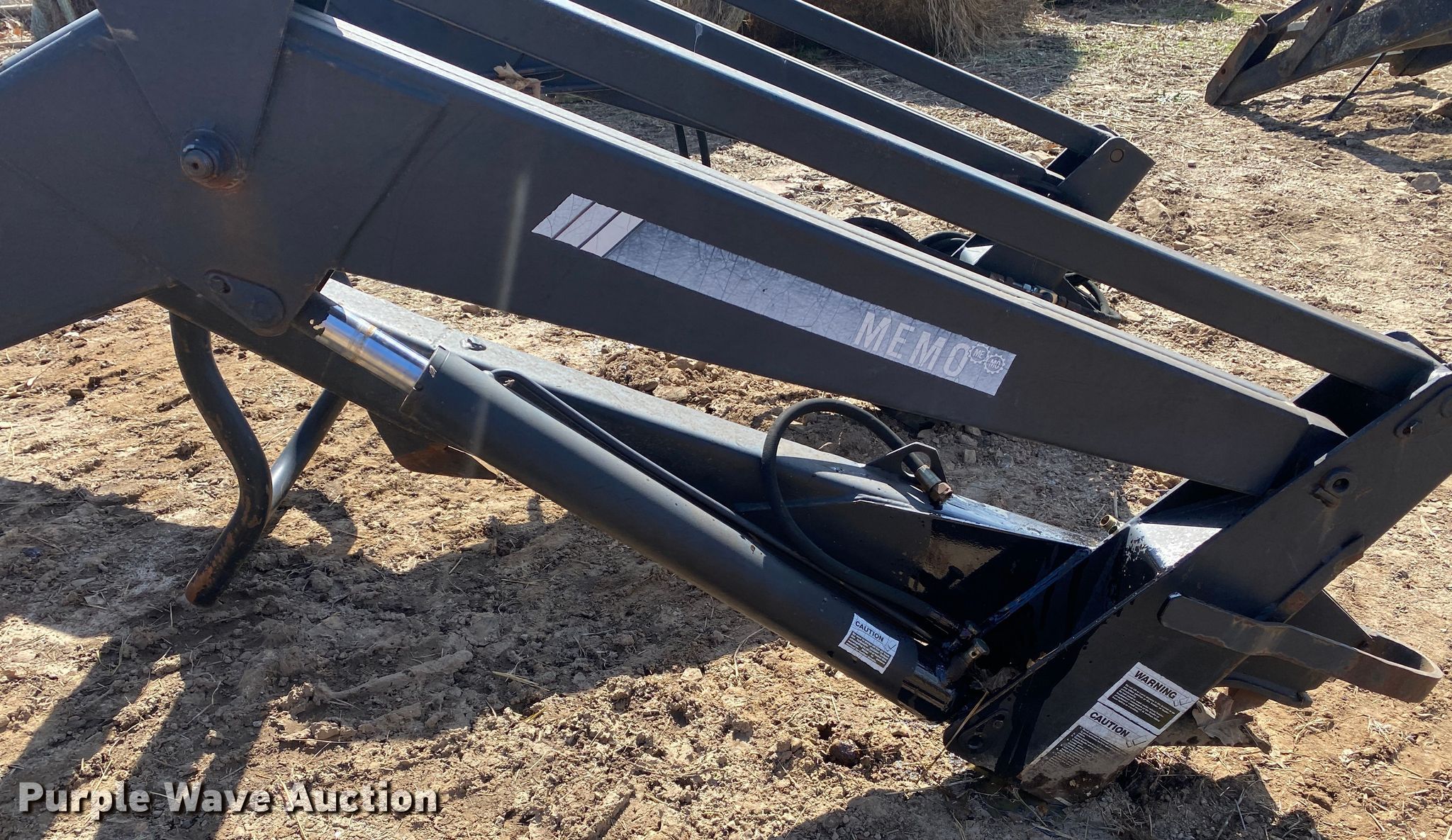 Purple Wave is selling a used Ag Tractor Loader or Attach. in Oklahoma. This item is a Memo loader with the following: Quick attach, Self-leveling