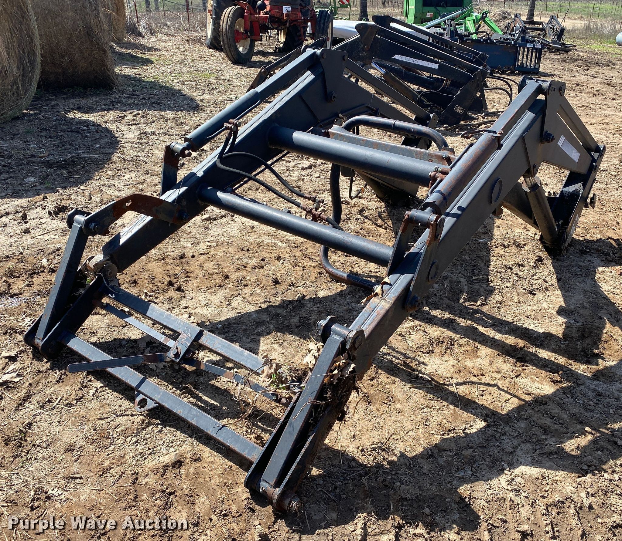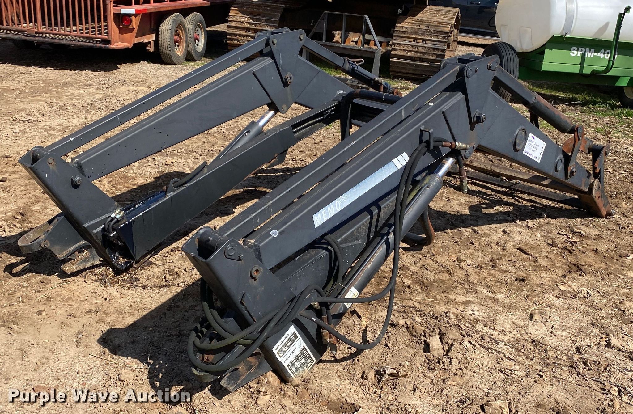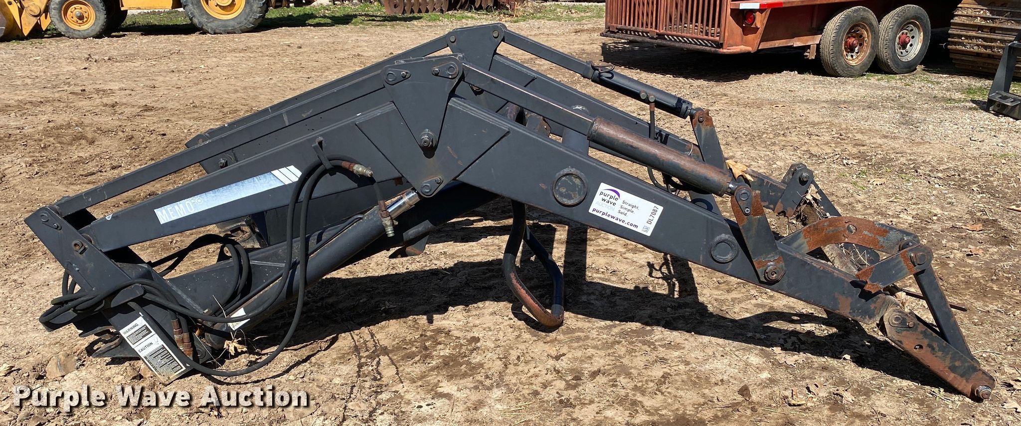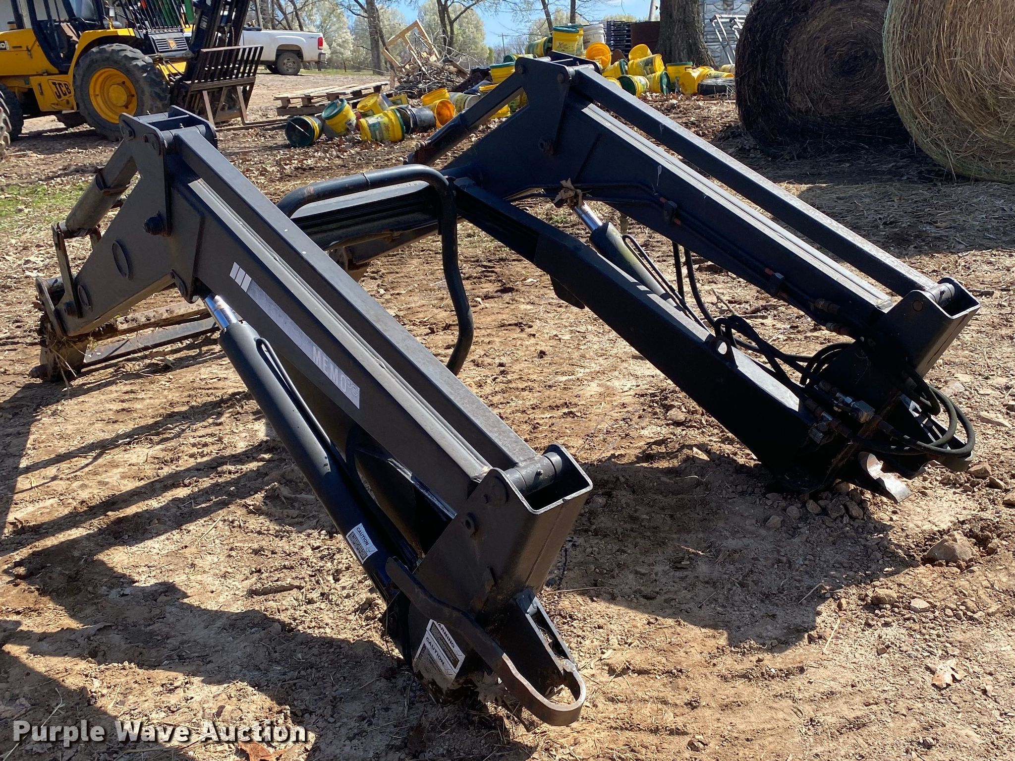 Purple Wave is selling a used Ag Tractor Loader or Attach. in Oklahoma. This item is a Memo loader with the following: Quick attach, Self-leveling