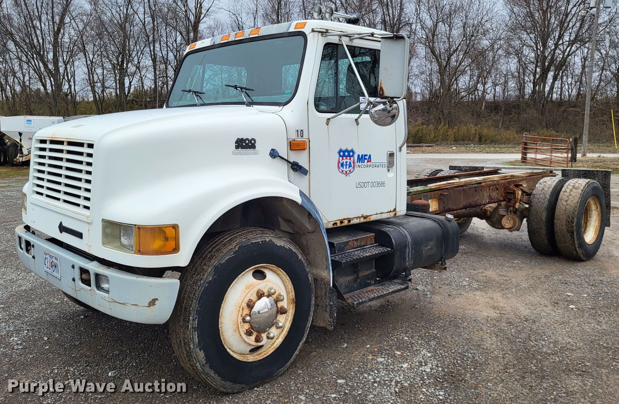 1995 International 4900 truck cab and chassis. Miles: 183,592 on odometer, VIN: 1HTSDAANXSH650362, Unit #: 10. Engine International DT466, Displacement: 7.6L, Cylinders: 6, Fuel type: Diesel. Transmission Spicer Double Duty D, Manual, Speed: 5, plus 2. Chassis Axles: Single, Suspension: Spring, Brakes: Air, PTO, Truck chassis: 13' 10". Interior Heat. Features Fuel tank: Single. Tires Size: 295/75R22.5. Notes Passenger door latch issues. Missouri title. MFA Ag Inc.. 717 South Hope Street. Jackson, MO 63755