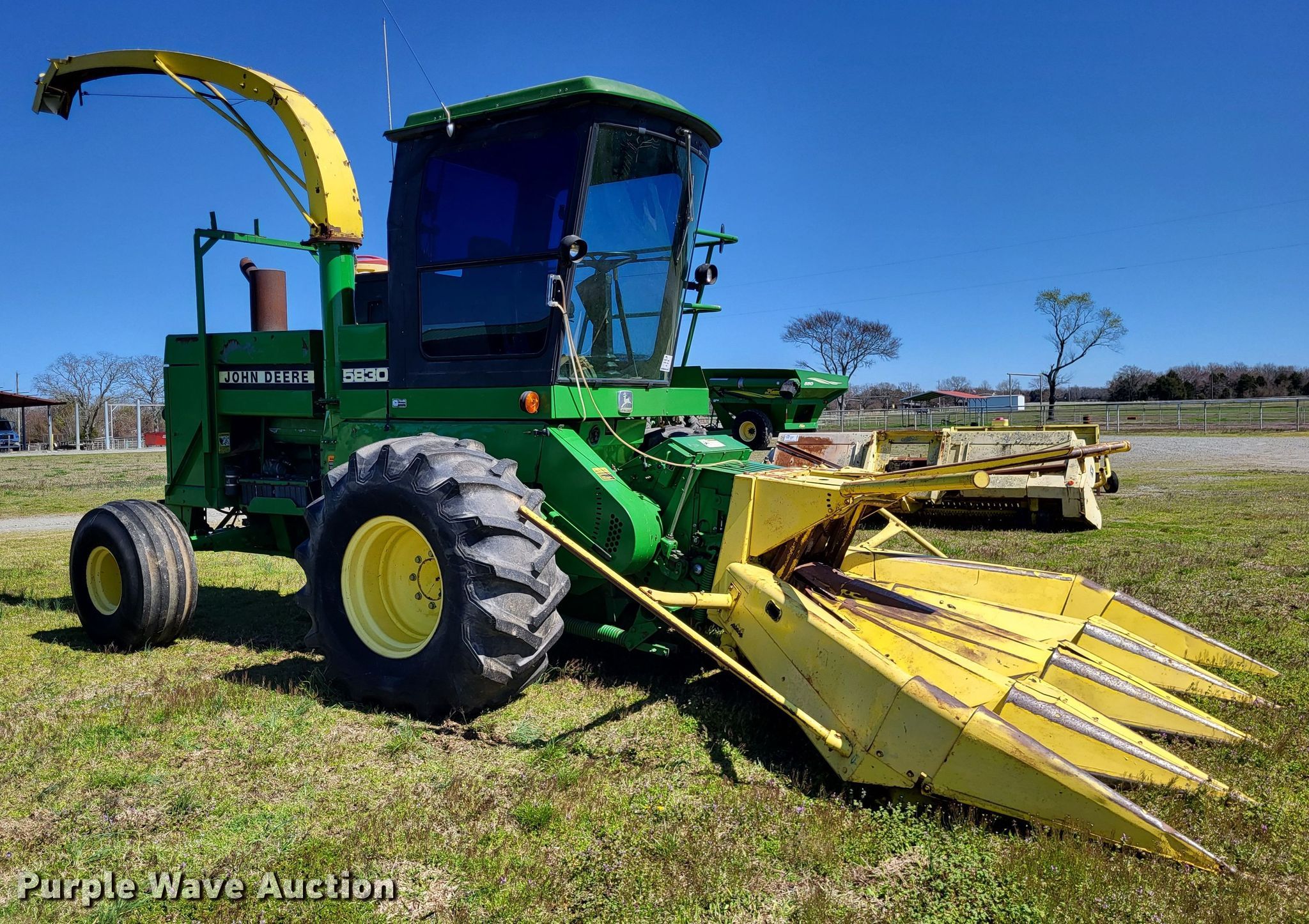 Purple Wave is selling a used Forage Harvester in Arkansas. This item is a 1990 John Deere 5830 forage harvester with the following: Engine hours: 273 on meter, Serial: E05830X852276