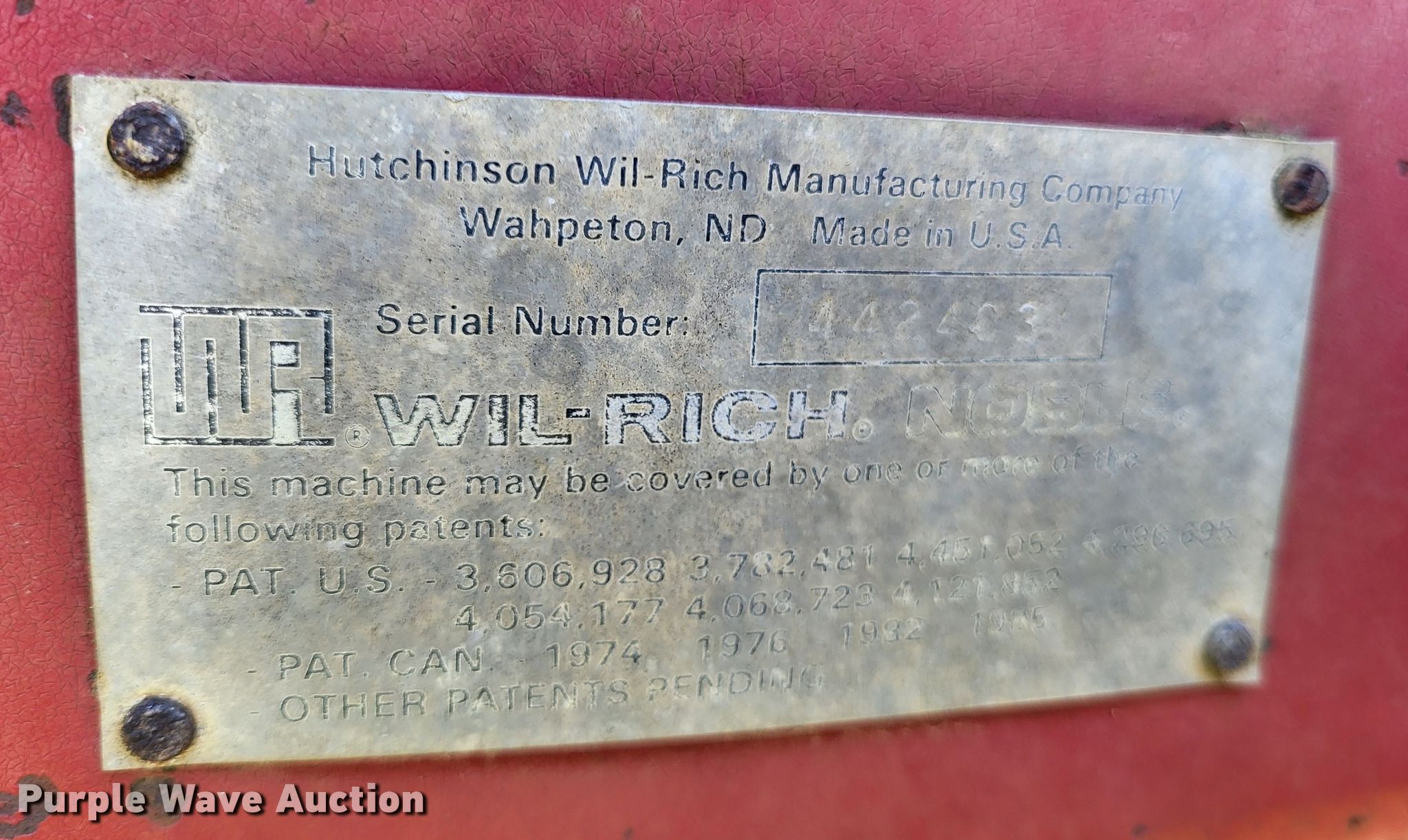 Hutchinson Wil-Rich 1400 mulch finisher. Overall width: 26', Serial: 442403, Unit #: 3. Features Operation Hydraulic lift, Hydraulic fold, Leveler: Manual, Attachments Spike tooth harrow Harrow bars: 5, Chopper reel. Tires Tire size: 9.5L-14. Lightning F Land & Cattle. 17 Cardin Circle. Enola, AR 72047