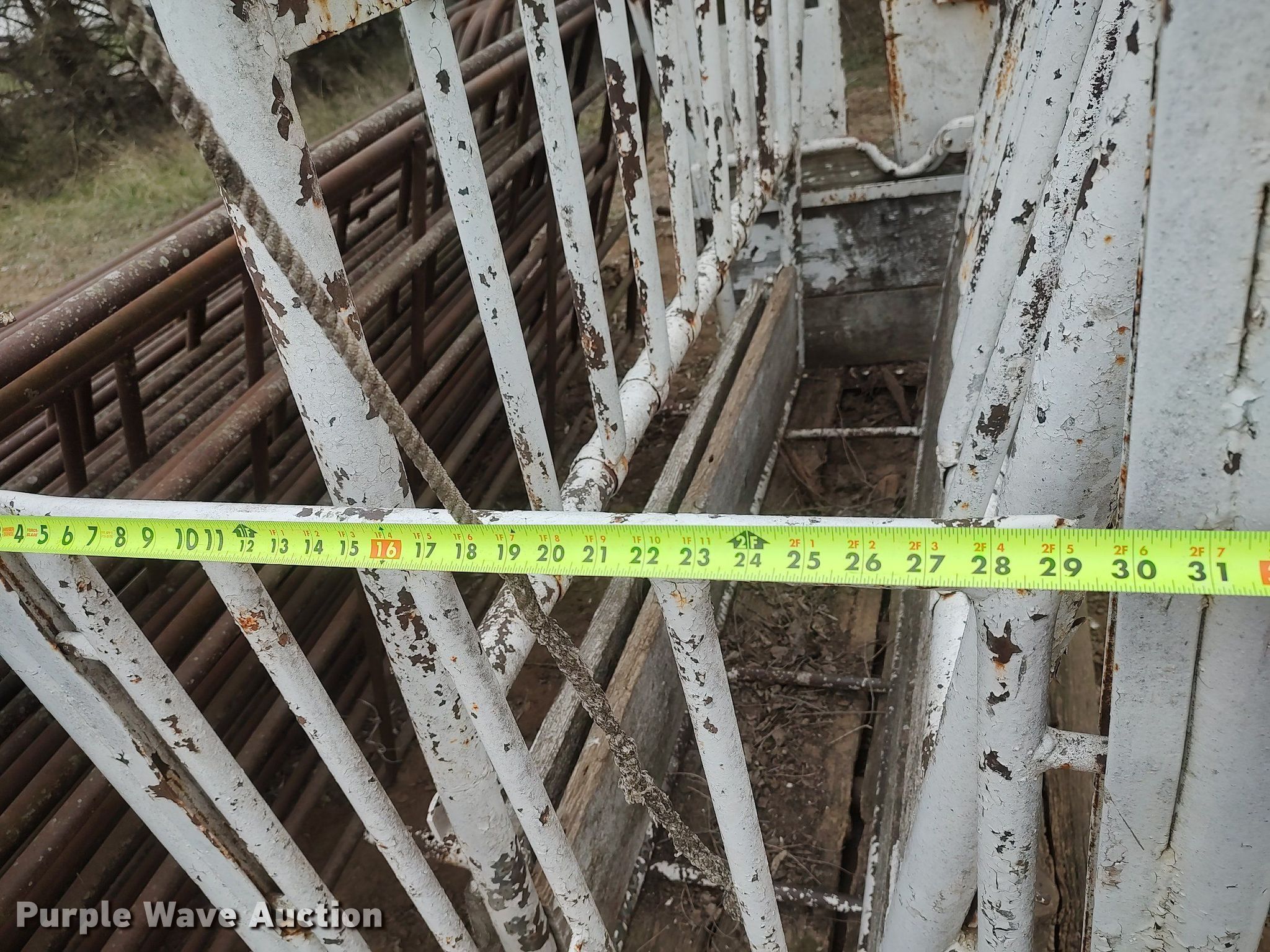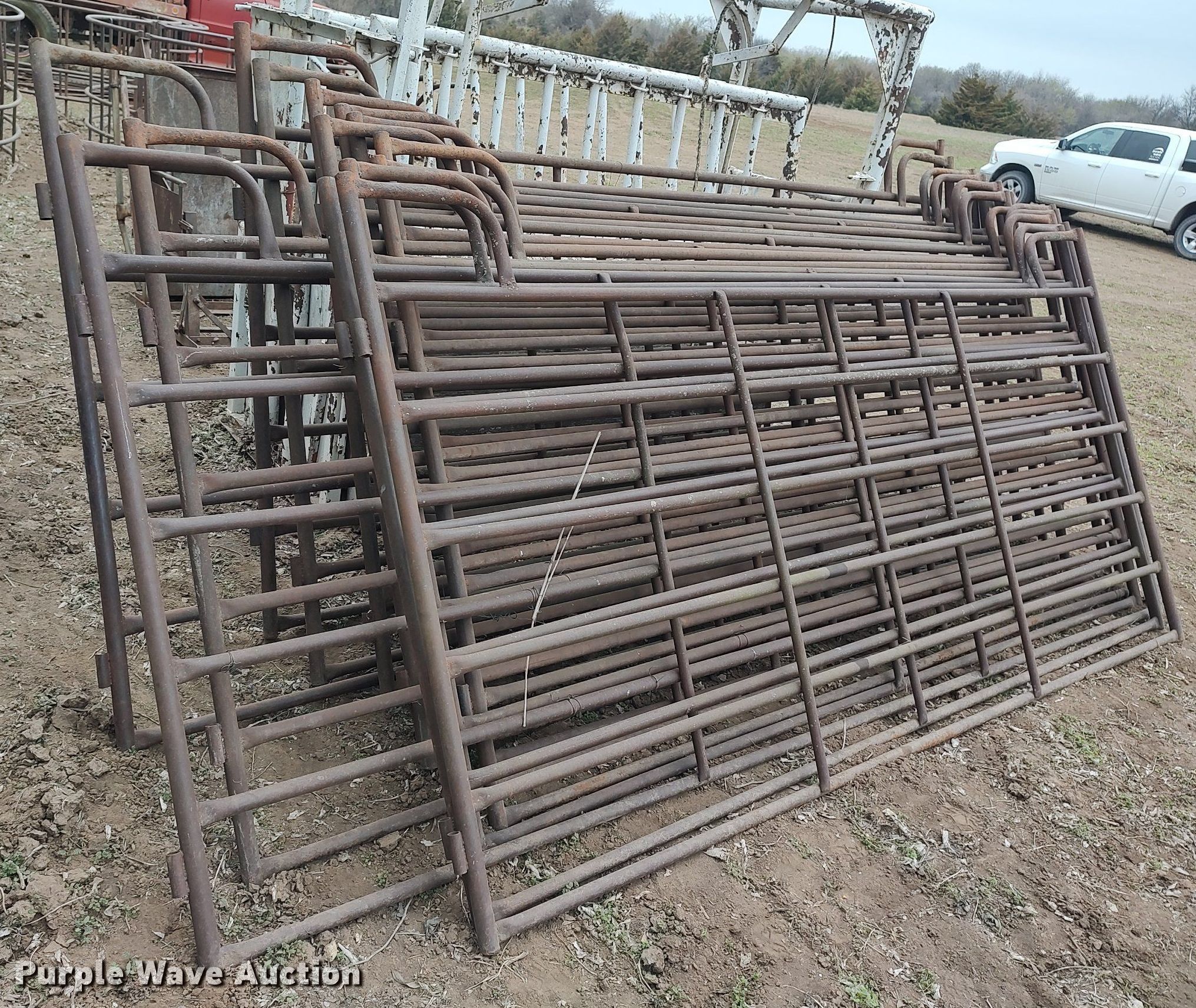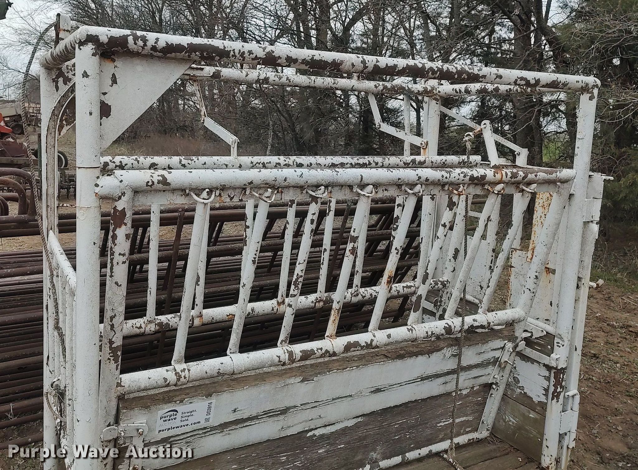 Purple Wave is selling a used Livestock Equip. in Kansas. This item is a Livestock equipment with the following: Livestock squeeze chute, Calf table, (14) fence panels, 10', 12'