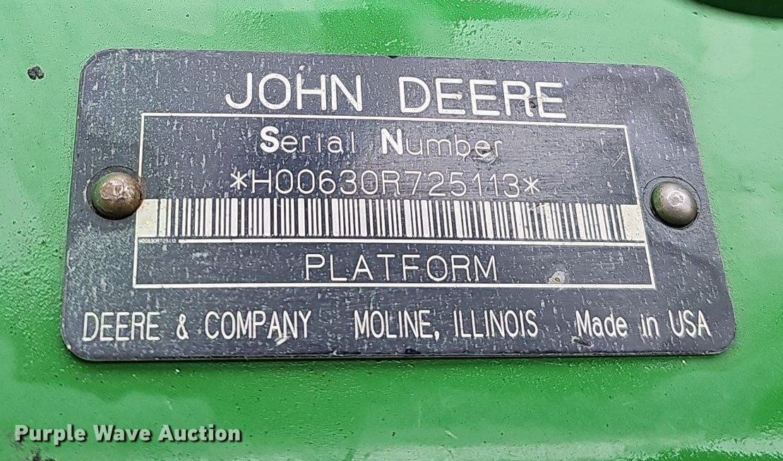 Purple Wave is selling a used Platform or Stripper Head in Nebraska. This item is a John Deere 630R rigid head with the following: Serial: H00630R725113