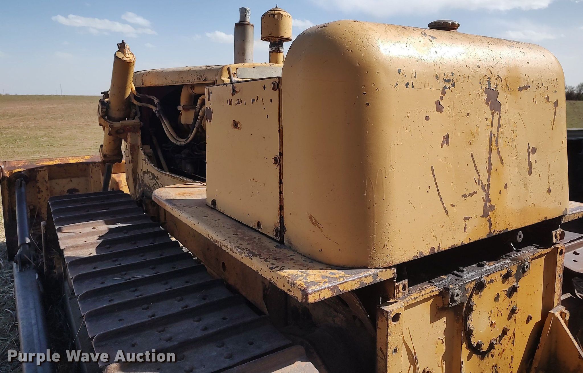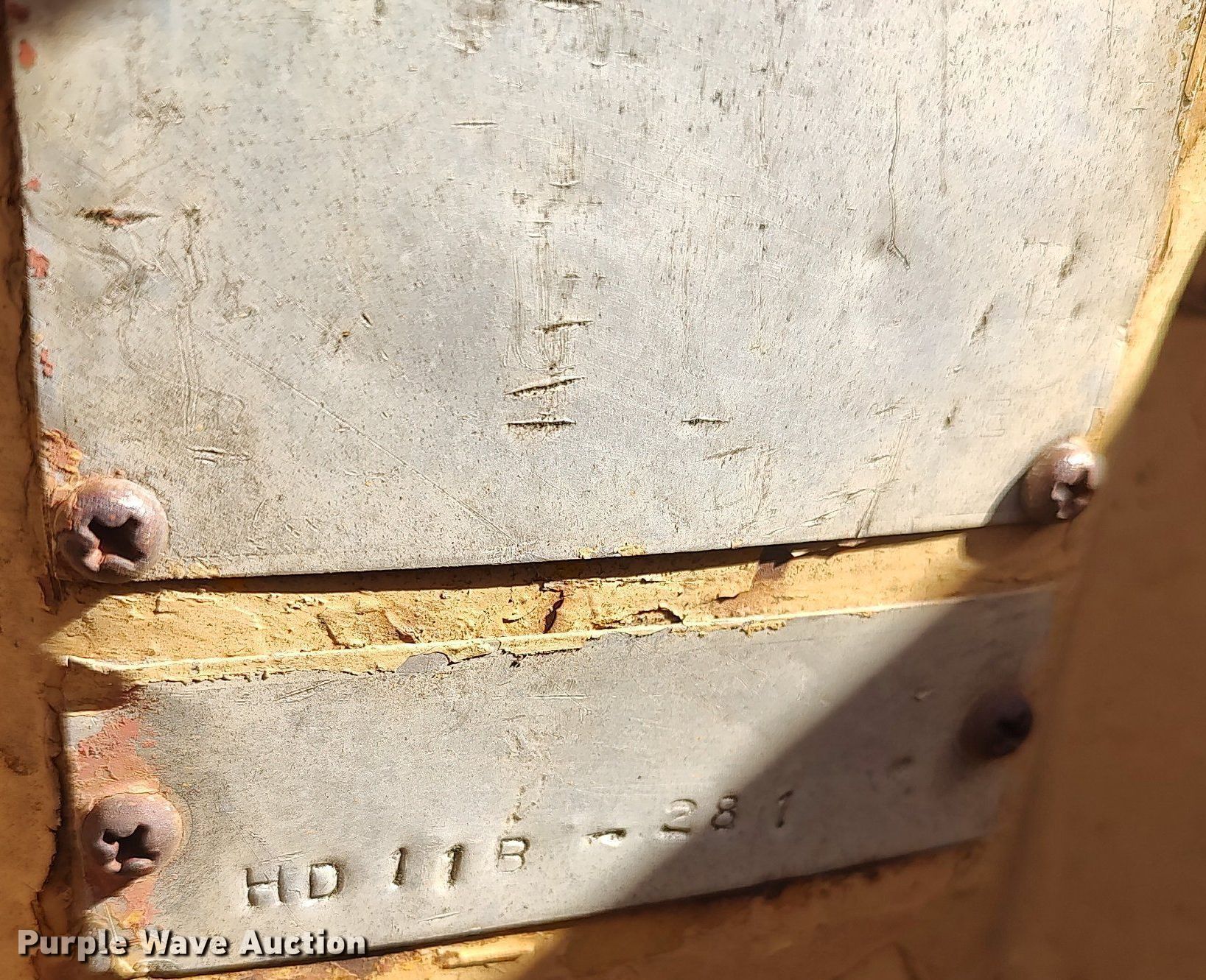 Allis Chalmers dozer. Serial: HD11B-281. Engine Cylinders: 6, Fuel type: Diesel. Transmission Direct-drive. Operators station Steering: Clutch brake. Features Dozer blade Type: Straight, Width: 118" W. Tracks Width: 20", Grouser pads: Single. Notes Non-operational unit. 1218 S. Hoover. Wellington, KS 67152