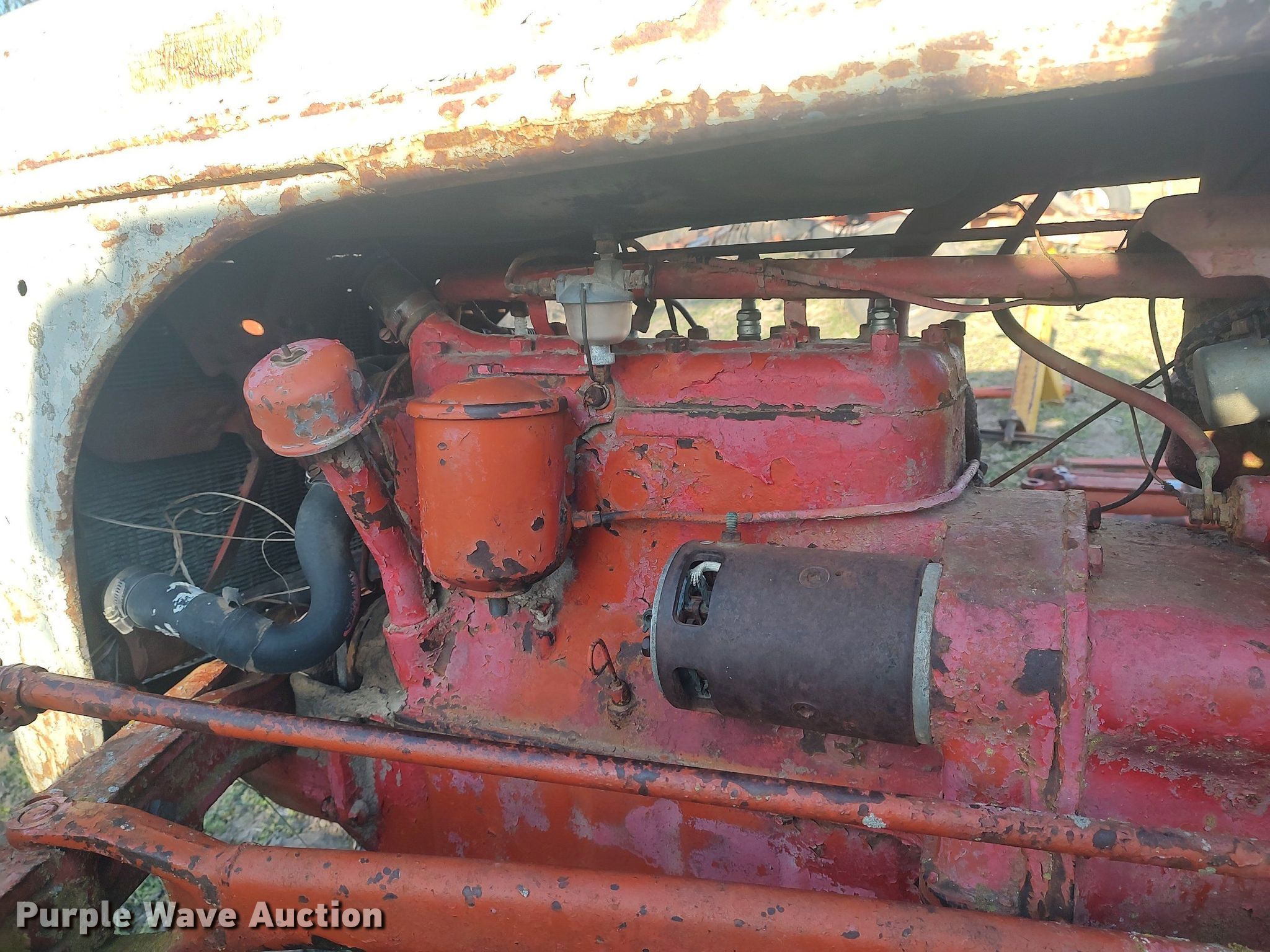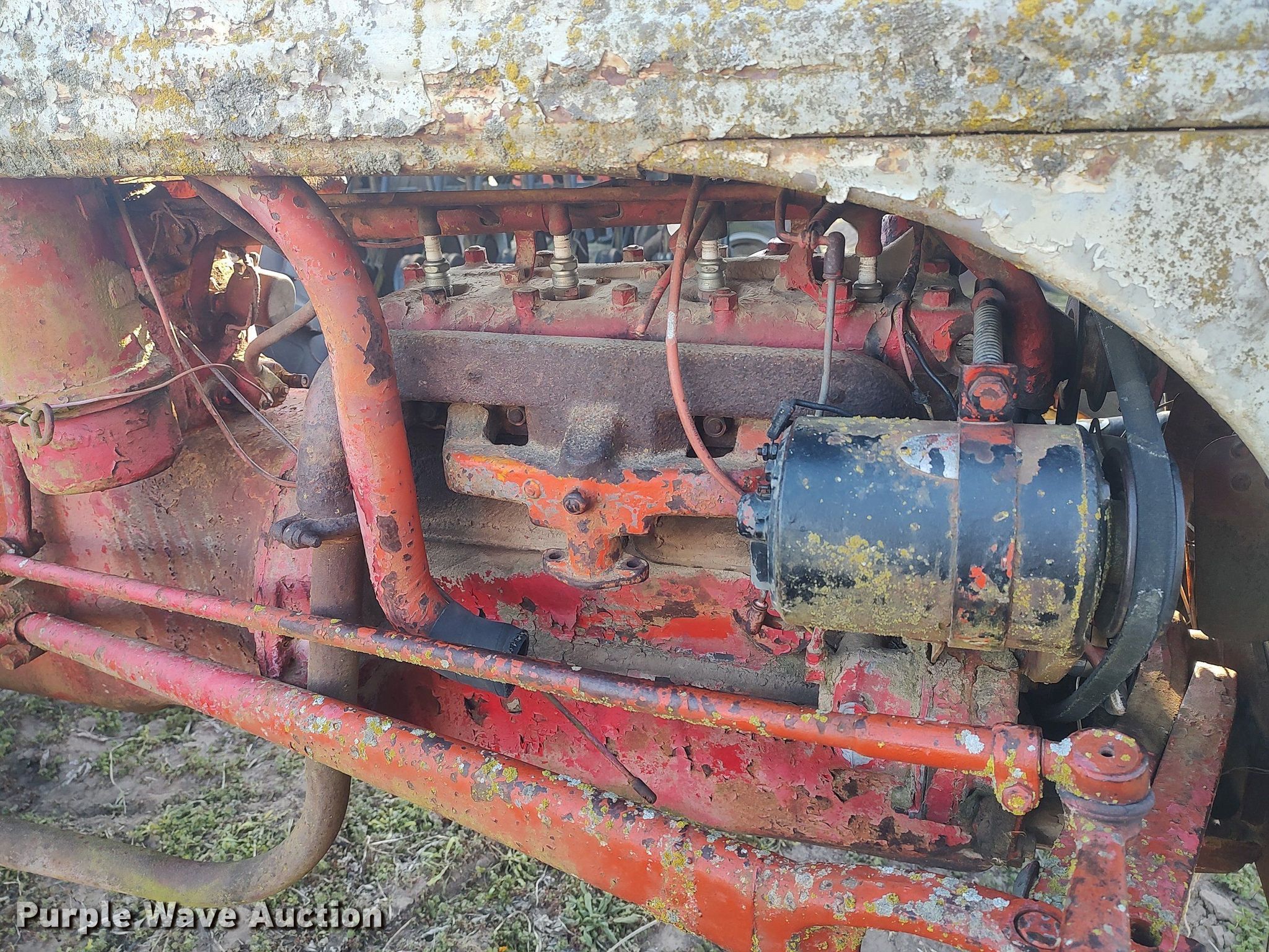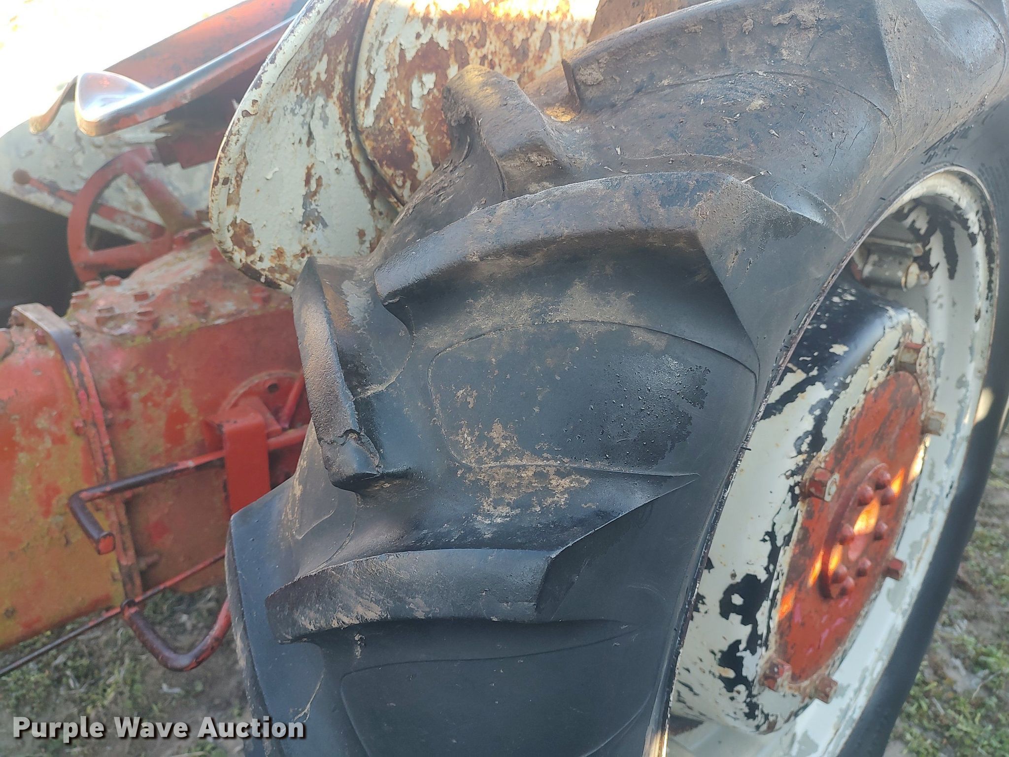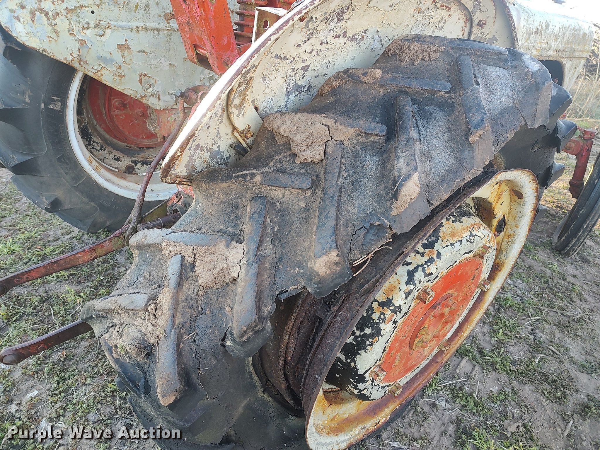 Ford tractor. Engine. Cylinders: 4, Fuel type: Gas. Transmission Manual. Features PTO: 540. Tires Front: 4.00-9, Rear: 22.4-28. Notes Non-operational unit. 1218 S. Hoover. Wellington, KS 67152