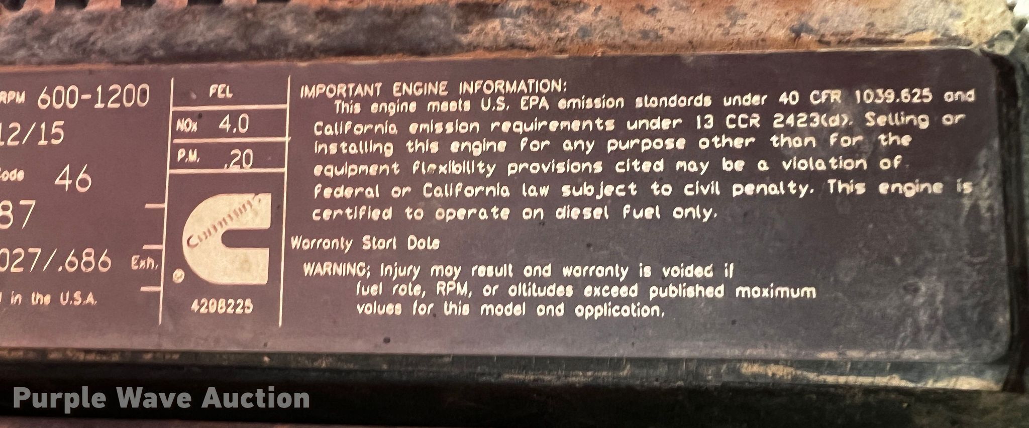 2013 Versatile 575 4WD tractor. Hours: 5,077 on meter, Miles or hours may vary, unit still in use, Serial: 704396. Engine Cummins QSX15, Serial: 79600961, Displacement: 15L, Cylinders: 6, Fuel type: Diesel, HP: 575, kW: 429. Transmission Powershift, 16F - 4R, Differential lock. Operators station AC, Heat, Display Versatile A6, Auto steer. Features Seven pin outlet, Hydraulic remote sets Rear: 6, Suitcase weights: 7. Tires Size: 710/70R42, Wheelbase: 154", Duals, Front duals. Lonesome Dove Farms. 455 County Rd 452. Hondo, TX 78861