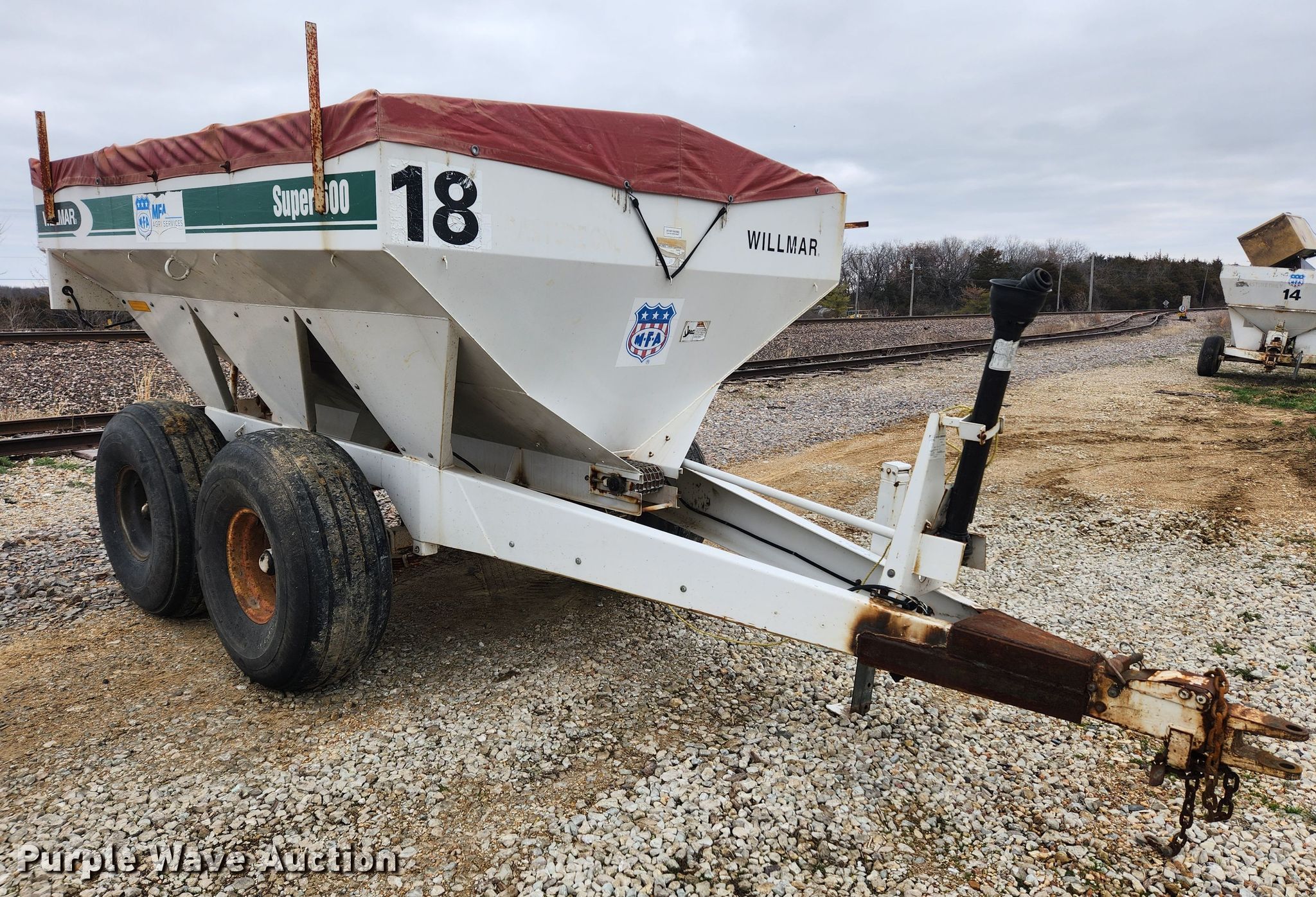 Purple Wave is selling a used Applicator Pull Type in Missouri. This item is a Willmar Super 600 fertilizer spreader with the following: PTO: 540, Dry fertilizer spreader, Dual spinners, Roll tarp, Ground drive, Conveyor belt, Width: 7",