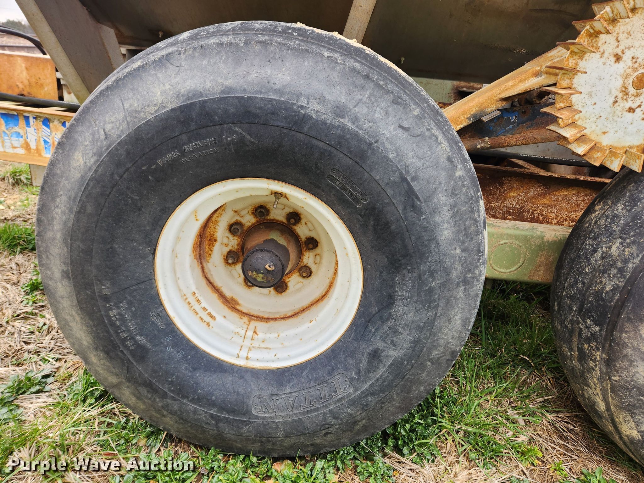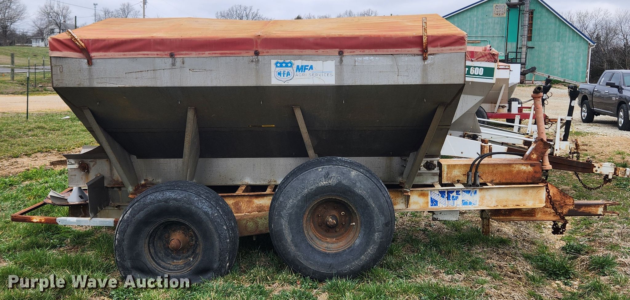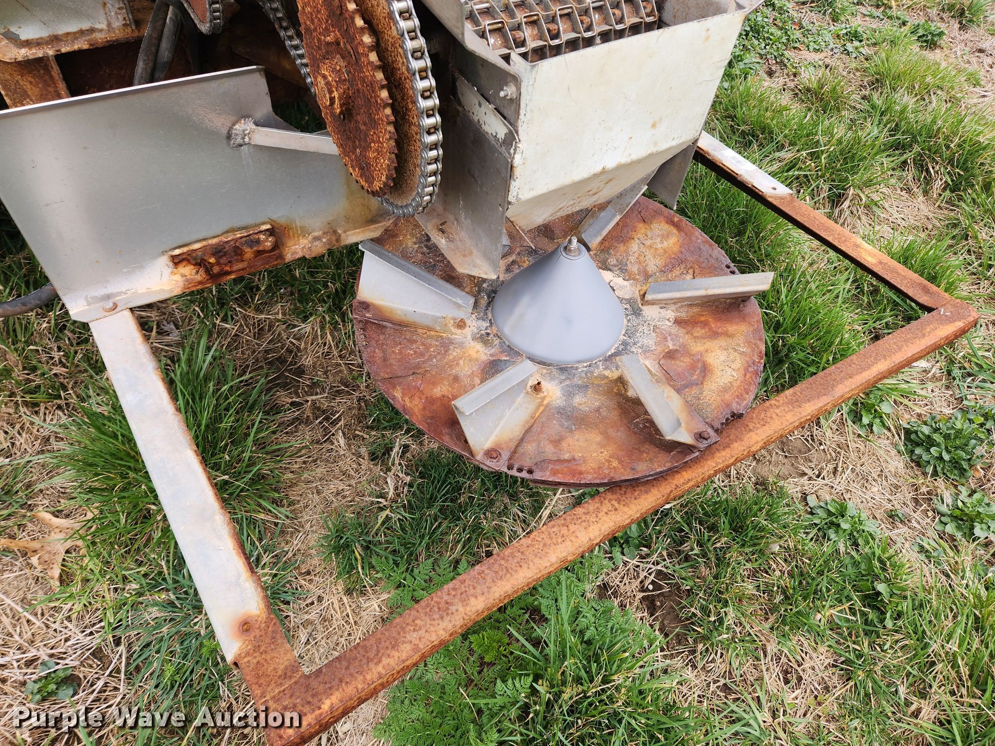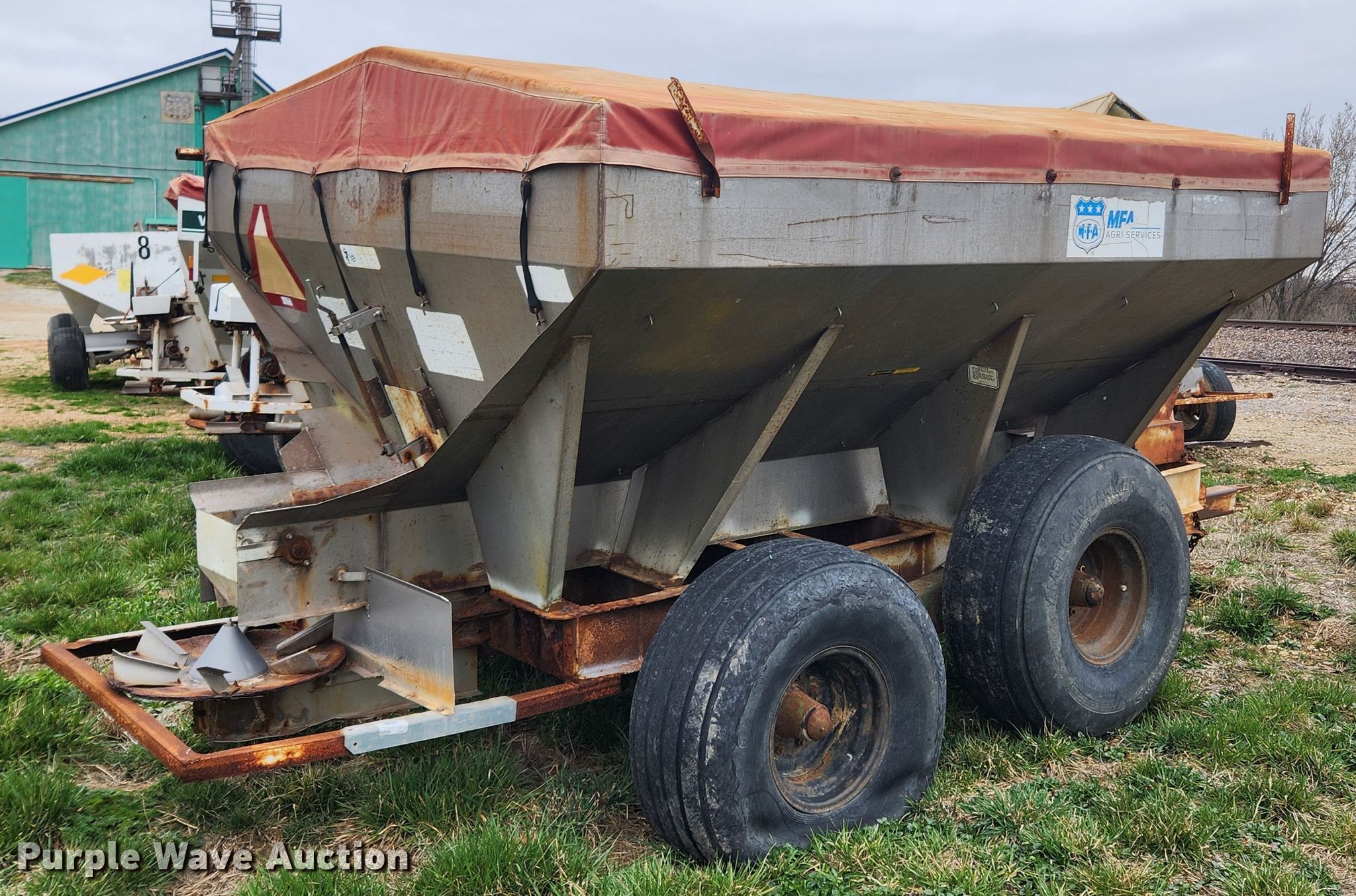 Purple Wave is selling a used Applicator Pull Type in Missouri. This item is a Tyler fertilizer spreader with the following: PTO: 540, Dry fertilizer spreader, Stainless steel, Roll tarp, Ground drive, Conveyor belt, Width: 10",