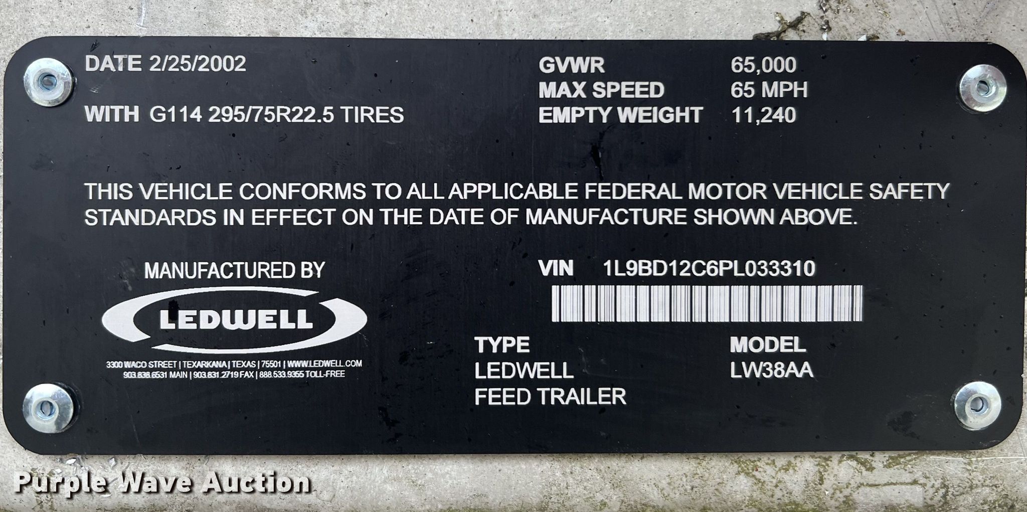 Take a look at this used 1993 Ledwell LW38AA feed delivery trailer being sold on April 19th, 2023 in the SOLD! April 19 Ag Equipment Auction made by Ledwell. Take a look at all of the item information below or take a look at similar auctions for Ag Trailers.