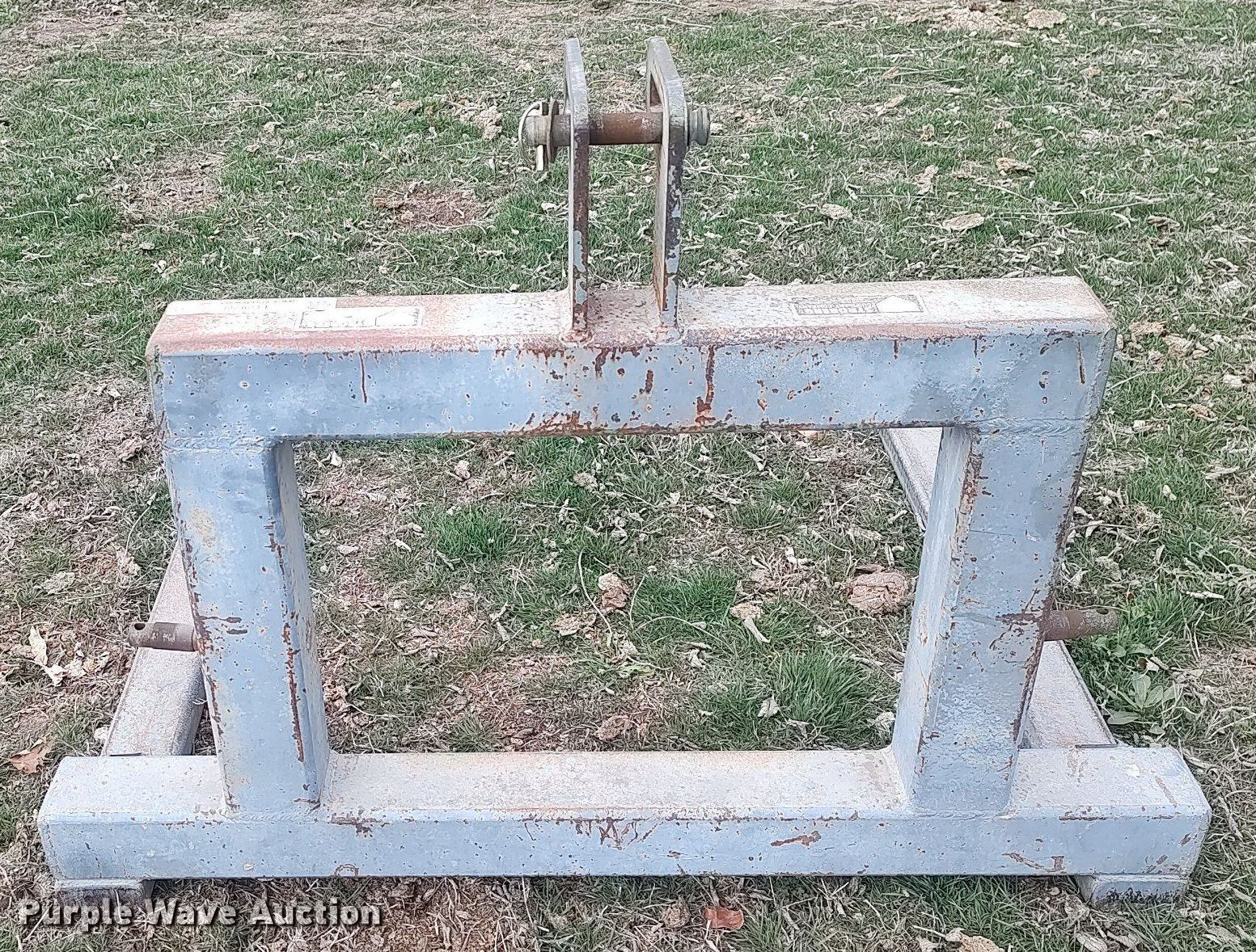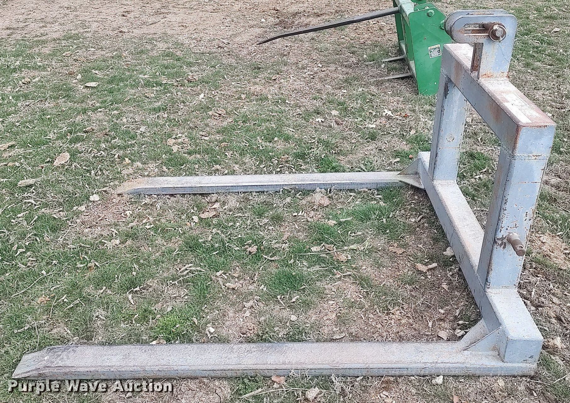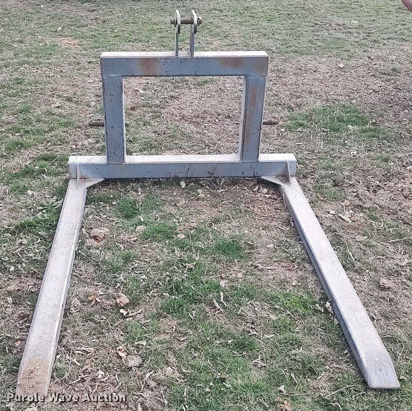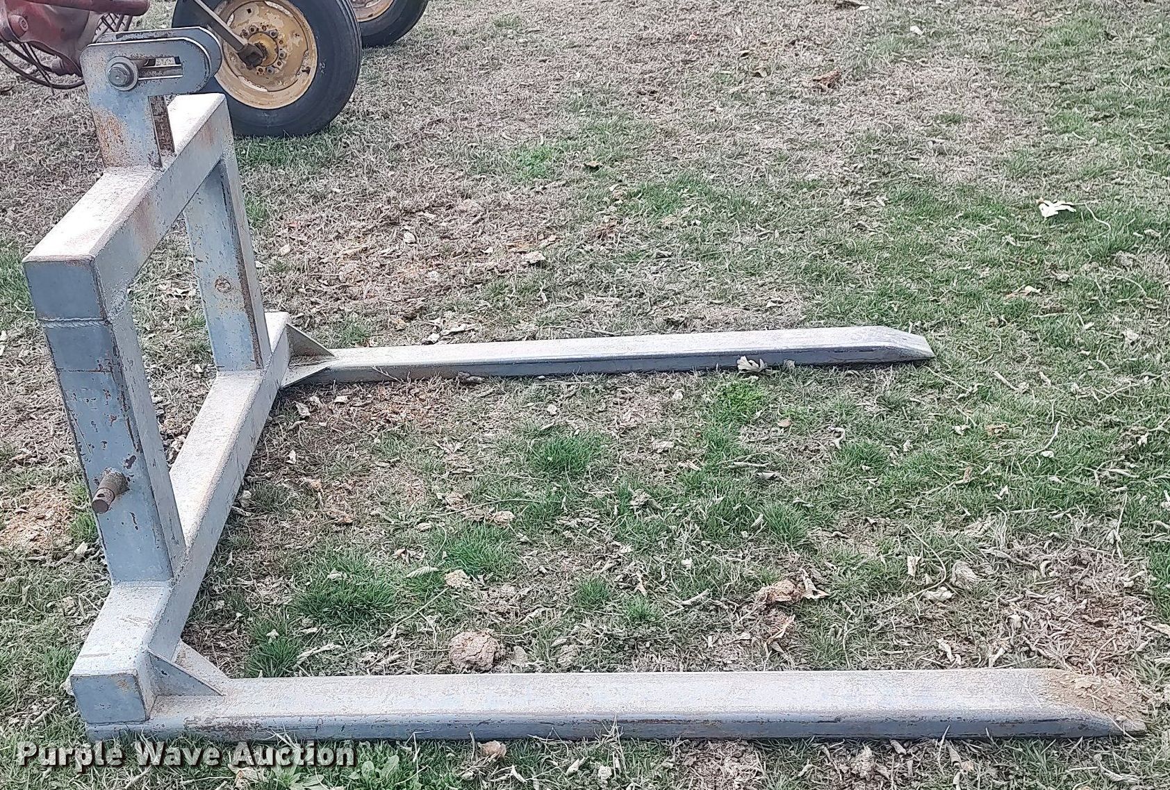 Purple Wave is selling a used Hay Handling in Kansas. This item is a Stroberg bale forks with the following: Length: 57", Hitch: Three point
