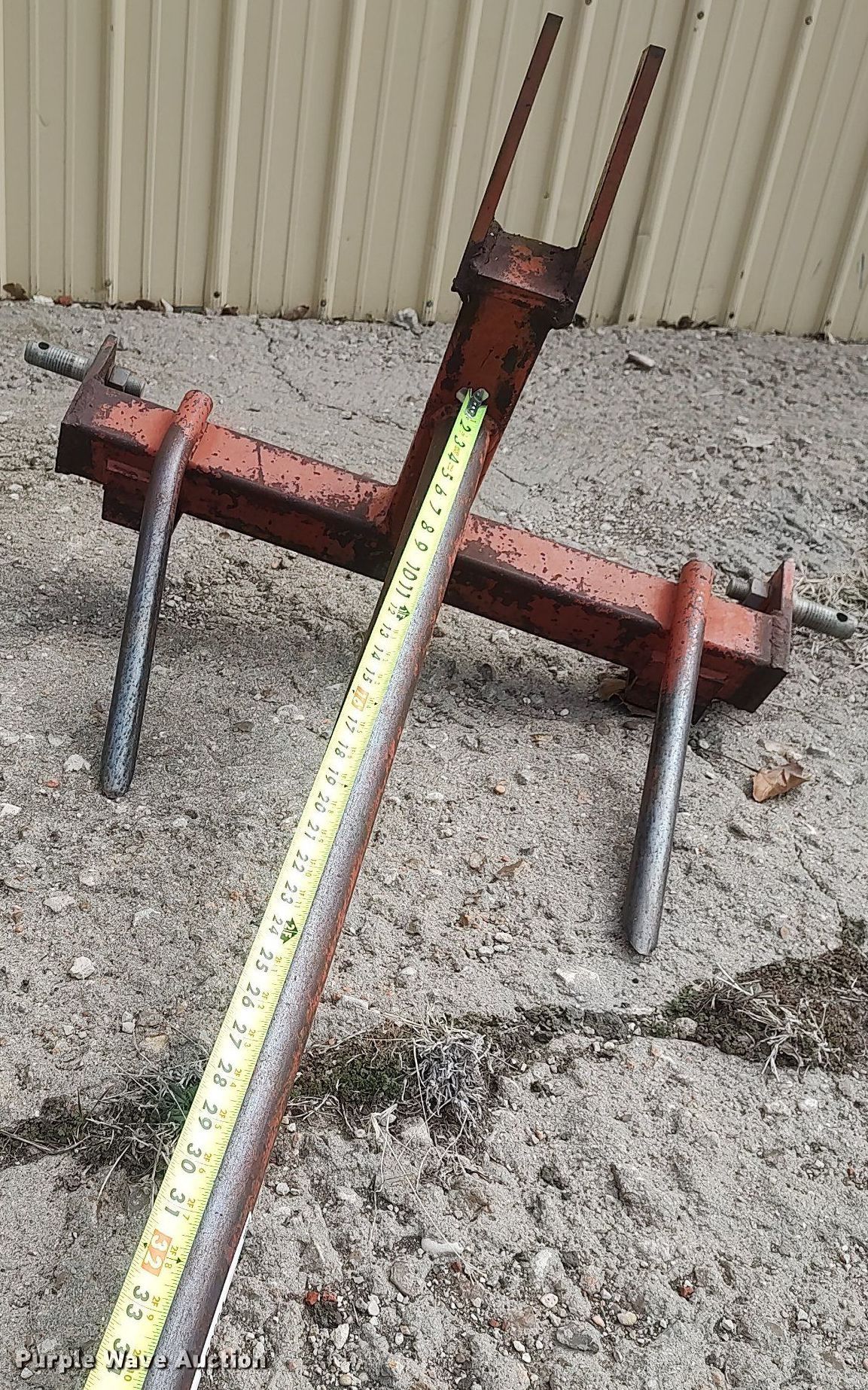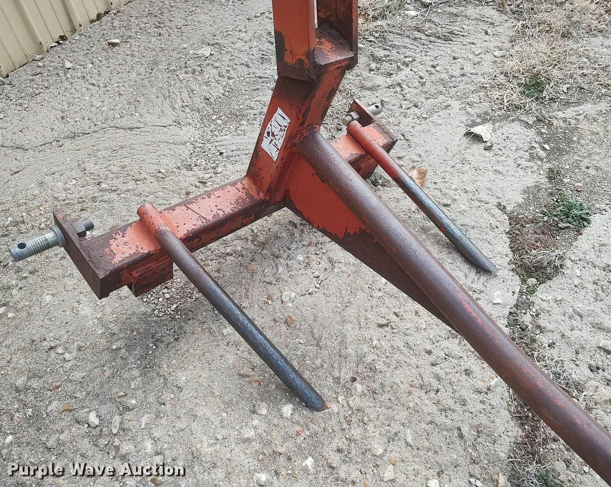 Purple Wave is selling a used Hay Handling in Kansas. This item is a 42"L bale spear with the following: Hitch: Three point
