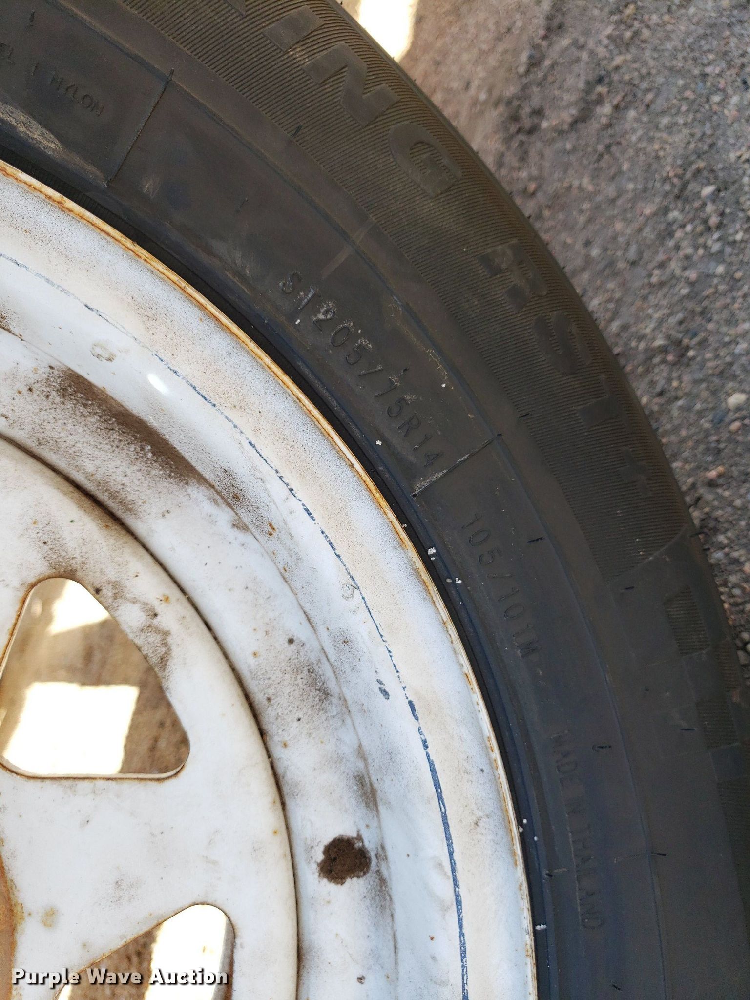 Ag shield canola header trailer. Dimensions. Overall: 35' L x 86" W. Chassis Landing gear: Single. Tires Steel wheels, Size: 205/75R14. Notes Trailer light wiring damage, Header not included. 1137 90th Ave. Kinsley, KS 67547