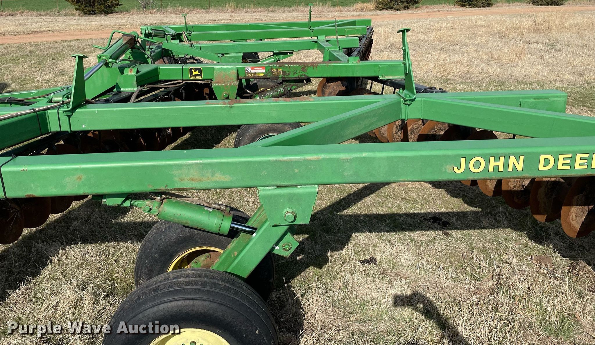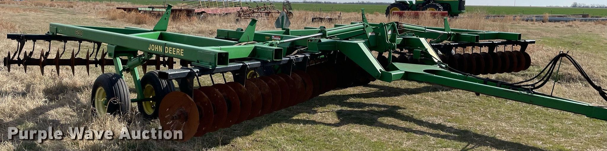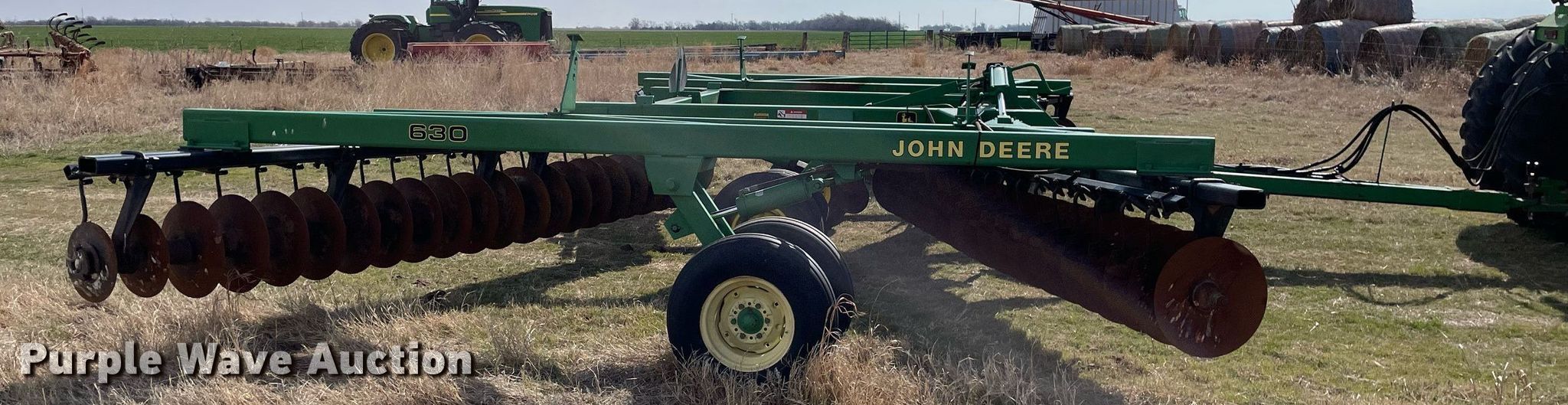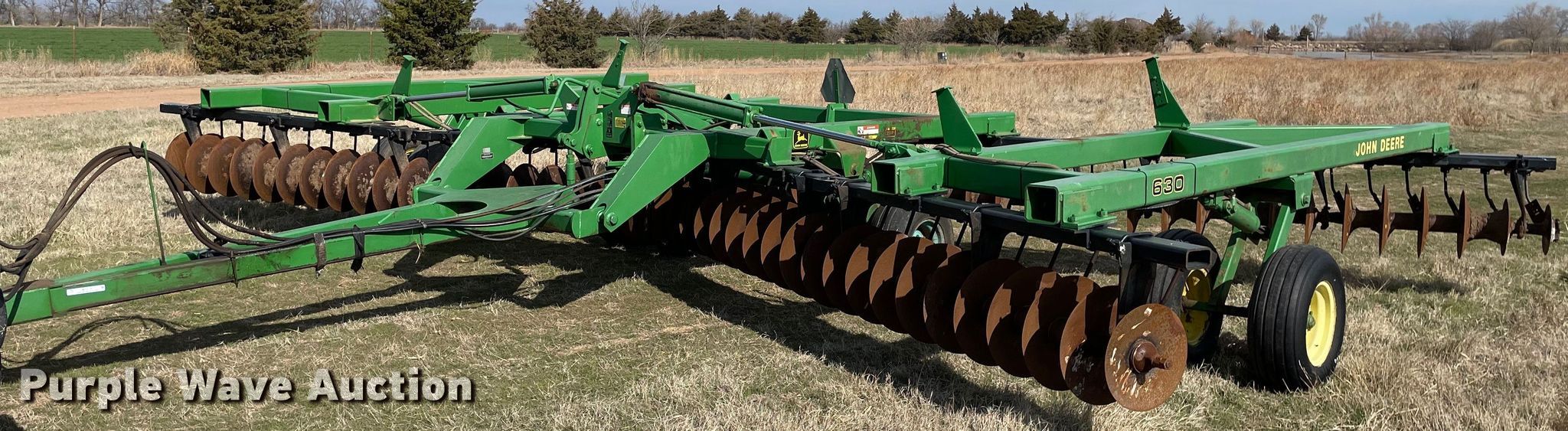 Purple Wave is selling a used Disk in Kansas. This item is a John Deere 630 tandem disk with the following: Overall width: 30', Serial: N00630X008123