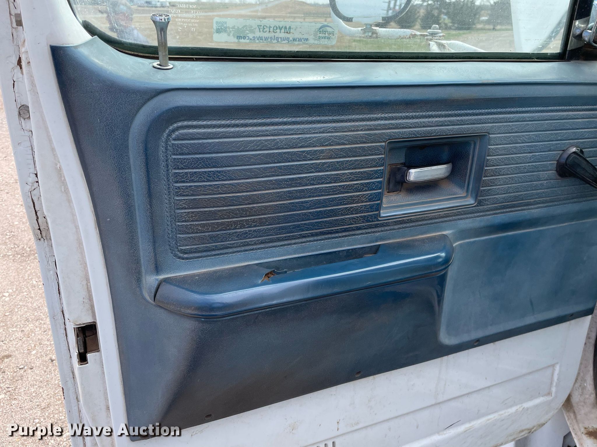 1980 GMC 6000 semi truck. Miles: 43,035 on odometer, VIN: T17DBAV573146. Engine Displacement: 366 C.I.D., Cylinders: 8, Fuel type: Gas. Transmission Manual, Speed: 5, plus 2. Chassis Axles: Single, Suspension: Spring, Brakes: Air, Truck chassis: 9' 2", GVWR: 25,500 lbs FAWR: 7,000 lbs, RAWR: 18,500 lbs. Interior AC, Heat. Features Deck plate: Steel, Fifth wheel type: Fixed, Fuel tank: Dual. Tires Size: 10.00R20. Kansas antique title. Title distribution may be delayed up to 30 days from verification of funds. Jim Stephens Estate. Inman, KS 67546