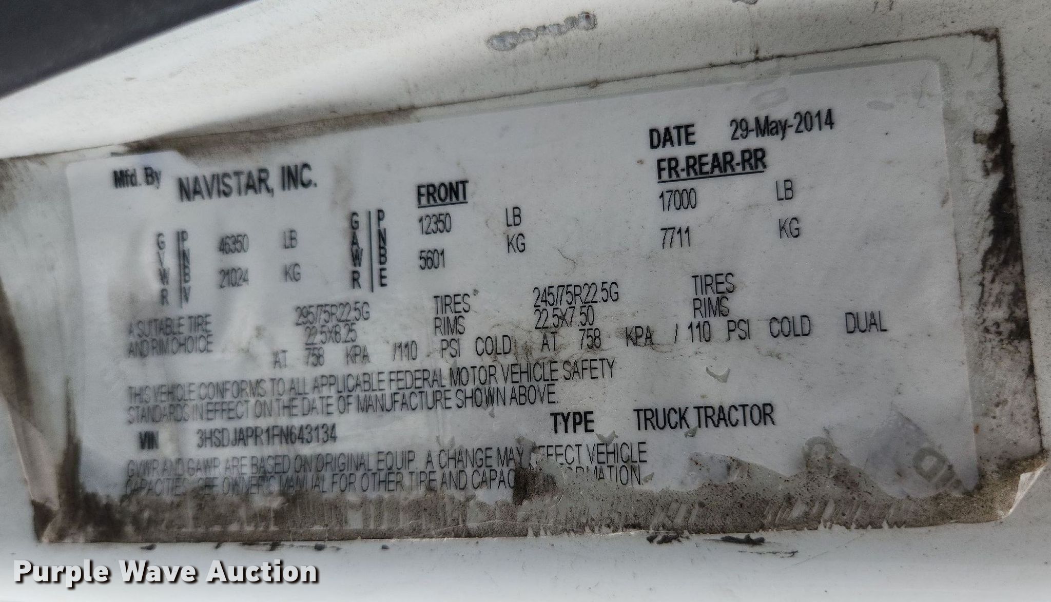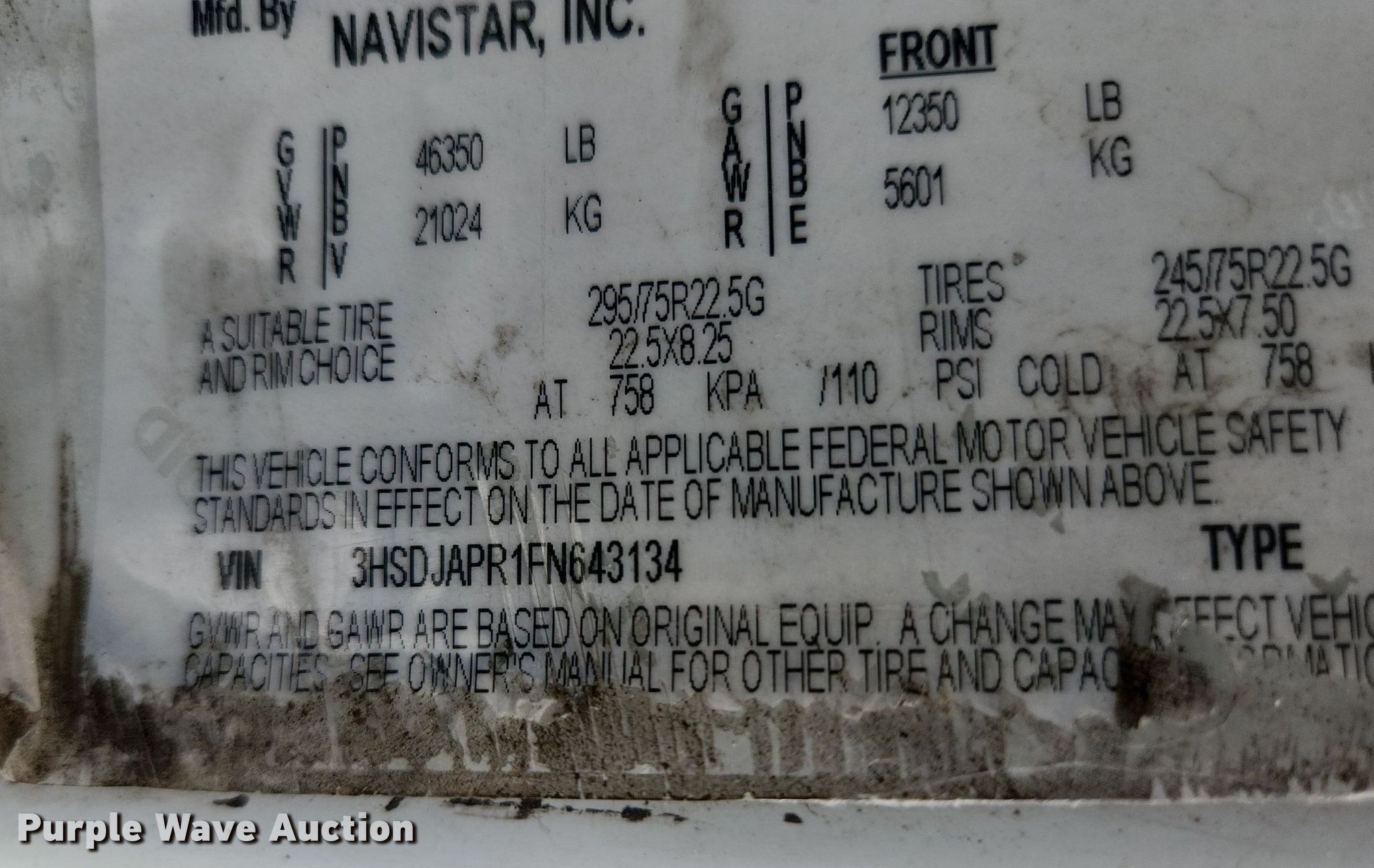 - VIN: 3HSDJAPR1FN643134