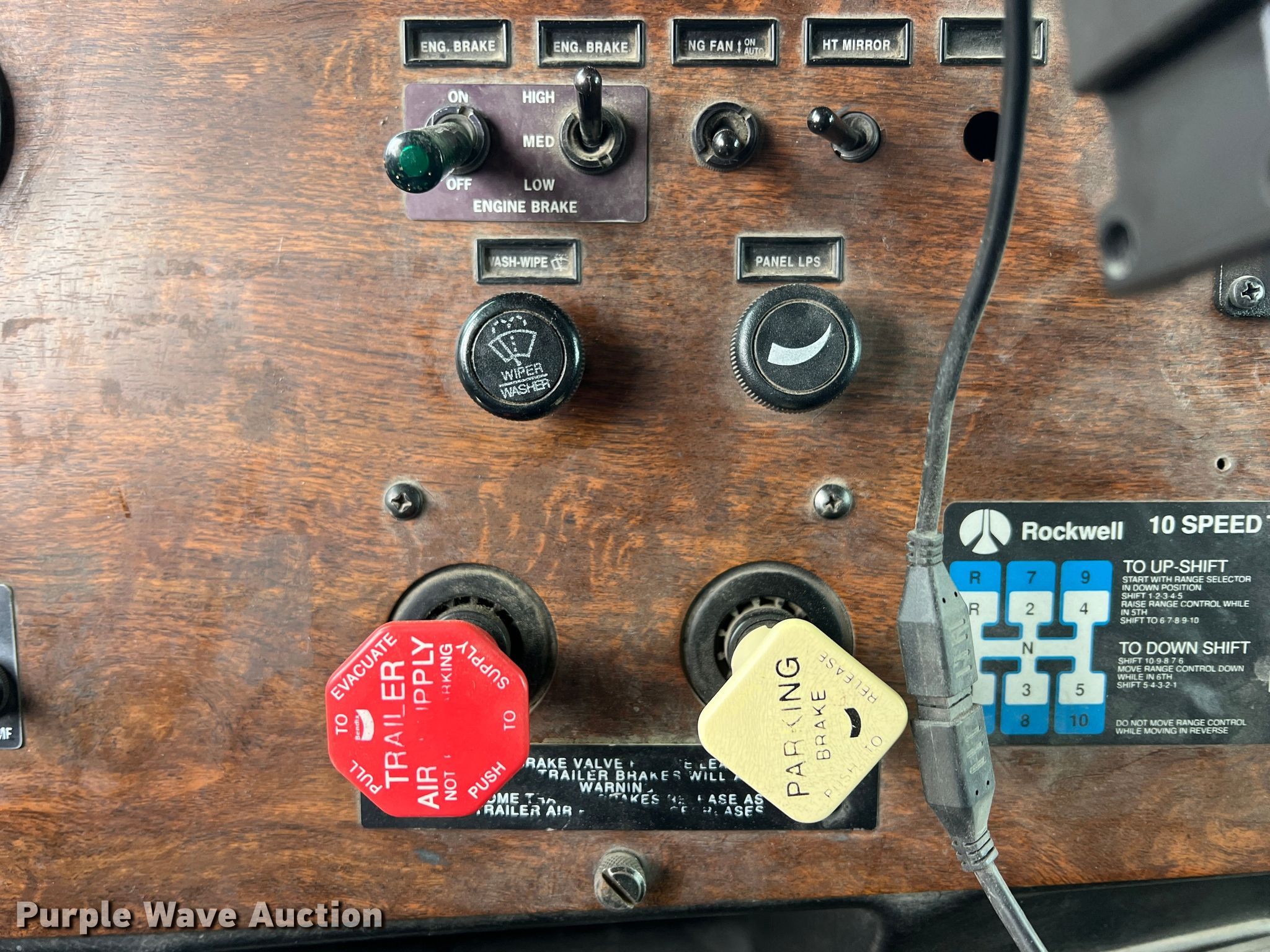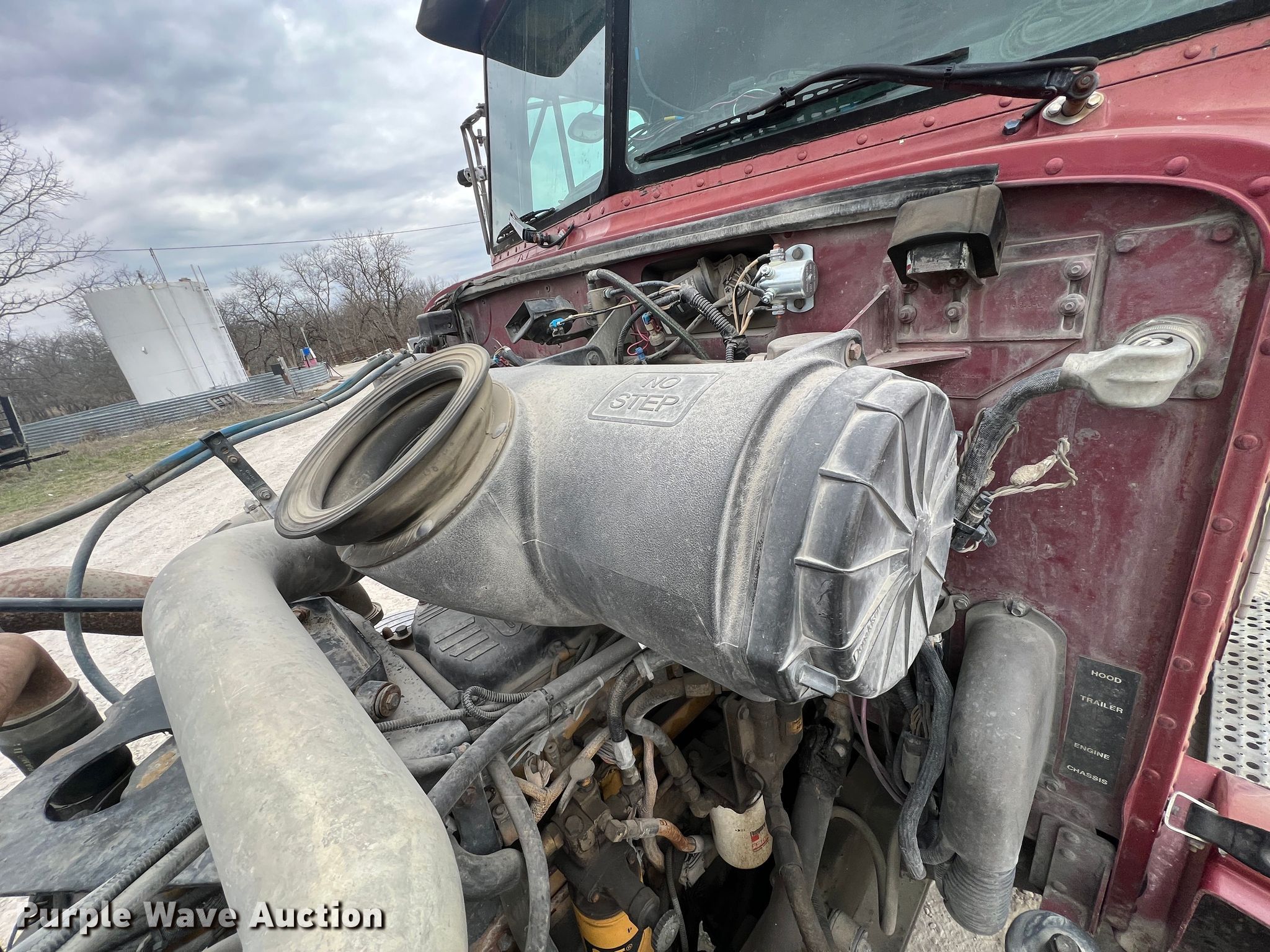 1997 Peterbilt 385 semi truck. Miles: 116,348 on odometer, VIN: 1XPGDU9X9VD428741. Engine Caterpillar C12, Displacement: 12.0L, Cylinders: 6, Fuel type: Diesel, Engine brake. Transmission Rockwell, Manual, Speed: 10. Chassis Axles: Tandem, Differential lock: Inter-axle, Suspension: Air, Brakes: Air, PTO. Interior AC, Heat, Heated mirrors, Cruise control, Air ride cab, Sleeper Sleeper length: 3', Beds: Single, Rear climate control. Features Deck plate: Aluminum, Fifth wheel type: Fixed, Fuel tank: Single. Tires Size: 295/75R22.5. Kansas title. Title distribution may be delayed up to 14 days from verification of funds. Coover Trucking. 17670 180th Rd. Erie, KS 66733