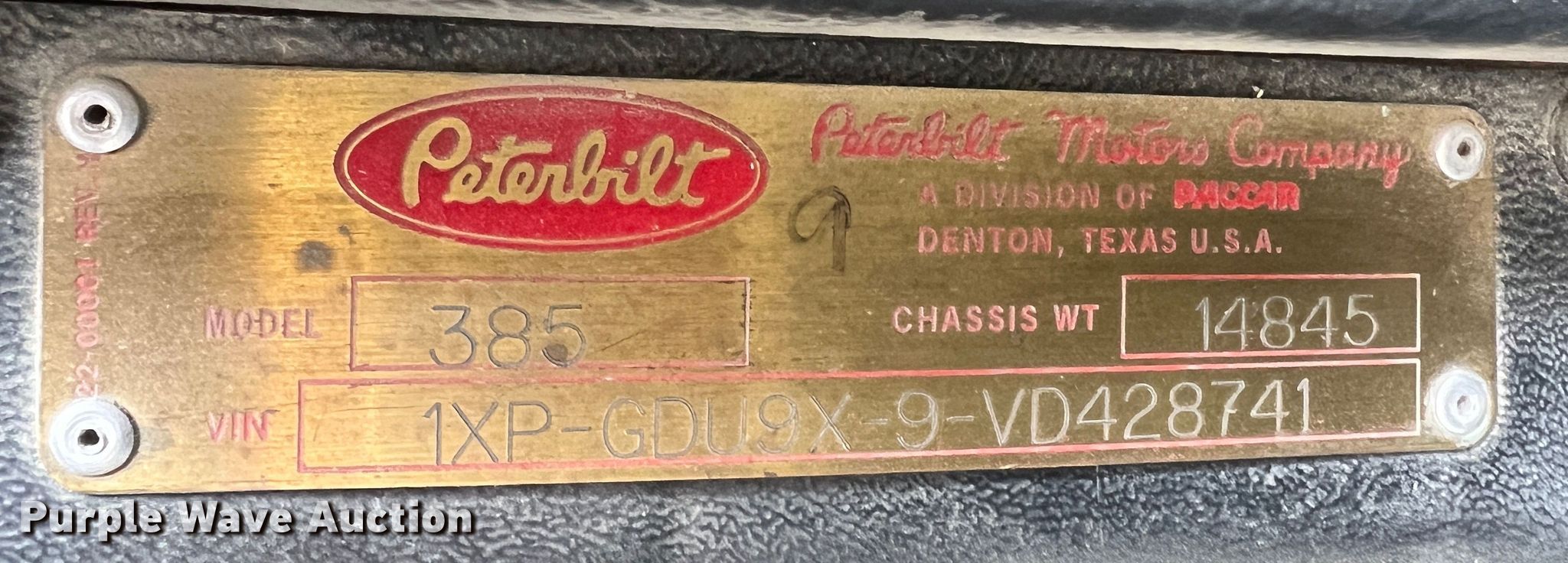 Purple Wave is selling a used Truck Tractor in Kansas. This item is a 1997 Peterbilt 385 semi truck with the following: Miles: 116,348 on odometer, VIN: 1XPGDU9X9VD428741