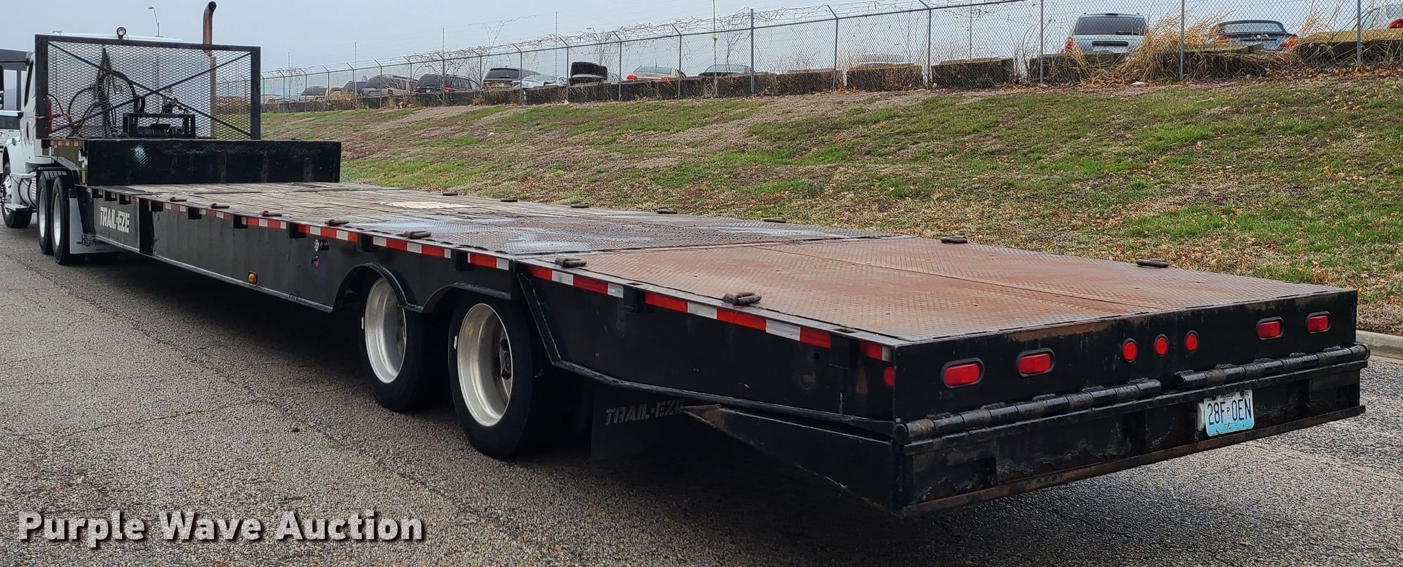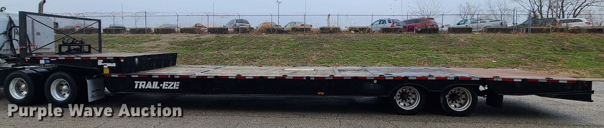 2000 Trail-Eze DHT7048 lowboy equipment trailer. VIN: 1DA72C792YC014538. Dimensions Overall: 48' L x 102" W, Deck: 30' L x 102" W, Top deck length: 9' 6", Tail length: 8', Hydratail length: 44", Ramps: Hydraulic. Features Deck type: Steel, Wood. Chassis Landing gear: Dual, Suspension: Air, Brakes: Air, Axles: Tandem, GVWR: 84,880 lbs. Tires Size: 225/70R22.5. Missouri title. Title distribution may be delayed up to 14 days from verification of funds. Heartland Truck & Equipment, LLC. 8001 Northeast 38th Street. Kansas City, MO 64161