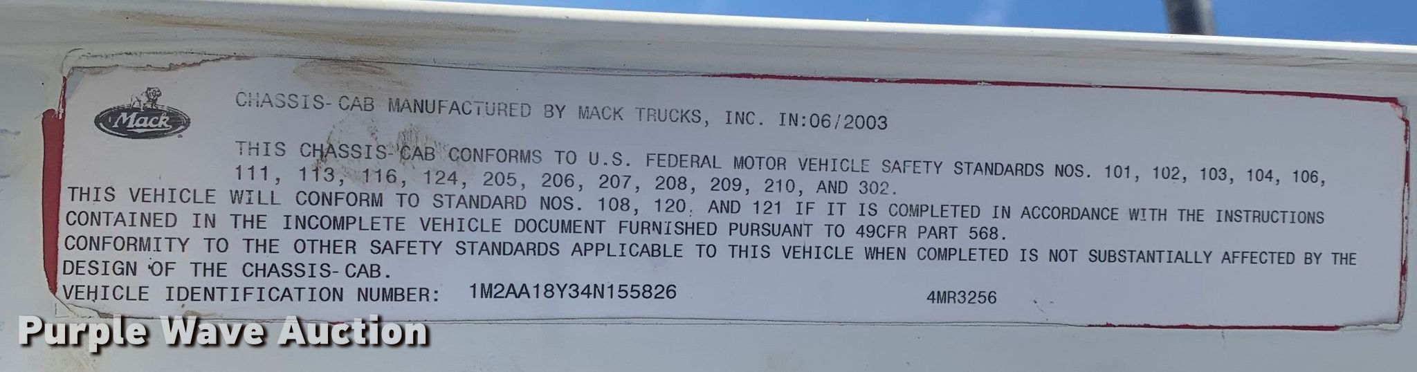 Purple Wave is selling a used Truck Tractor in Texas. This item is a 2004 Mack CH613 semi truck with the following: Miles: 377,668 on odometer, Hours: 14,353 on meter, VIN: 1M2AA18Y34N155826