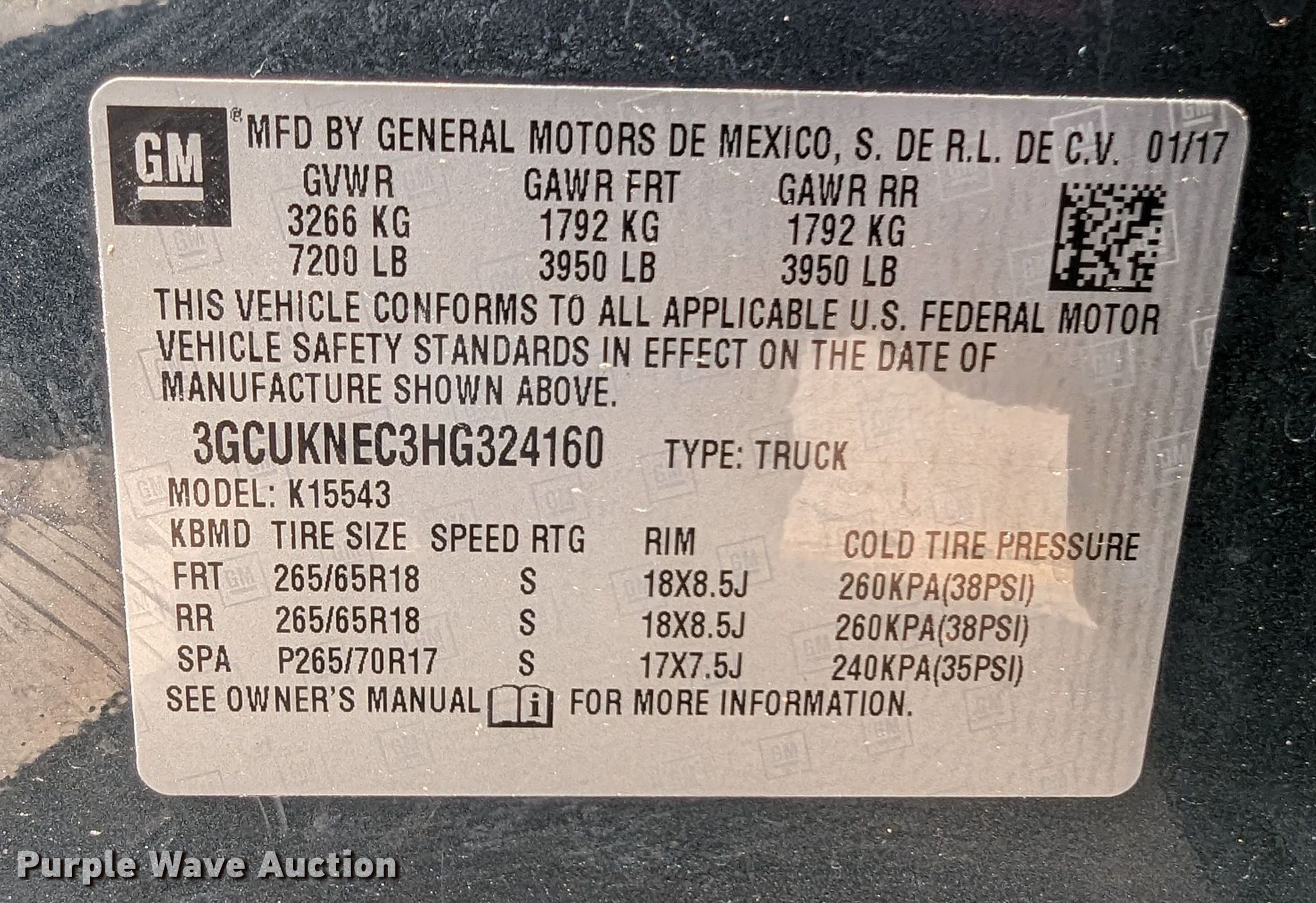 - VIN: 3GCUKNEC3HG324160