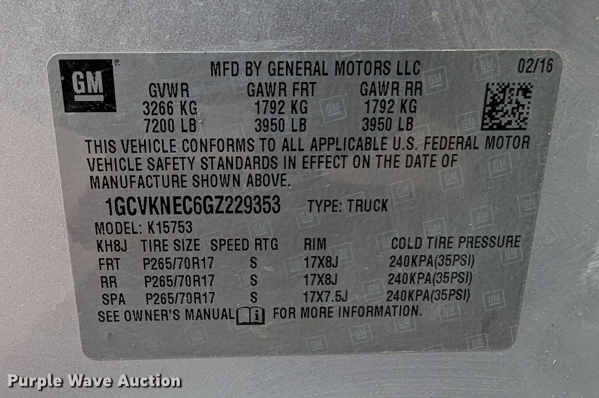 - VIN: 1GCVKNEC6GZ229353