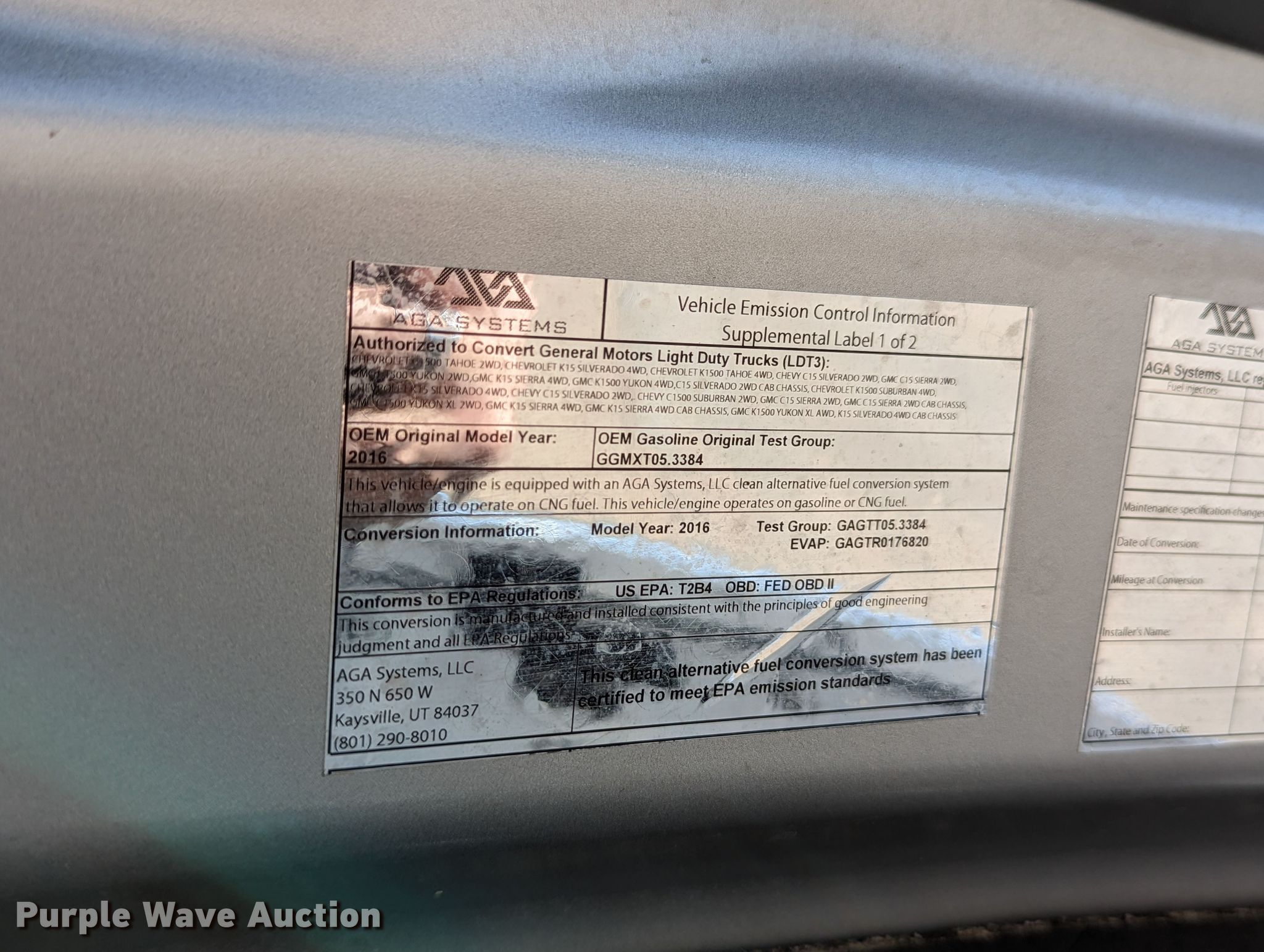 2016 Chevrolet Silverado 1500 Crew Cab pickup truck. Miles: 116,039 on odometer, VIN: 3GCUKNEC0GG216111. Engine Displacement: 5.3L V8 OHV, Cylinders: 8, Fuel type: Gas, CNG. Transmission Automatic, Four wheel drive. Interior AC, Heat, Heated mirrors, Power windows, Power locks, Cruise control. Tires Size: 265/70R17. Notes Dash warning indicator: Check engine, TPMS. Oklahoma title. Title distribution may be delayed up to 30 days from verification of funds. Oklahoma Department of Wildlife Conservation - Open inspection April 24. 1801 North Lincoln Boulevard. Oklahoma City, OK 73105