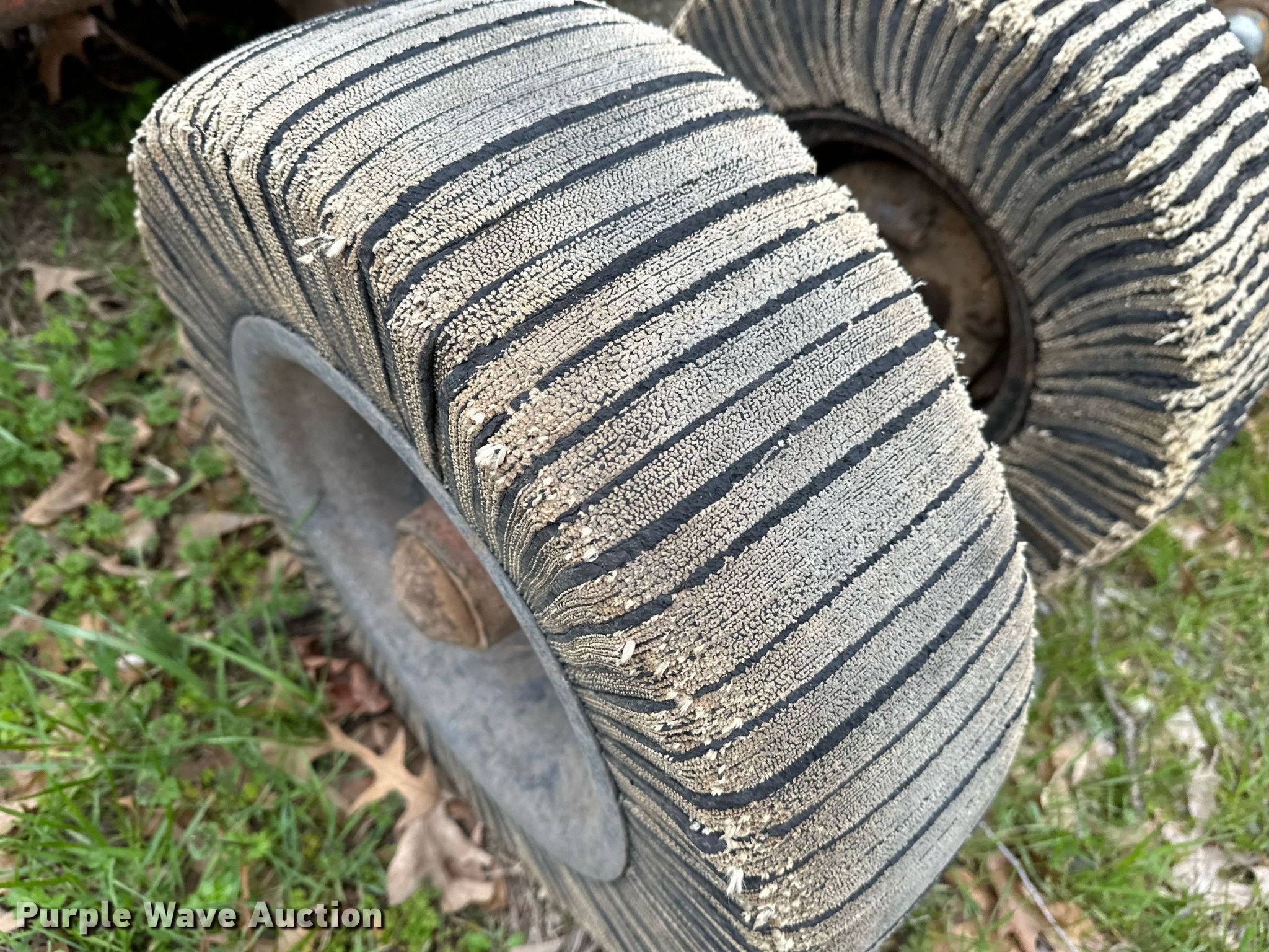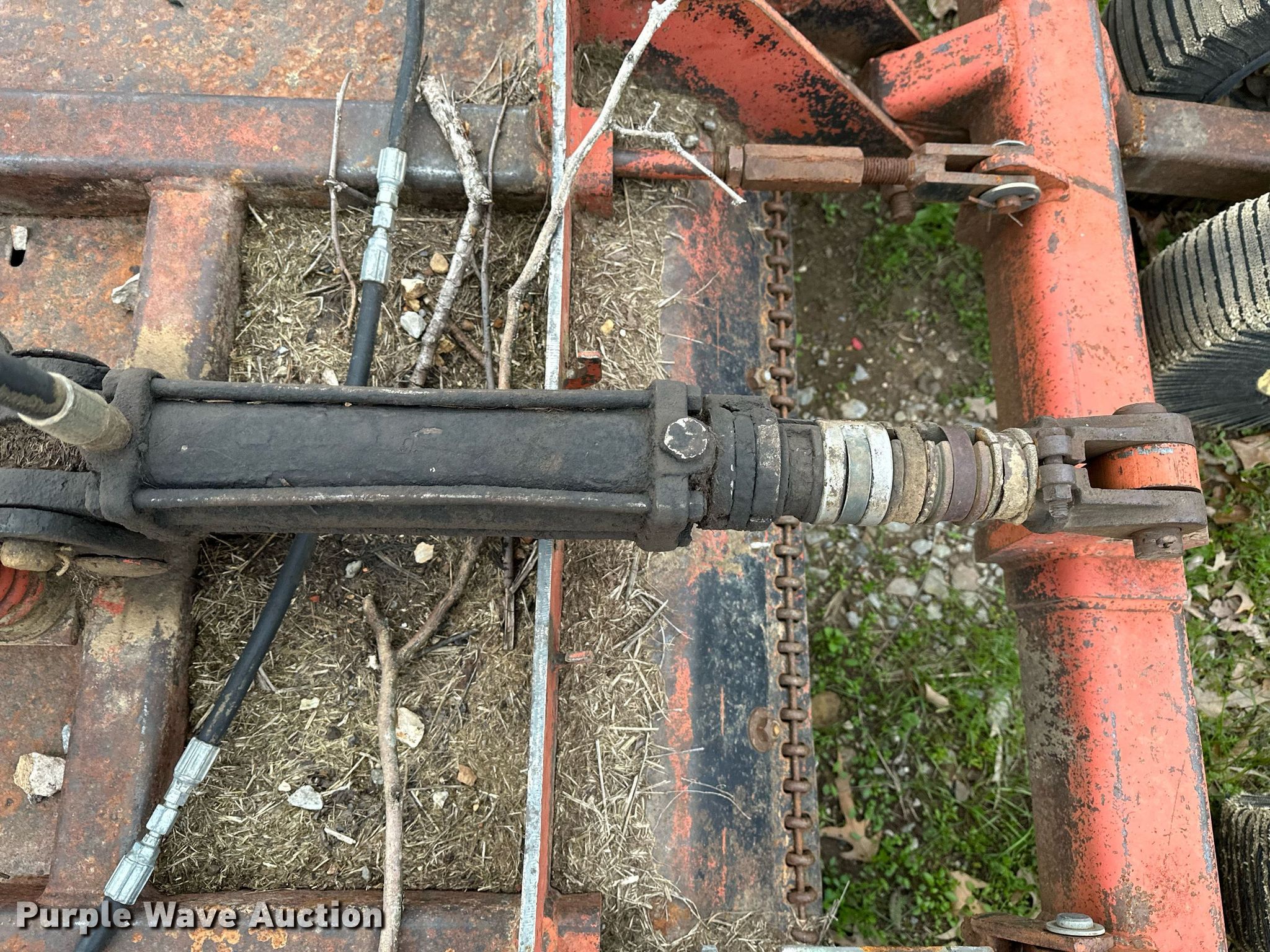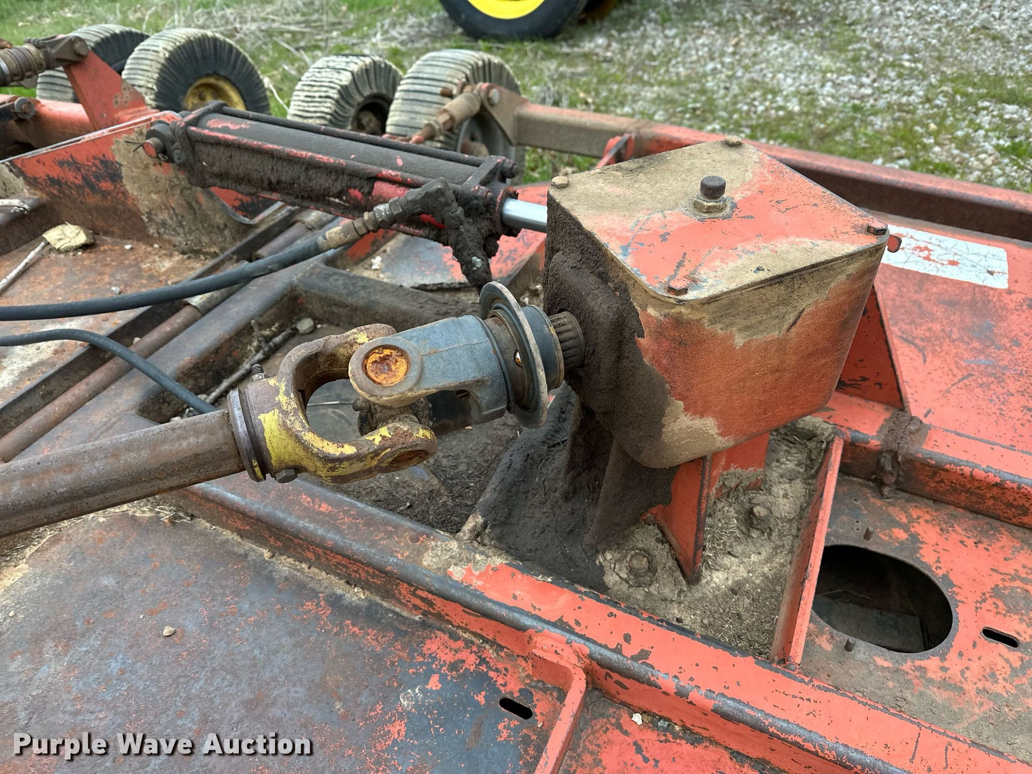 Rhino SR-15M batwing rotary mower. Serial: 10643. Features Width: 15' 3", Hydraulic lift, Hydraulic fold, PTO: 540. Tires Solid. Notes Holes in deck, Blade missing, Deck leveling rod damaged. Oklahoma Department of Wildlife Conservation. 34885 S Blue Top Rd. Bunch, OK 74427
