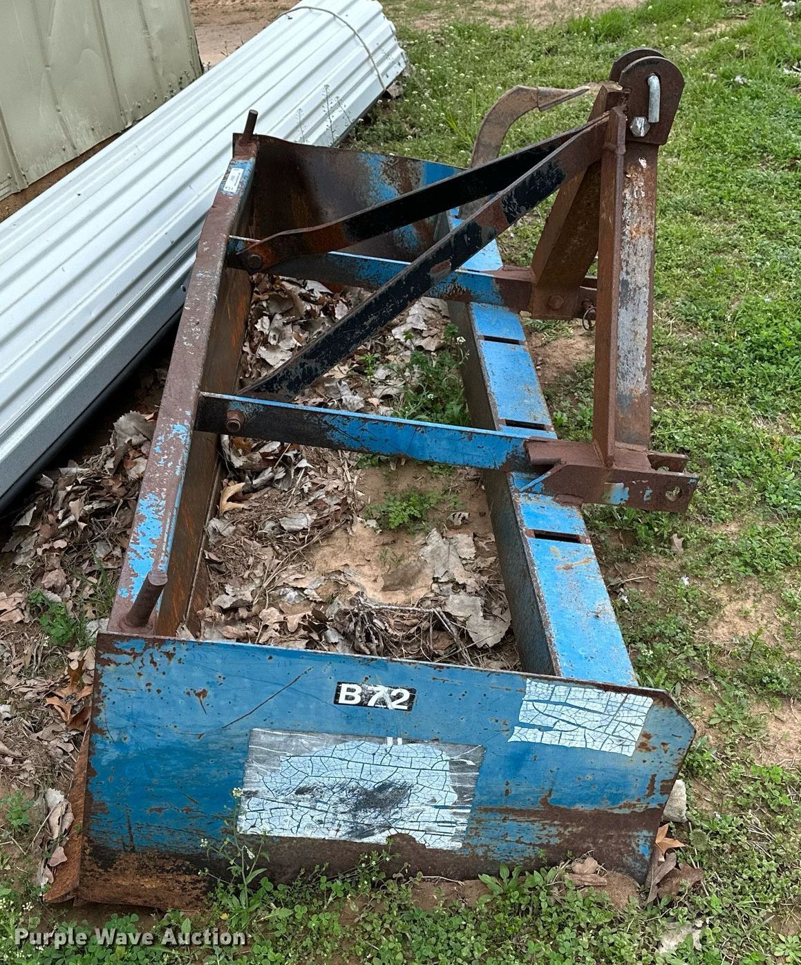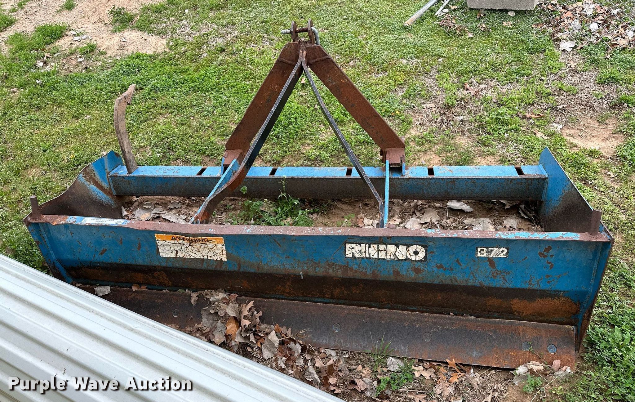 Purple Wave is selling a used Ag Equip. Other in Oklahoma. This item is a Rhino B72 box blade with the following: Hitch: Three point, Ripper shanks: 1, Width: 72"