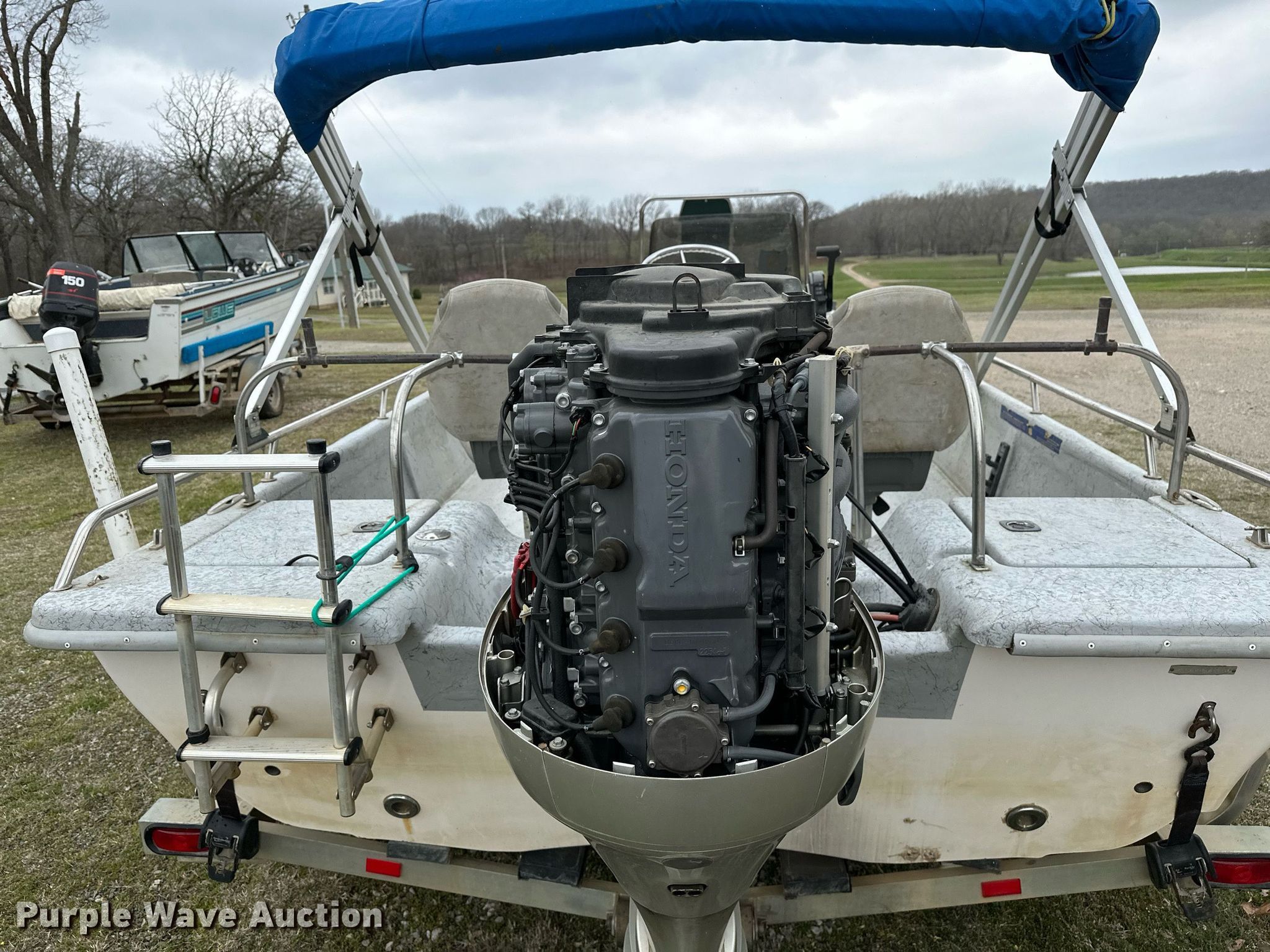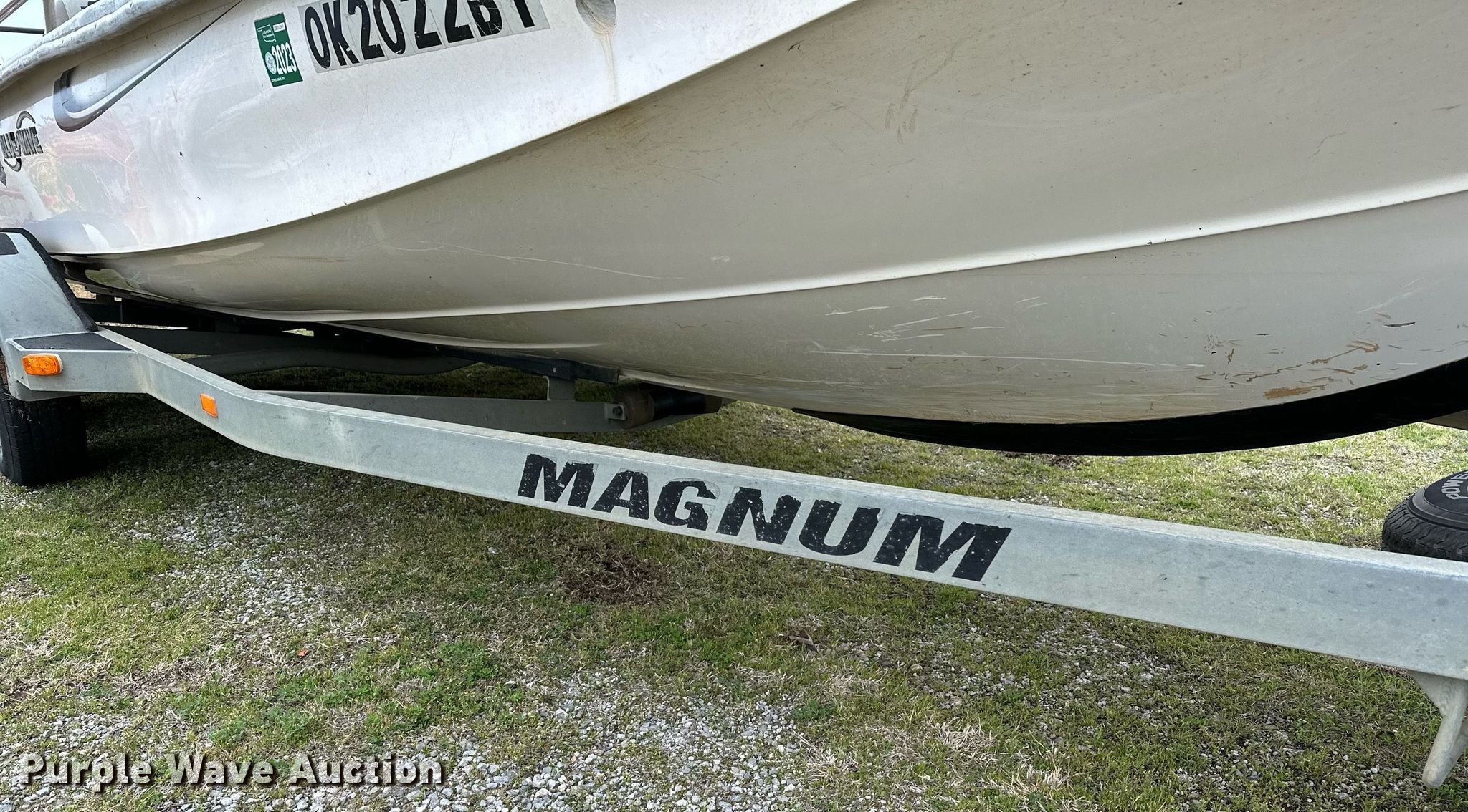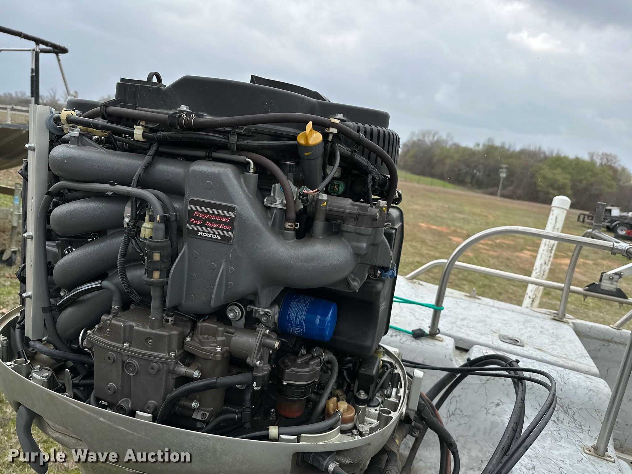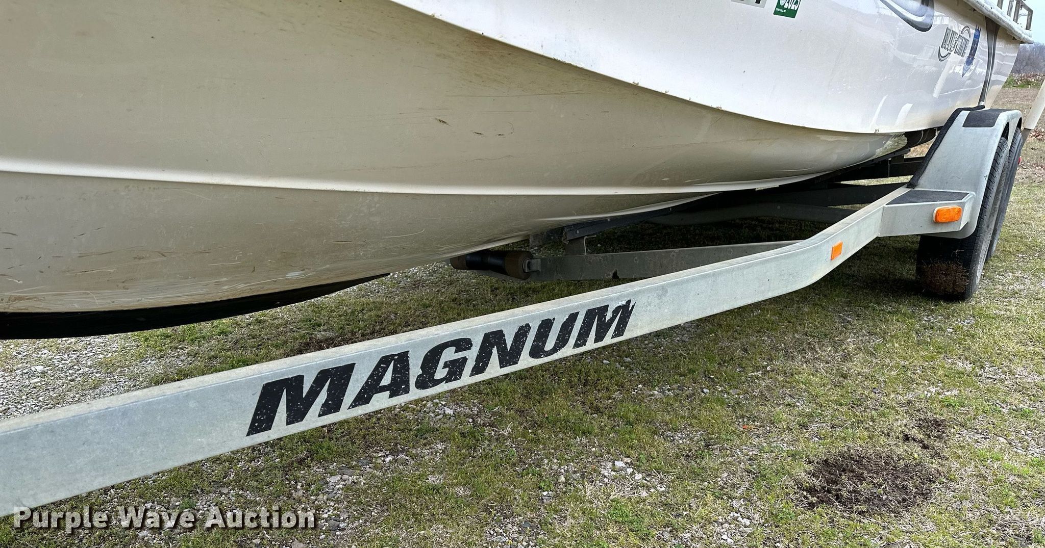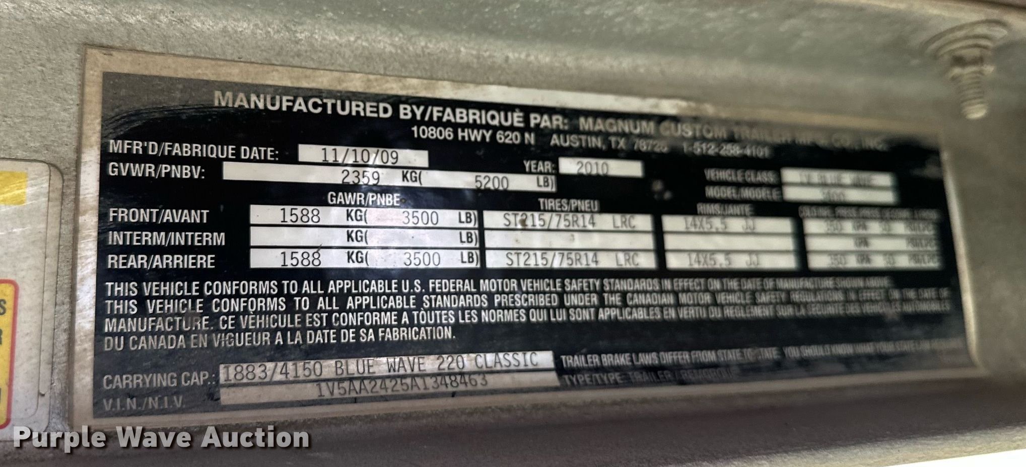 2010 Blue Wave 220 Classic boat. Hours: Unknown, Length: 22', Hull ID: PWV09668K910. Engine Engine type: Outboard, 2003 Honda 130, Serial: 1401207, Cylinders: 4, Fuel type: Gas, HP: 130, Outdrive Propeller: Stainless steel. Operators station Capacity Person: 9, 1,350 lbs. Features Bimini top. Trailer 2010 Magnum 3400, VIN: 1V5AA2425A1348463, Overall length: 26', Overall width: 102", GVWR: 5,200 lbs, Ball hitch size: 2", Axles: Tandem, Tire size: 215/75R14. Notes Contents not included, Dead battery. Boat- Oklahoma title. Motor - Oklahoma title. Trailer - Transfer of ownership documentation will be a bill of sale. Title distribution may be delayed up to 30 days from verification of funds. Oklahoma Department of Wildlife Conservation. 3733 State Highway 48. Holdenville, OK 74848