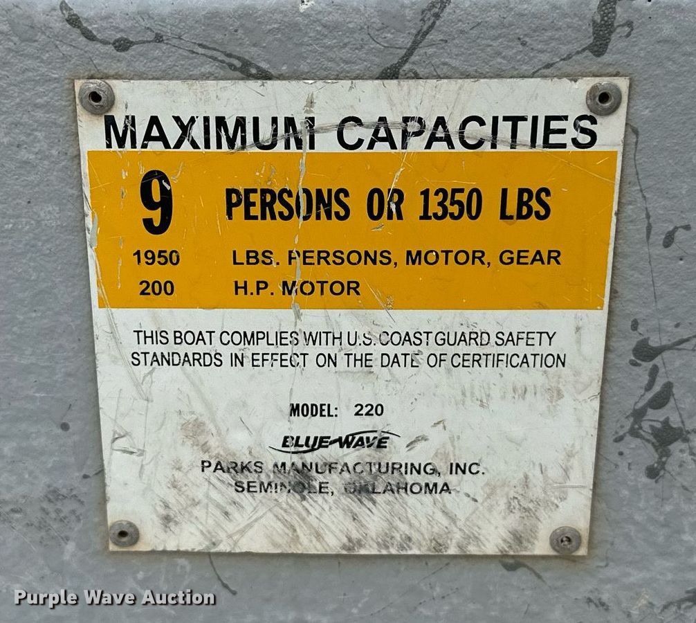 Purple Wave is selling a used Boat in Oklahoma. This item is a 2010 Blue Wave 220 Classic boat with the following: Hours: Unknown, Length: 22', Hull ID: PWV09668K910
