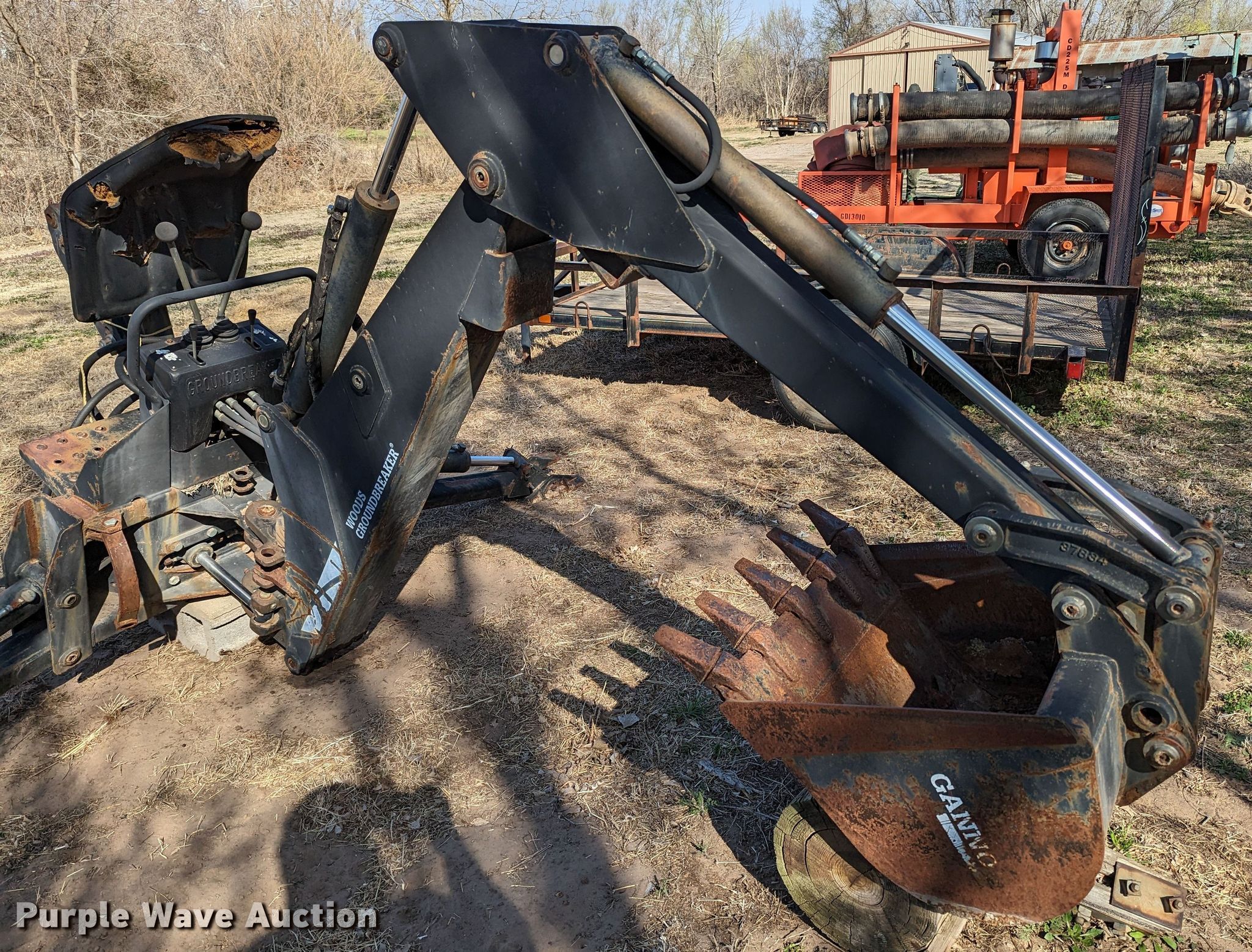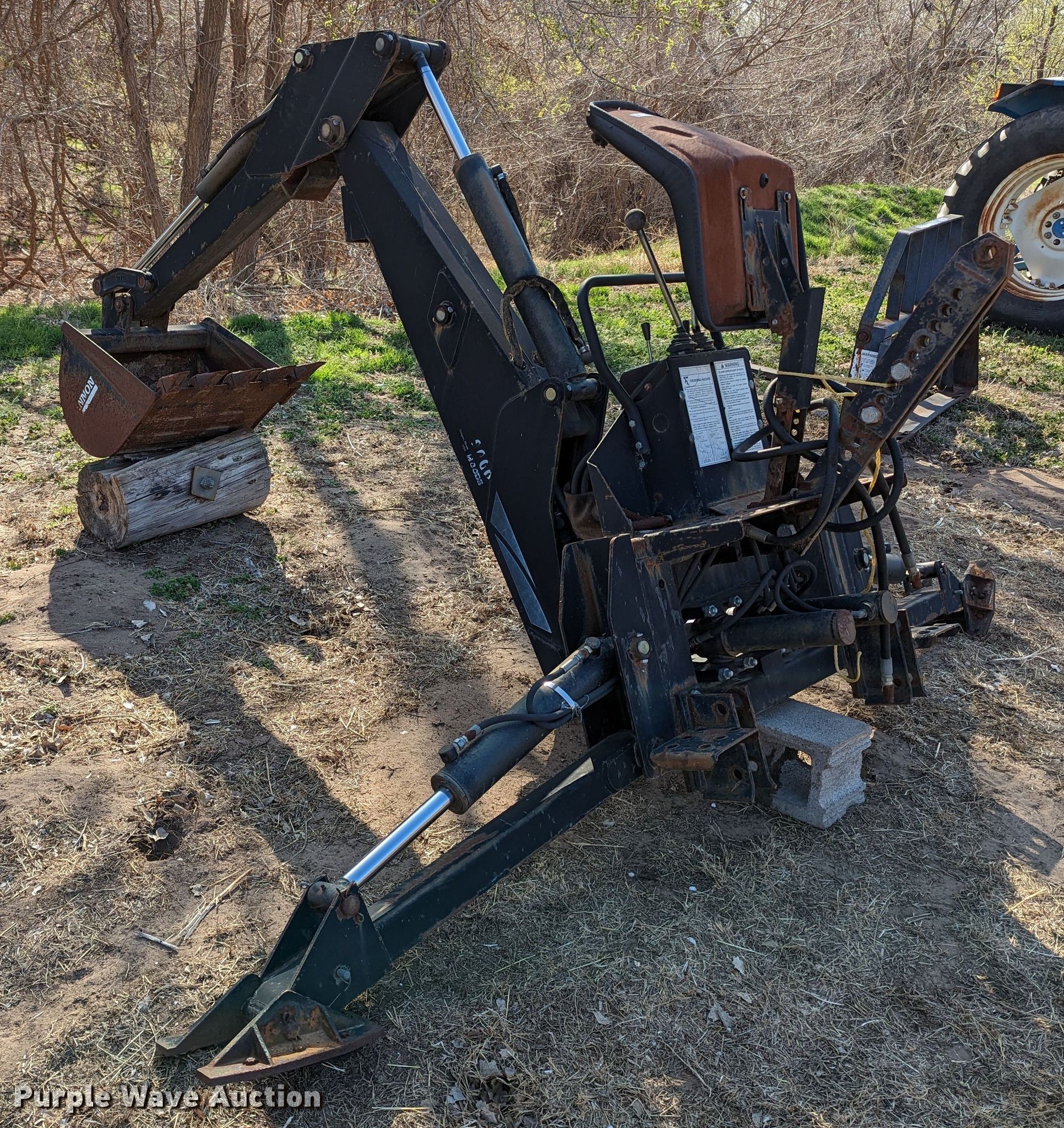Purple Wave is selling a used Ag Tractor Loader or Attach. in Oklahoma. This item is a Woods Groundbreaker backhoe attachment with the following: Backhoe controls: Wobble stick / two stick, Bucket, Width: 24"