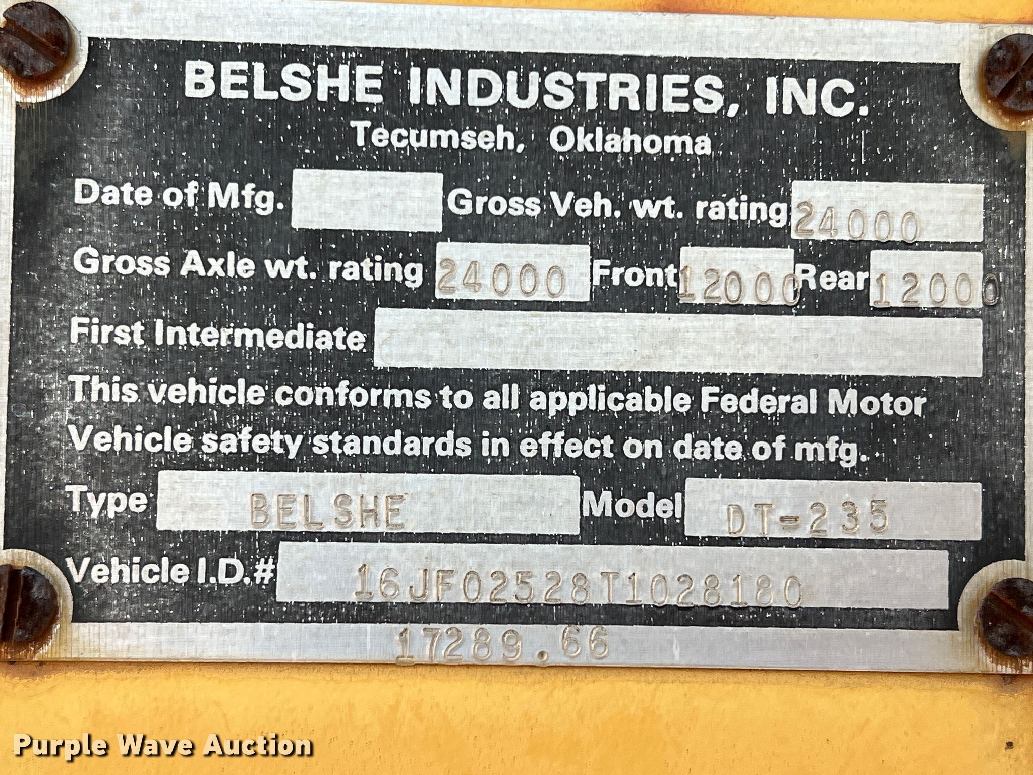 Purple Wave is selling a used Equip. Trailer in Oklahoma. This item is a Belshe DT-235 equipment trailer with the following: VIN: 16JF02528T1028180