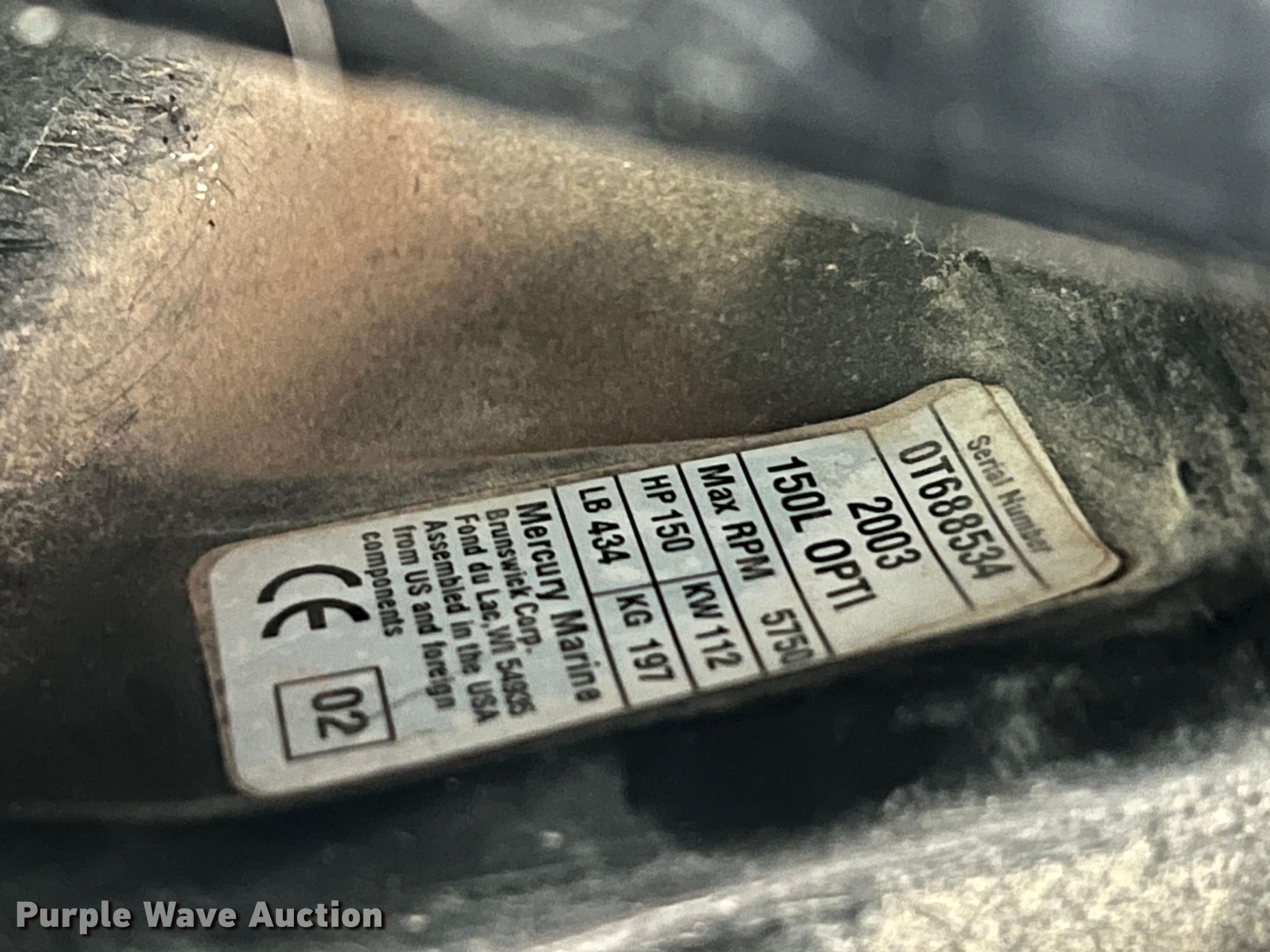 Purple Wave is selling a used Boat in Oklahoma. This item is a 2003 Mercury Optimax 150 outboard engine with the following: Cylinders: 6, Fuel type: Gas, HP: 150, Outdrive, Propeller: Aluminum, Serial: 0T688534