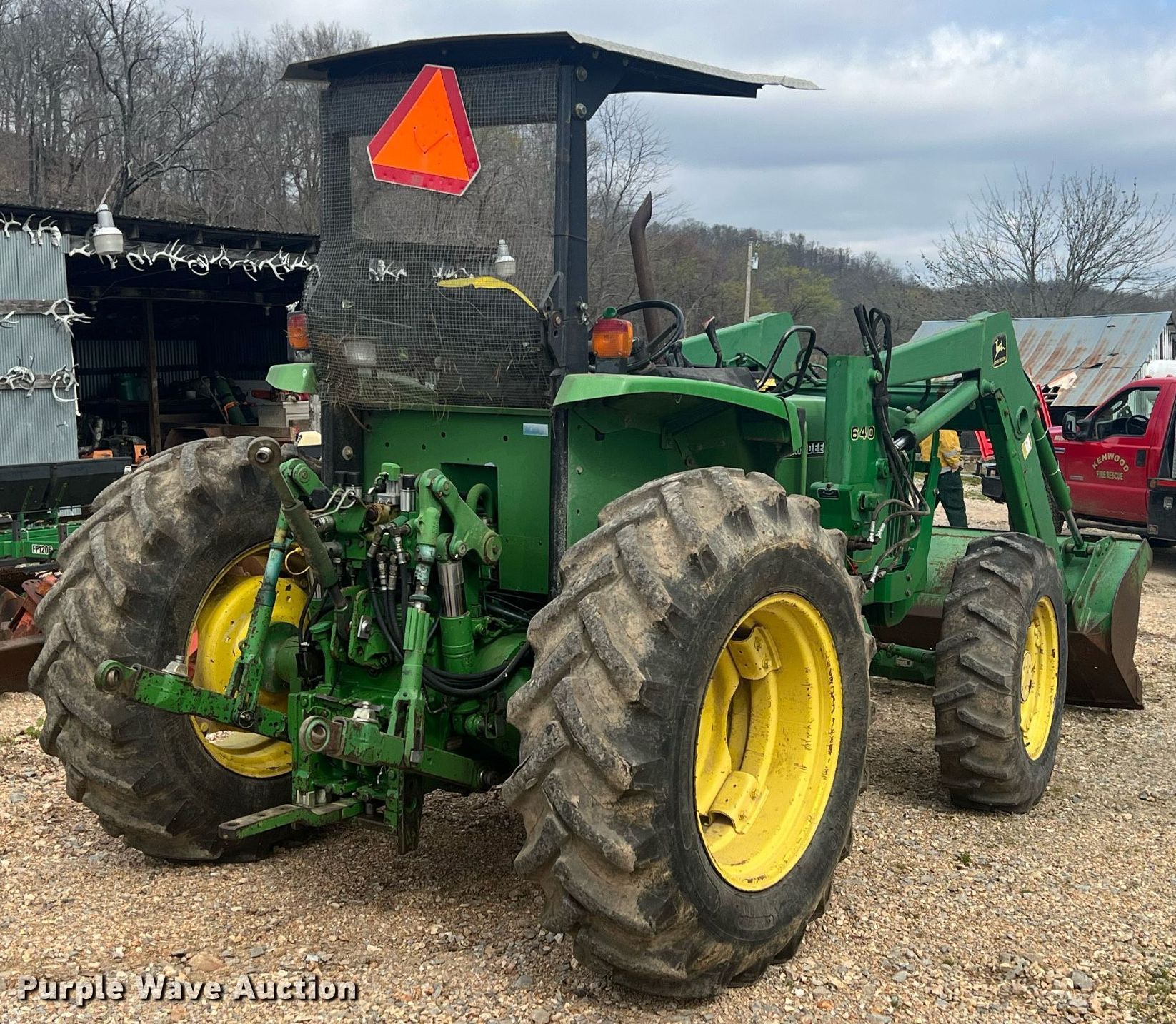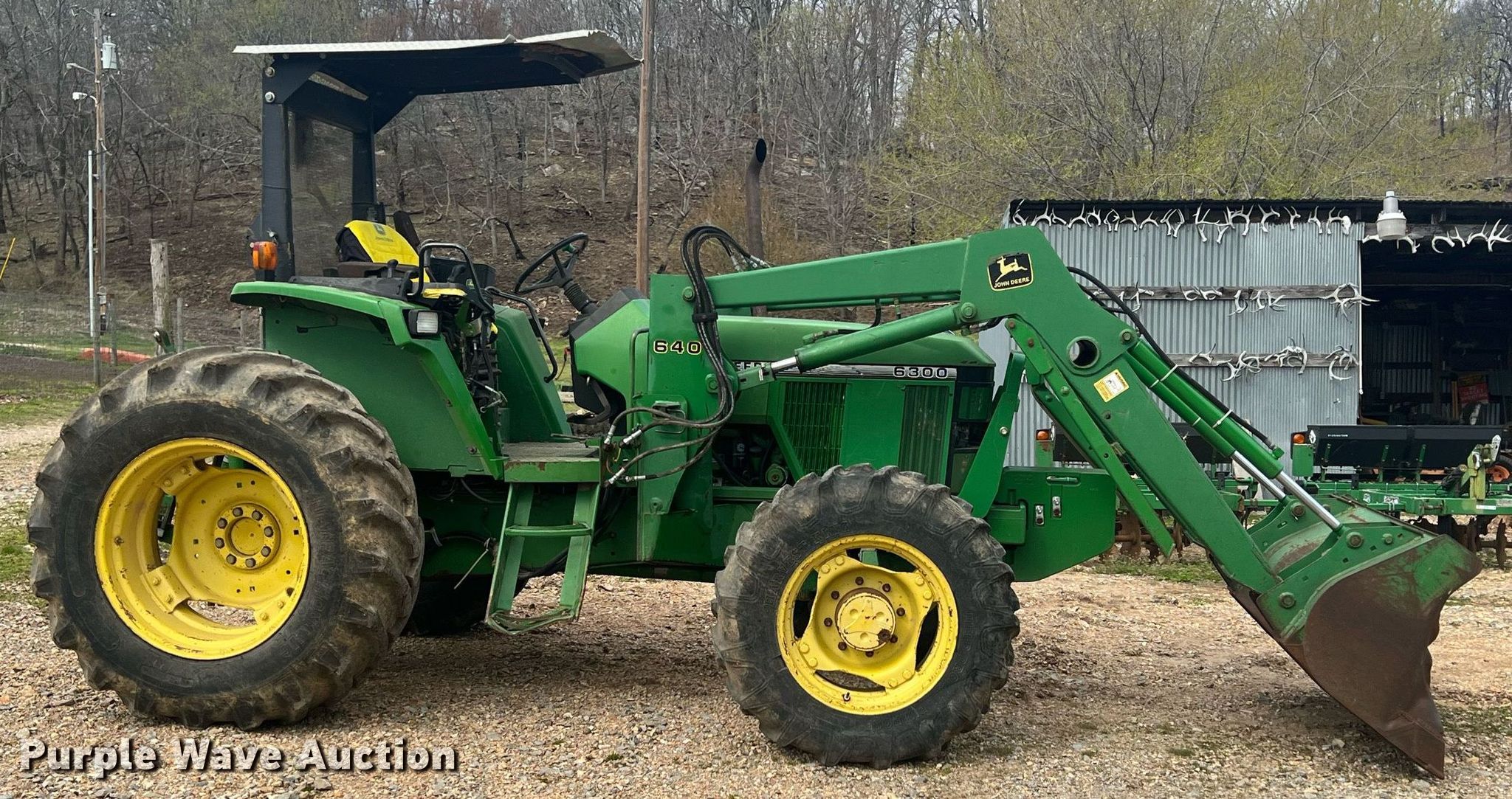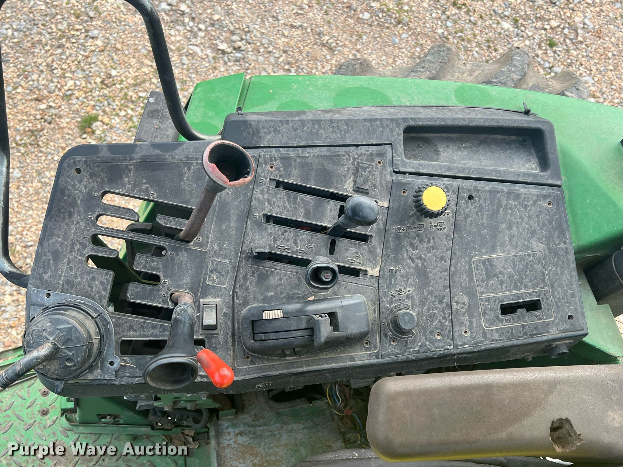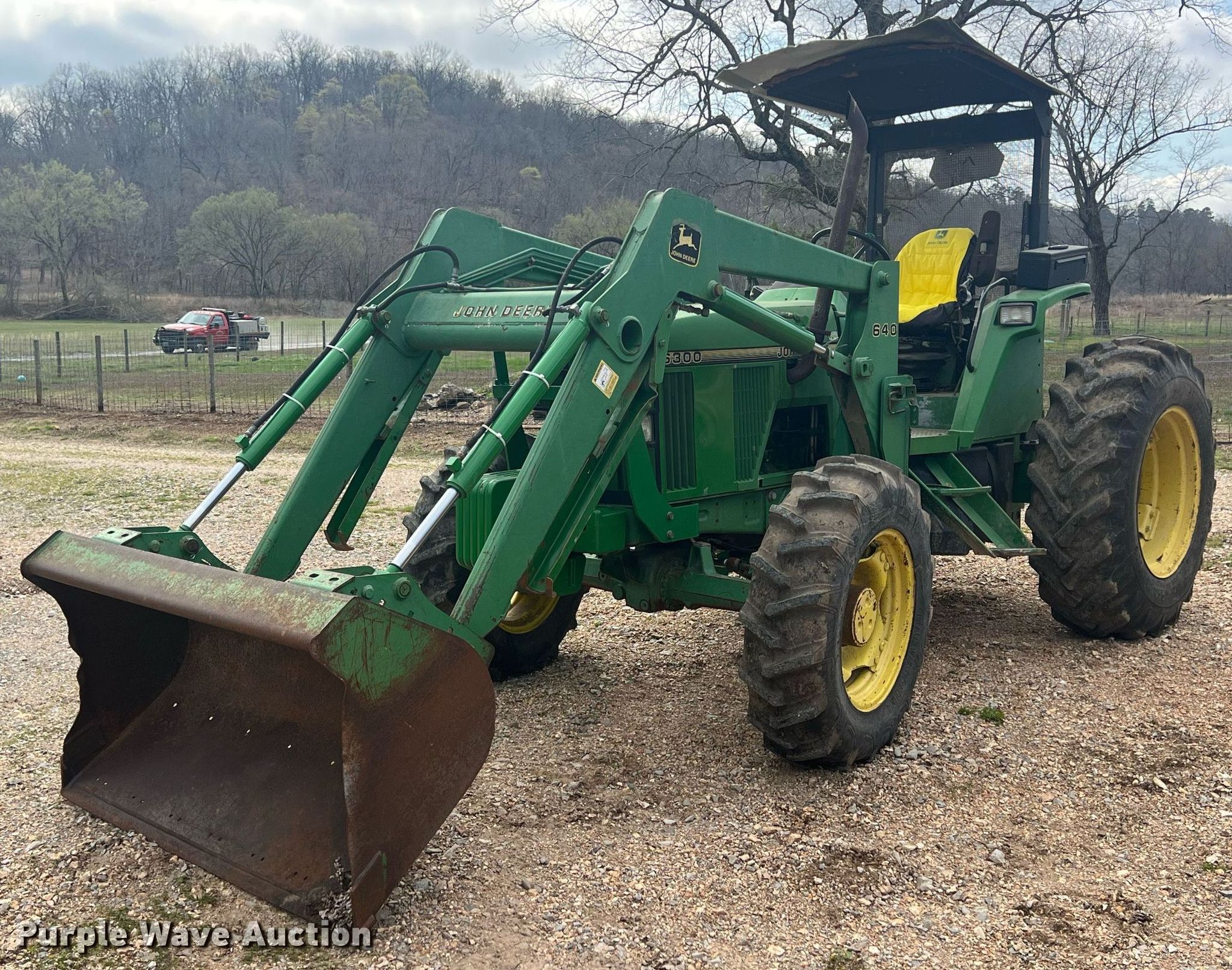 1994 John Deere 6300 MFWD tractor. Hours: 914 on meter, Serial: L06300M109972. Engine John Deere, Cylinders: 4, Fuel type: Diesel. Transmission Synchro, 12F - 4R. Features PTO: 540, Three point Top link, Seven pin outlet, Hydraulic remote sets Rear: 2, Suitcase weights: 5, Loader John Deere 640, Controls: Joystick, Bucket Width: 60".. Tires Front: 12.4-24, Rear: 18.4/15-30. Notes Hydraulic issues, non-operational bucket tilt function. Oklahoma Department of Wildlife Conservation. 44455 South 522 Road. Eucha, OK 74342