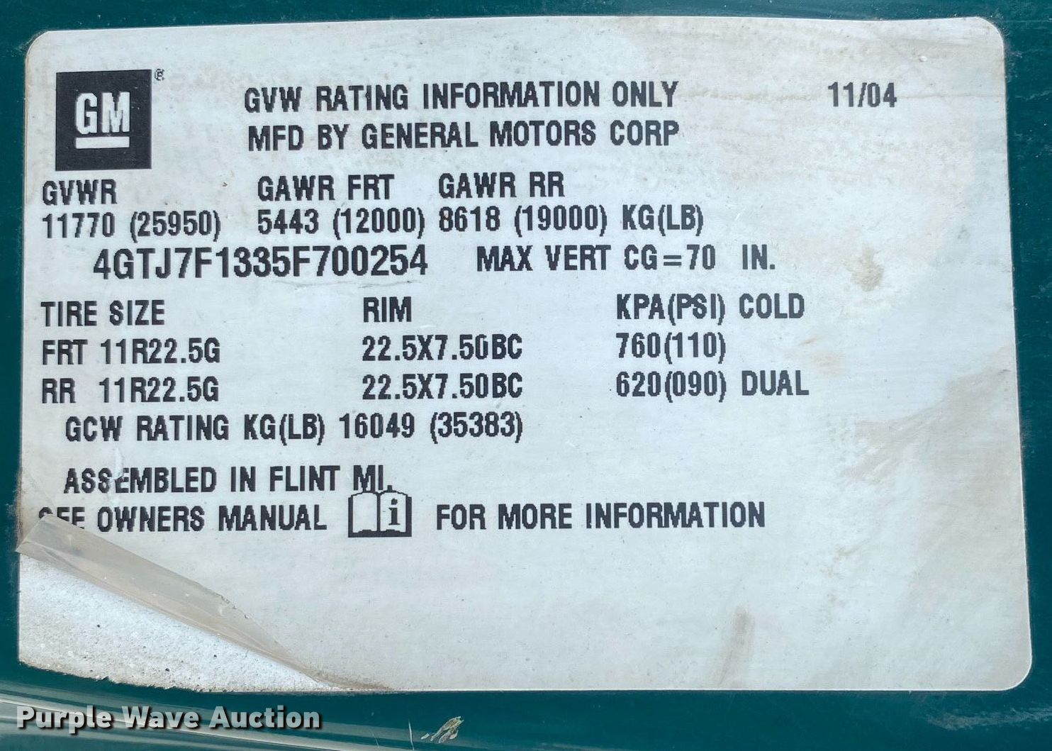Purple Wave is selling a used Flat Bed Truck in Oklahoma. This item is a 2005 Isuzu FTR dump flatbed truck with the following: Miles: 199,556 on odometer, VIN: 4GTJ7F1335F700254, Unit #: 6