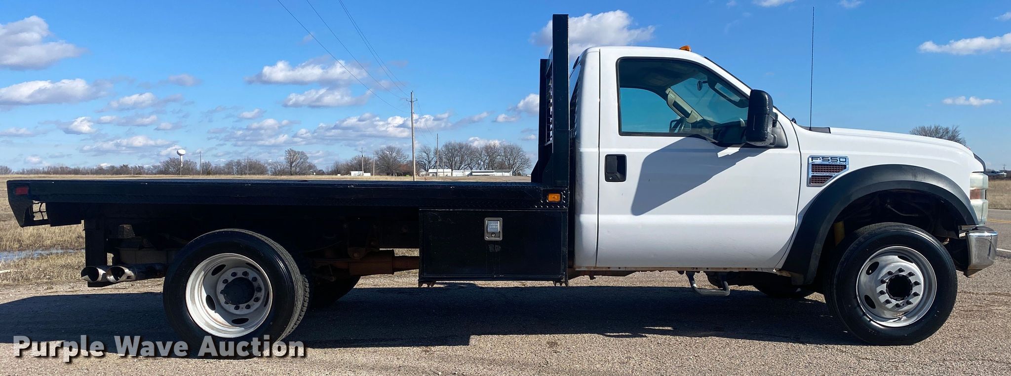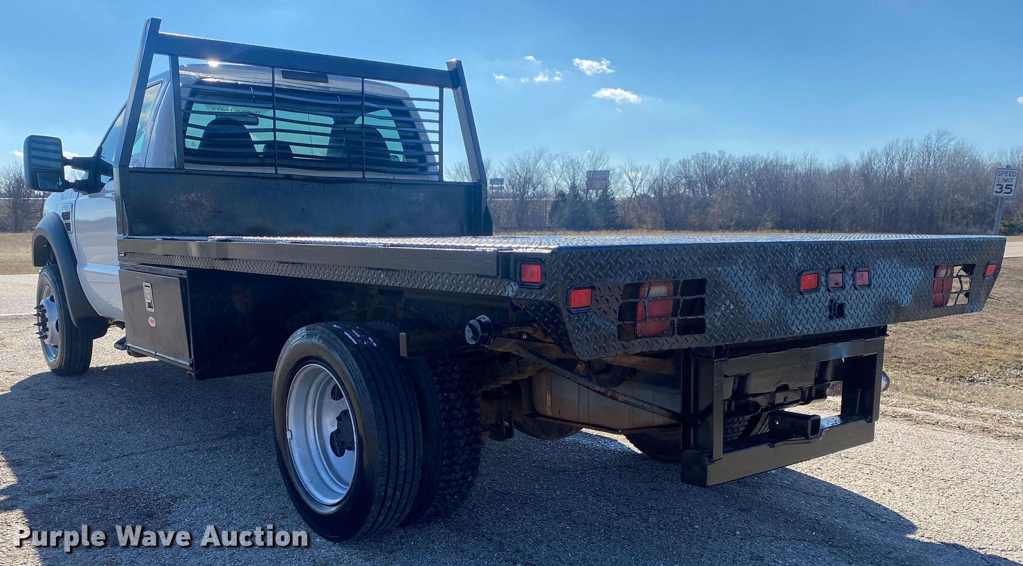 Purple Wave is selling a used Flat Bed Truck in Oklahoma. This item is a 2008 Ford F550 Super Duty XL dump flatbed truck with the following: Miles: 62,467 on odometer, VIN: 1FDAF56R48EA37598