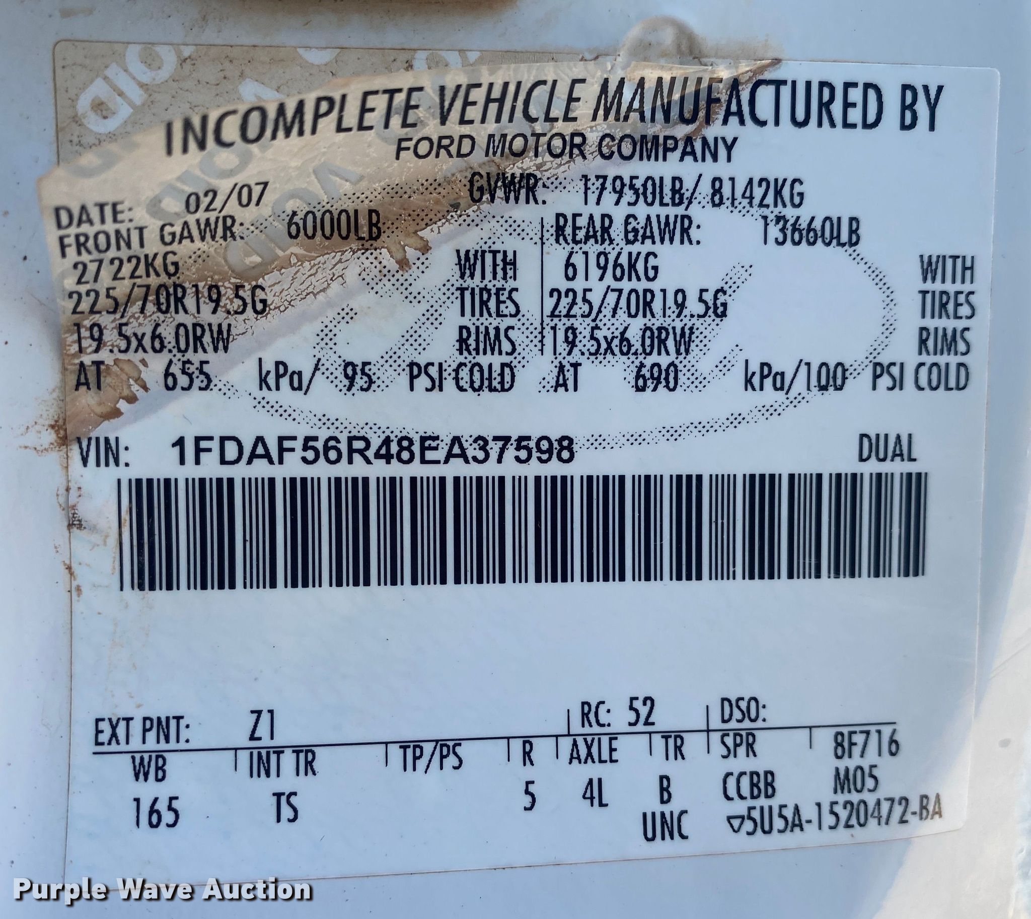 2008 Ford F550 Super Duty XL dump flatbed truck. Miles: 62,467 on odometer, VIN: 1FDAF56R48EA37598. Engine Displacement: 6.4L, Cylinders: 8, Fuel type: Diesel. Transmission Automatic. Chassis Axles: Single, Suspension: Spring, Brakes: Hydraulic, PTO, GVWR: 17,950 lbs, Wheelbase: 165". Interior AC, Heat, Cruise control, Auxiliary controls, Brake controller. Features Dump flatbed 11' L x 98" W, Ram: Single. Tires Size: 225/70R19.5. Notes Dash warning indicator: Air bag, Brake. Oklahoma title. Title distribution may be delayed up to 14 days from verification of funds. 444 Glen D Johnson Road. Okemah, OK 74859