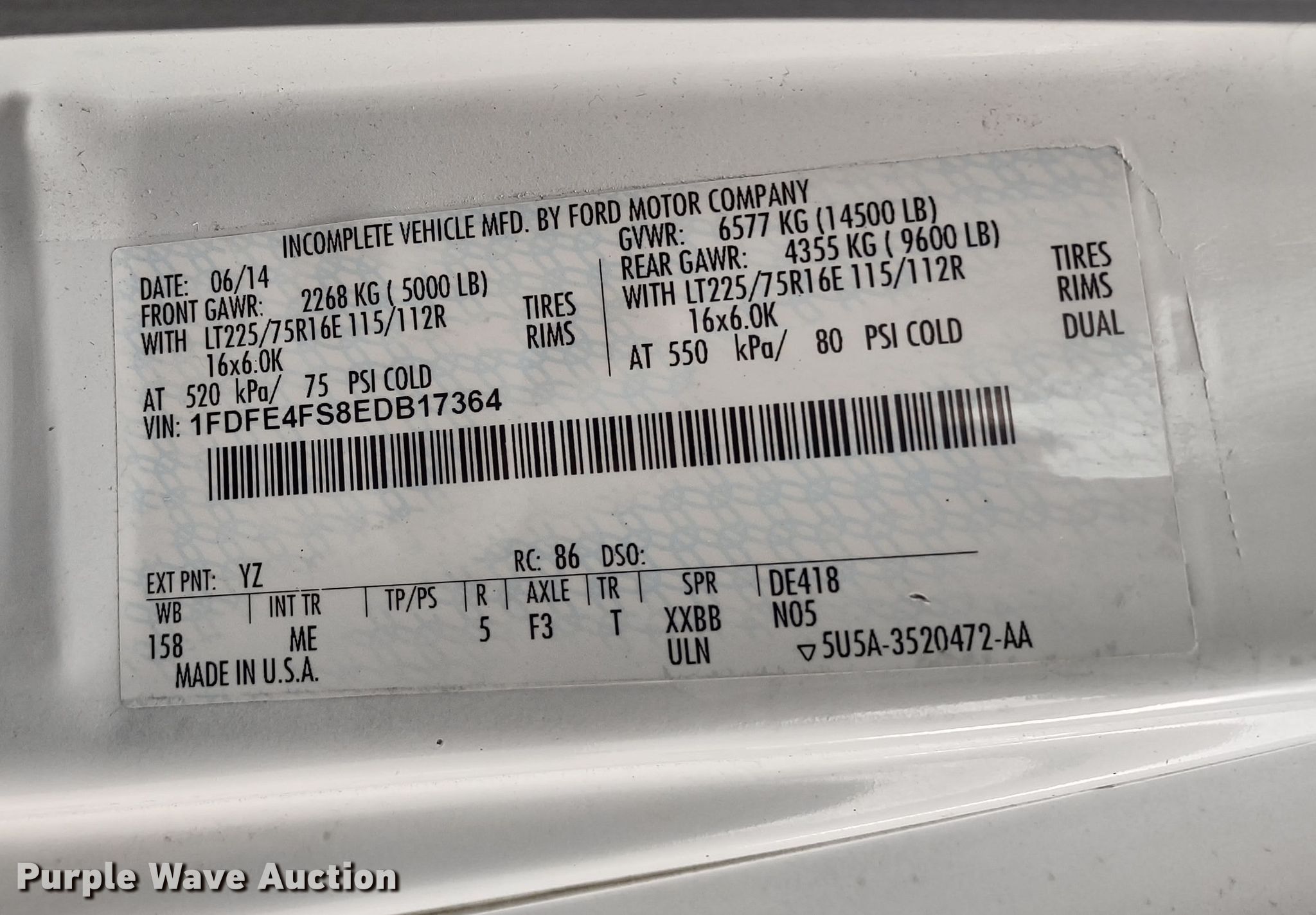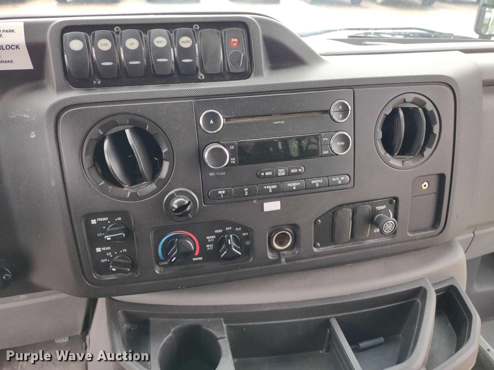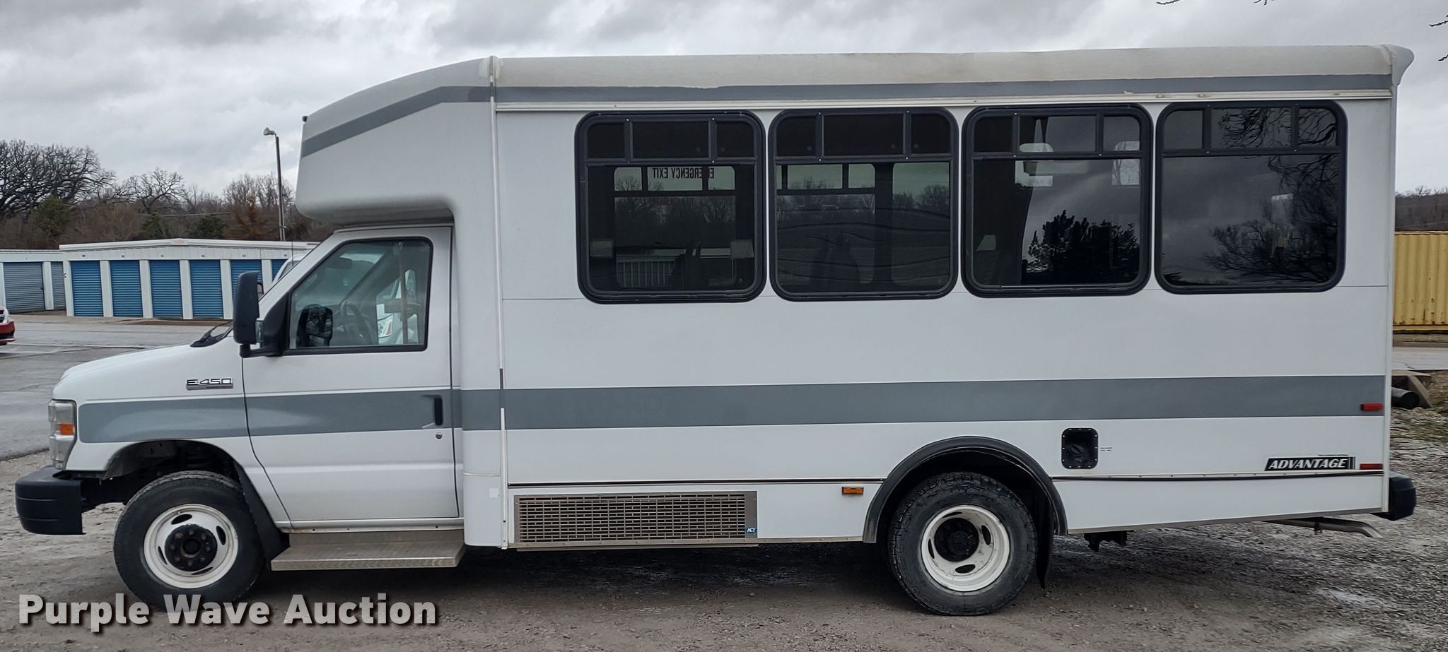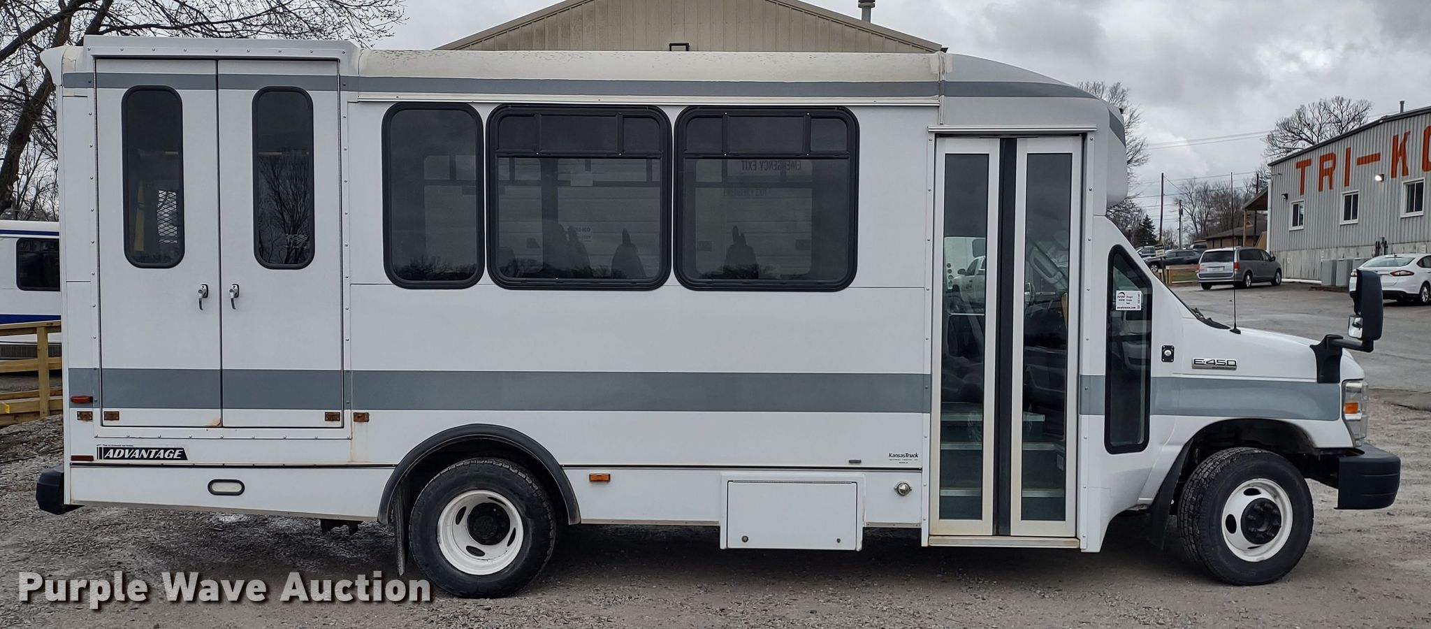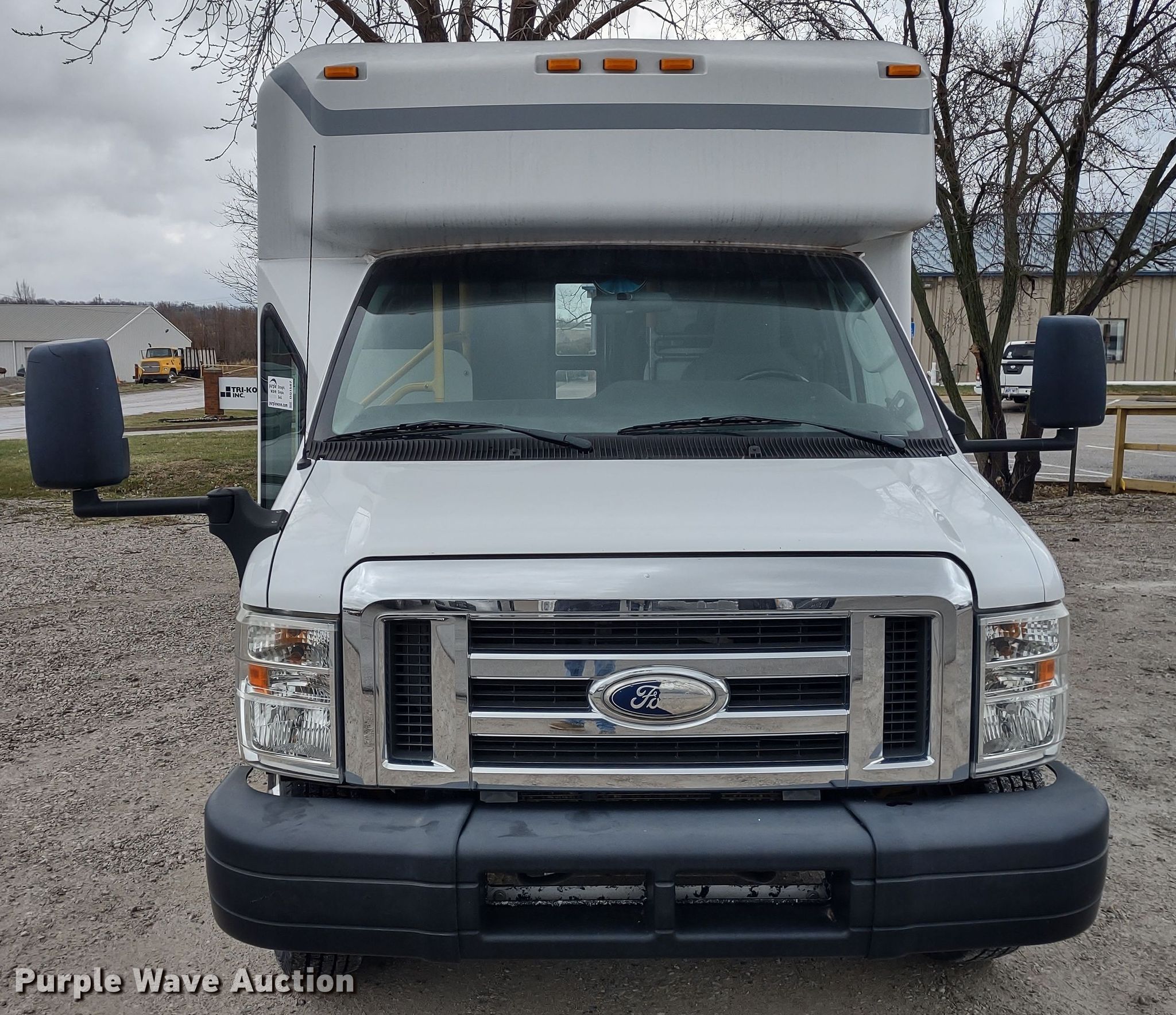 2015 Ford E450 Super Duty El Dorado shuttle bus. Miles: 171,514 on odometer, VIN: 1FDFE4FS8EDB17364. Engine Displacement: 6.8L, Cylinders: 10, Fuel type: Gas. Transmission Automatic. Chassis Axles: Single, Suspension: Spring, Brakes: Hydraulic, GVWR: 14,500 lbs. Interior AC, Heat, Heated mirrors, Cruise control, Auxiliary controls, Electric passenger sliding door, Passengers: 16, Wheelchair lift. Tires Size: 225/75R16. Kansas title. Title distribution may be delayed up to 14 days from verification of funds. Tri-Ko Inc.. 301 1st Street. Osawatomie, KS 66064