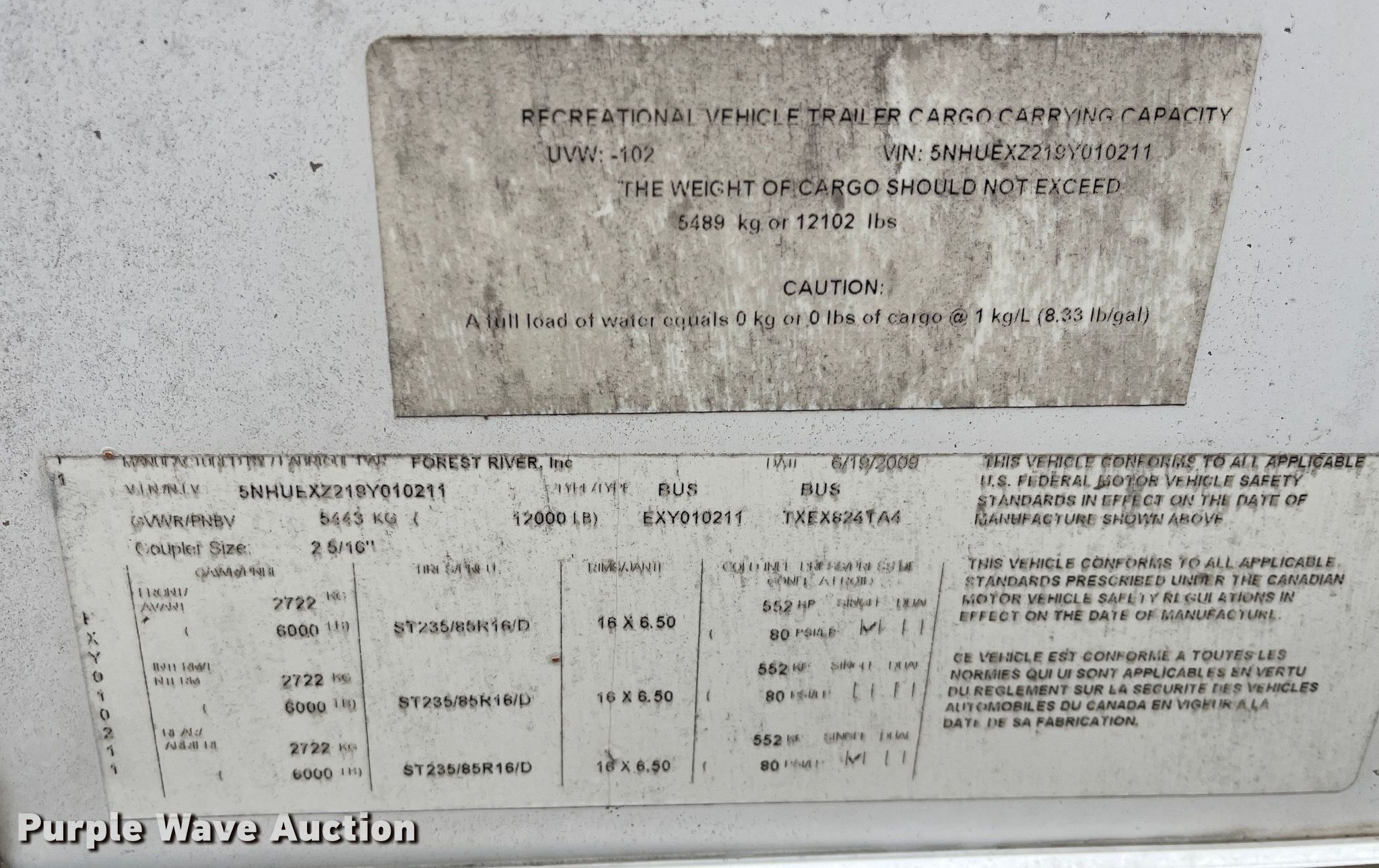 Purple Wave is selling a used Enclosed Cargo Trailer in Kansas. This item is a 2009 Forest River enclosed cargo trailer with the following: VIN: 5NHUEXZ219Y010211