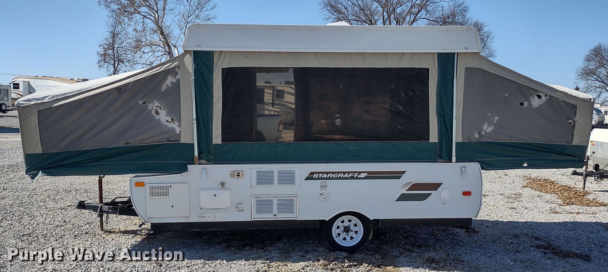 Purple Wave is selling a used RV or Camper in Missouri. This item is a 2011 Starcraft pop-up camper with the following: Camper length: 16', VIN: 1SAAS0AG6B2BC5126