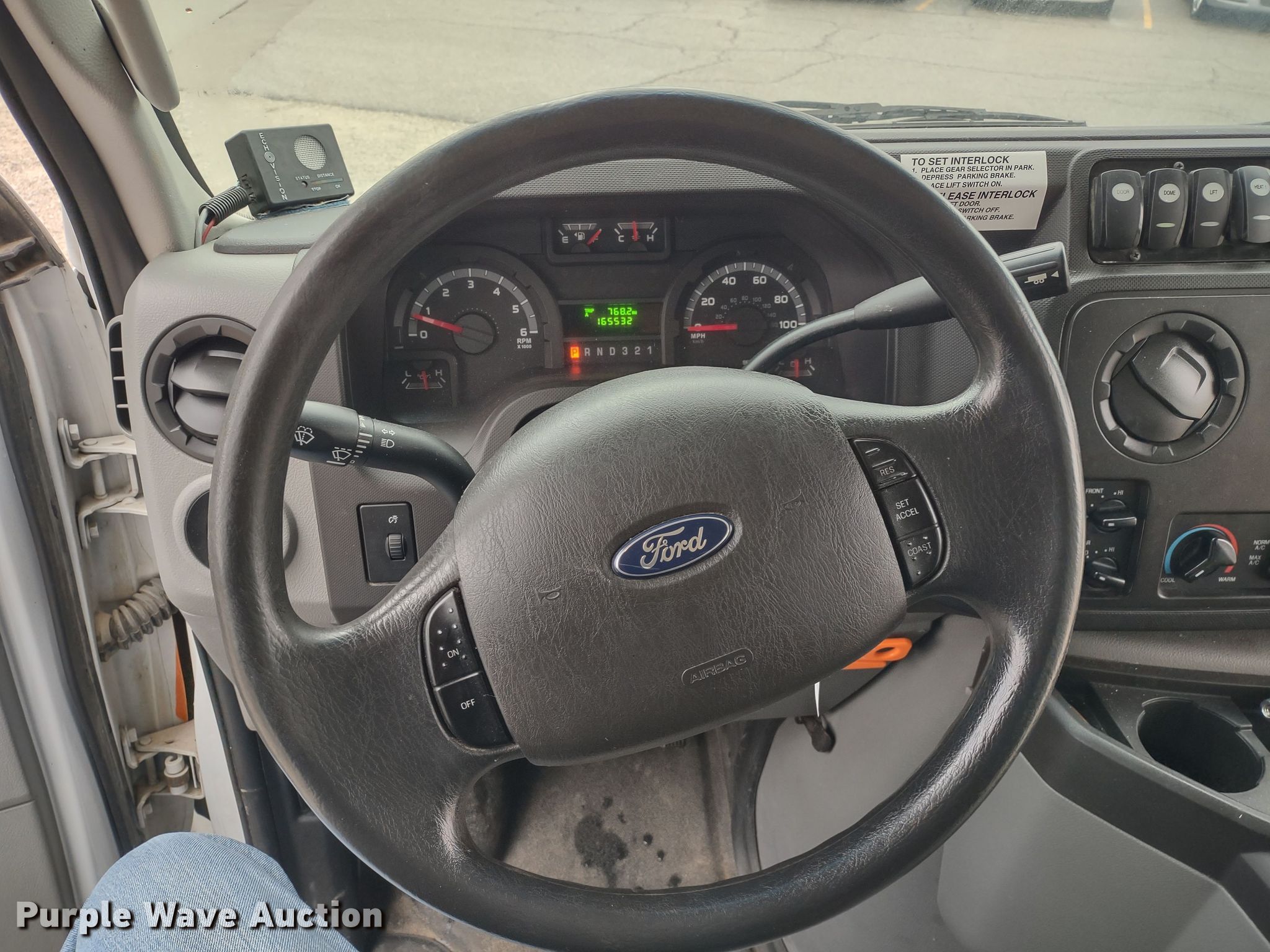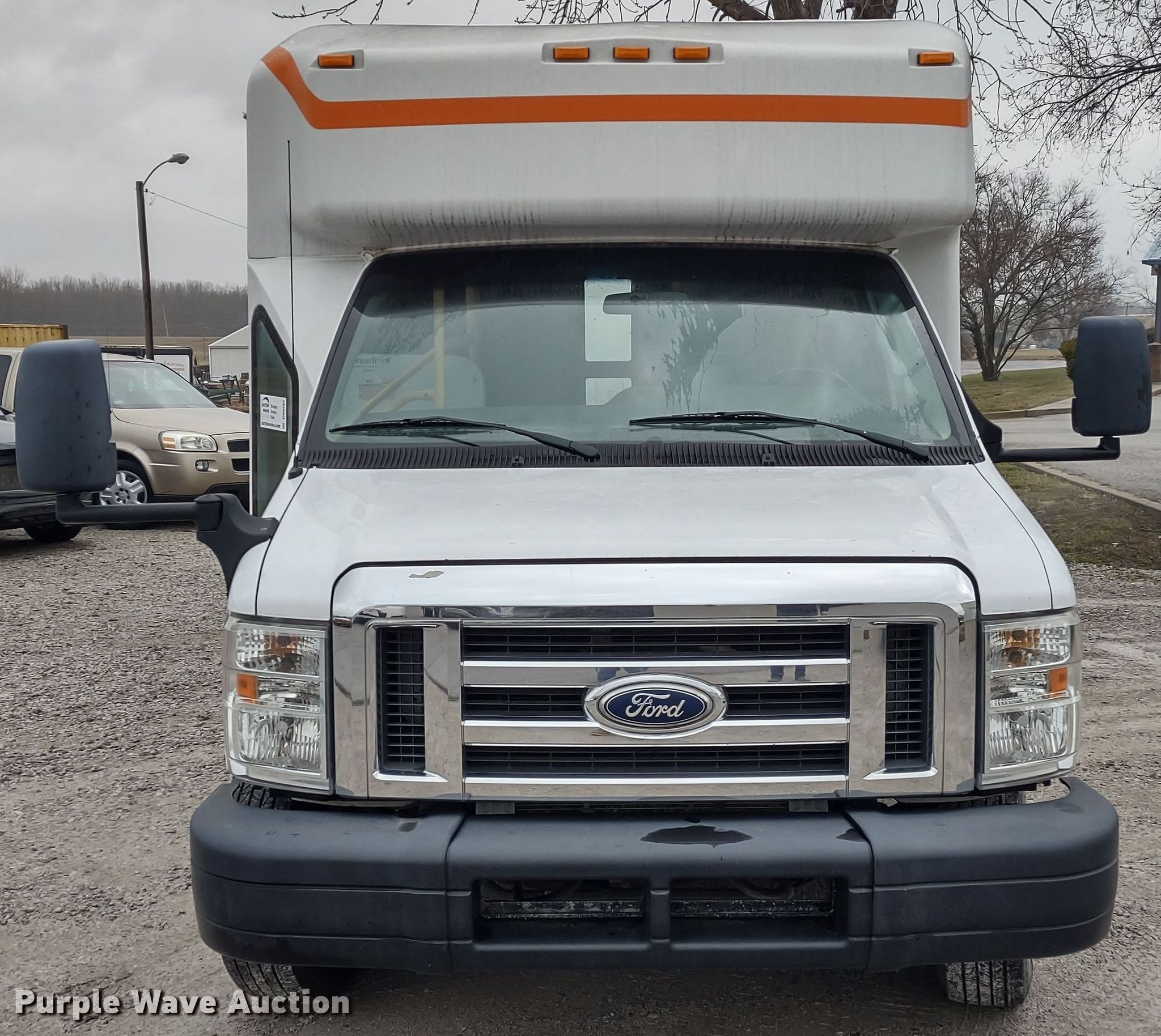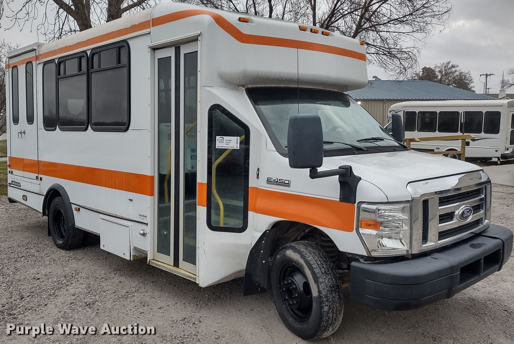 2015 Ford E450 Super Duty El Dorado shuttle bus. Miles: 165,532 on odometer, VIN: 1FDFE4FS4EDB17362. Engine Displacement: 6.8L, Cylinders: 10, Fuel type: Gas. Transmission Automatic. Chassis Axles: Single, Suspension: Spring, Brakes: Hydraulic, GVWR: 14,500 lbs. Interior AC, Heat, Heated mirrors, Cruise control, Auxiliary controls, Electric passenger sliding door, Passengers: 16, Wheelchair lift. Tires Size: 225/75R16. Kansas title. Title distribution may be delayed up to 14 days from verification of funds. Tri-Ko Inc.. 301 1st Street. Osawatomie, KS 66064