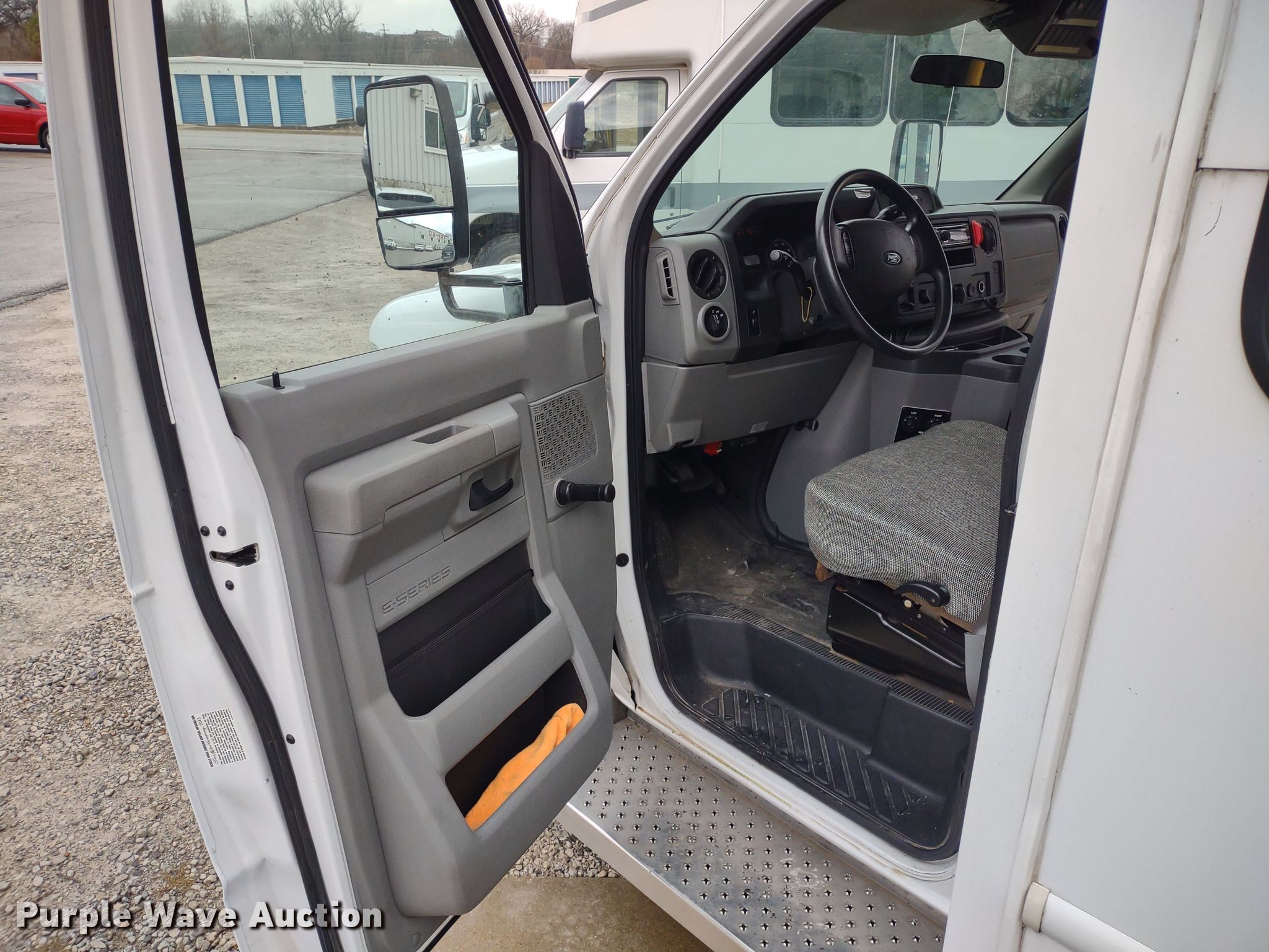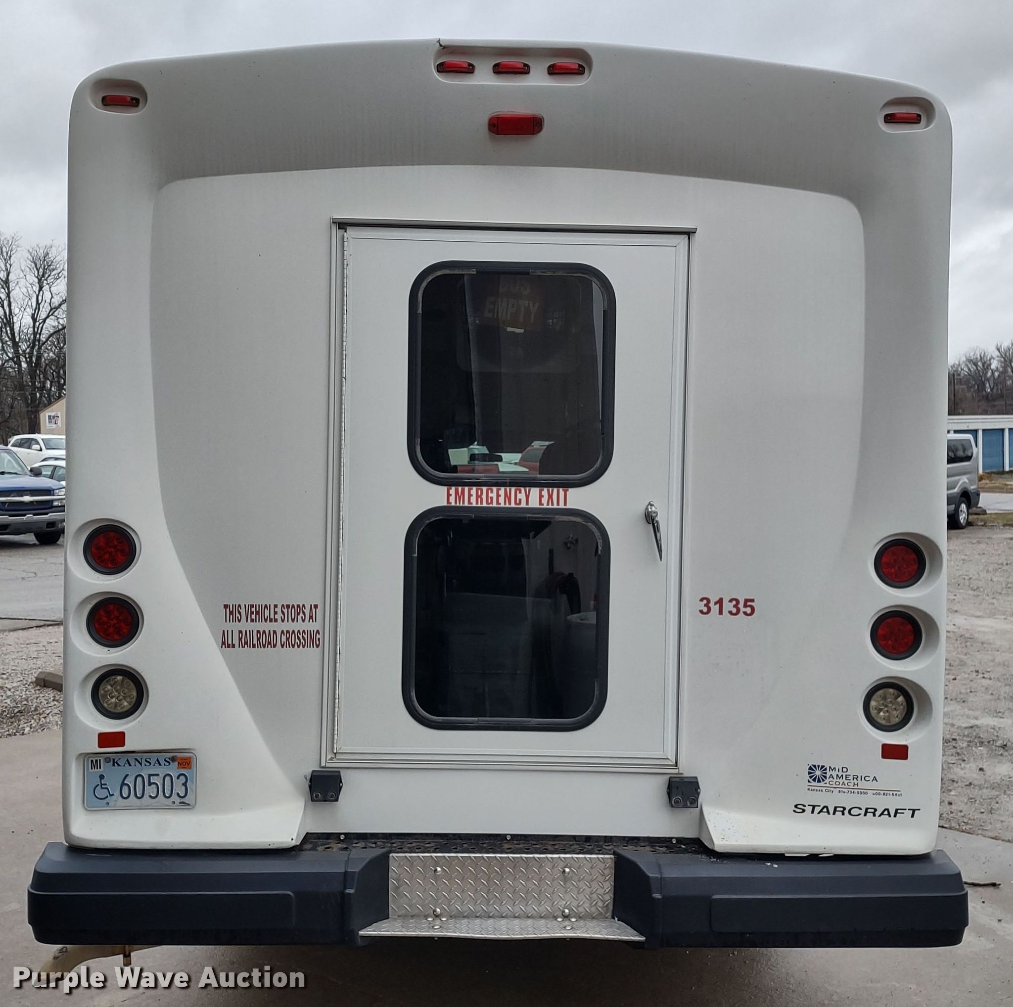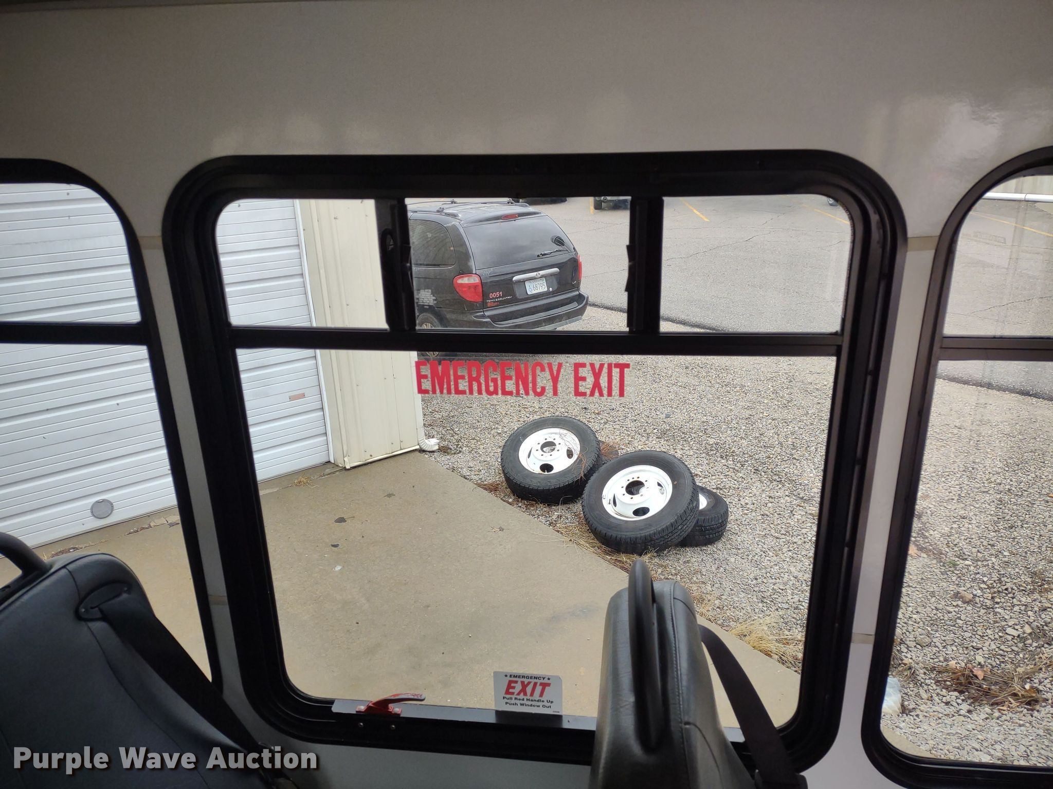 2013 Ford E450 Super Duty shuttle bus. Miles: 175,669 on odometer, VIN: 1FDFE4FS3DDA53135. Engine Displacement: 6.8L, Cylinders: 10, Fuel type: Gas. Transmission Automatic. Chassis Axles: Single, Suspension: Spring, Brakes: Hydraulic, GVWR: 14,500 lbs. Interior AC, Heat, Heated mirrors, Cruise control, Auxiliary controls, Electric passenger sliding door, Passengers: 14, Wheelchair lift. Tires Size: 225/75R16. Kansas title. Title distribution may be delayed up to 14 days from verification of funds. Tri-Ko Inc.. 301 1st Street. Osawatomie, KS 66064