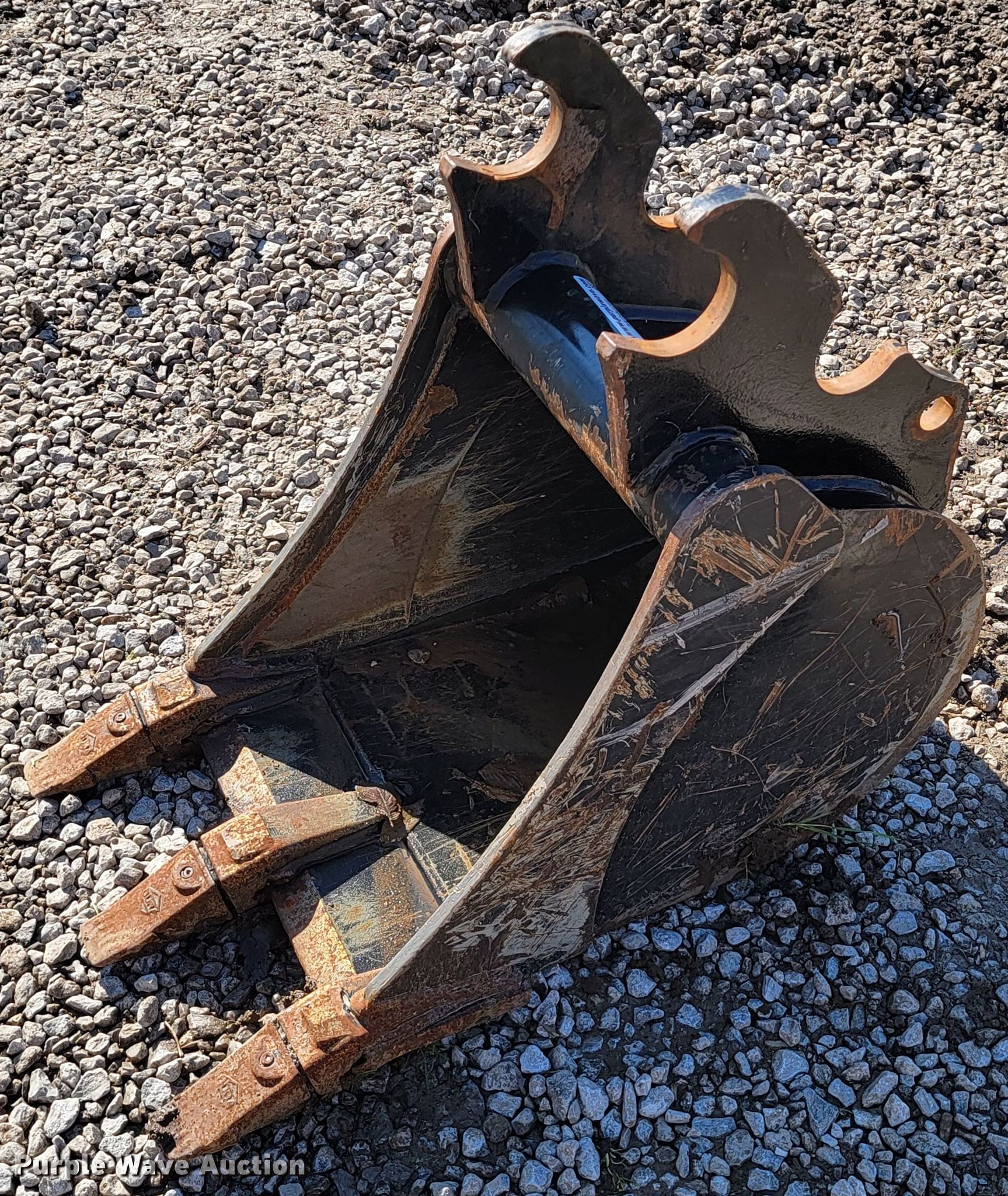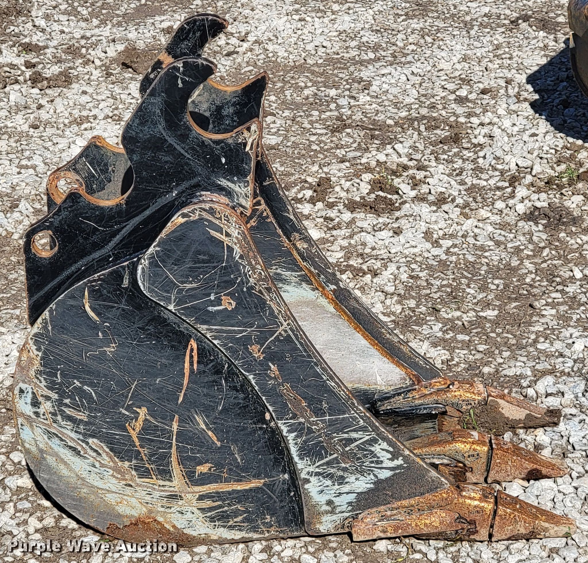 Purple Wave is selling a used Excavator Attach. in Oklahoma. This item is a Kubota excavator bucket with the following: Width: 16", Cutting edge: Weld-on, Teeth: Weld-on