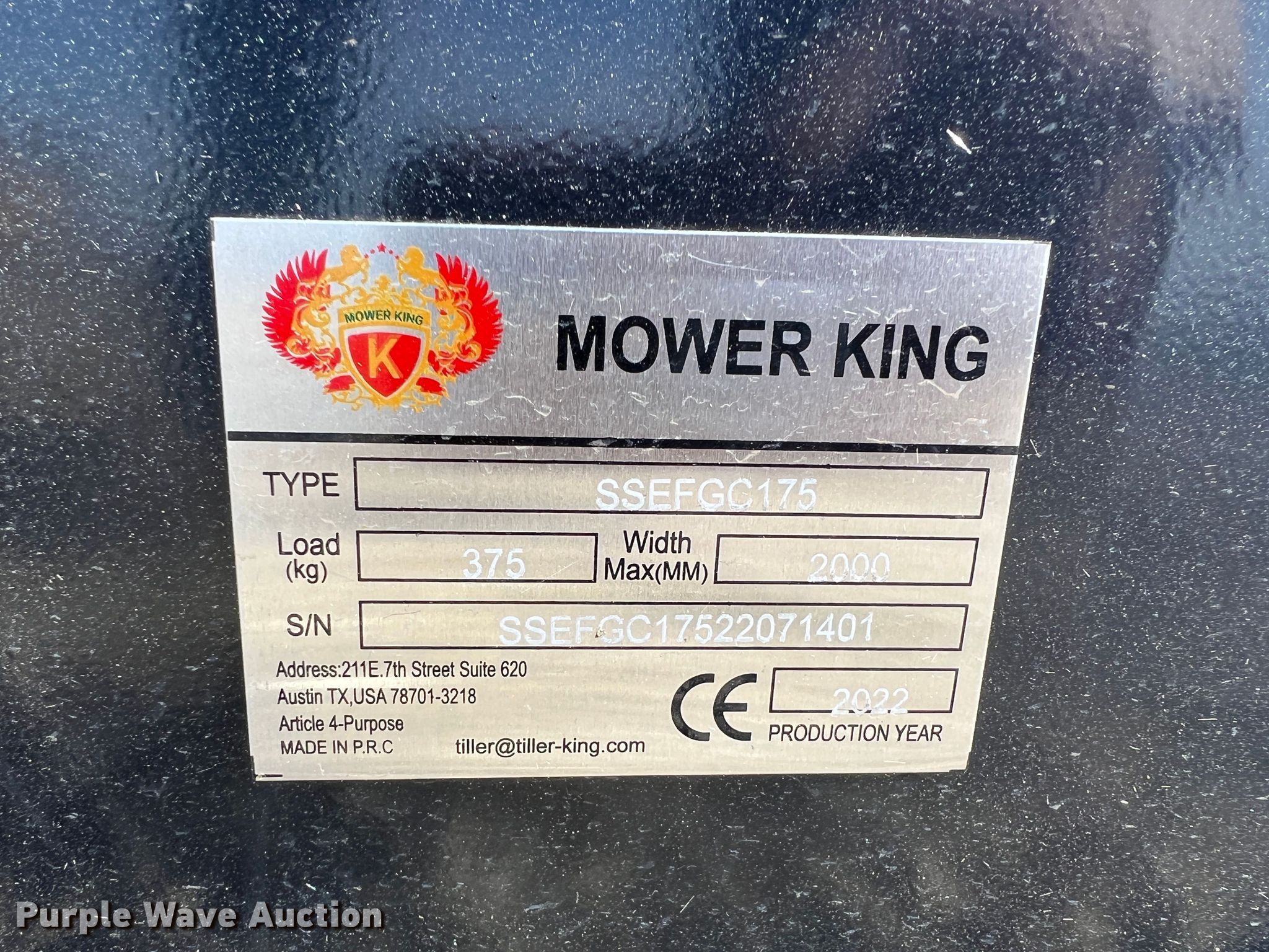 Purple Wave is selling a used Skid Steer Attach. in Kansas. This item is a 2022 Mower King SSEFGC175 skid steer flail mower with the following: Serial: SSEFGC17522071401, Width: 68"