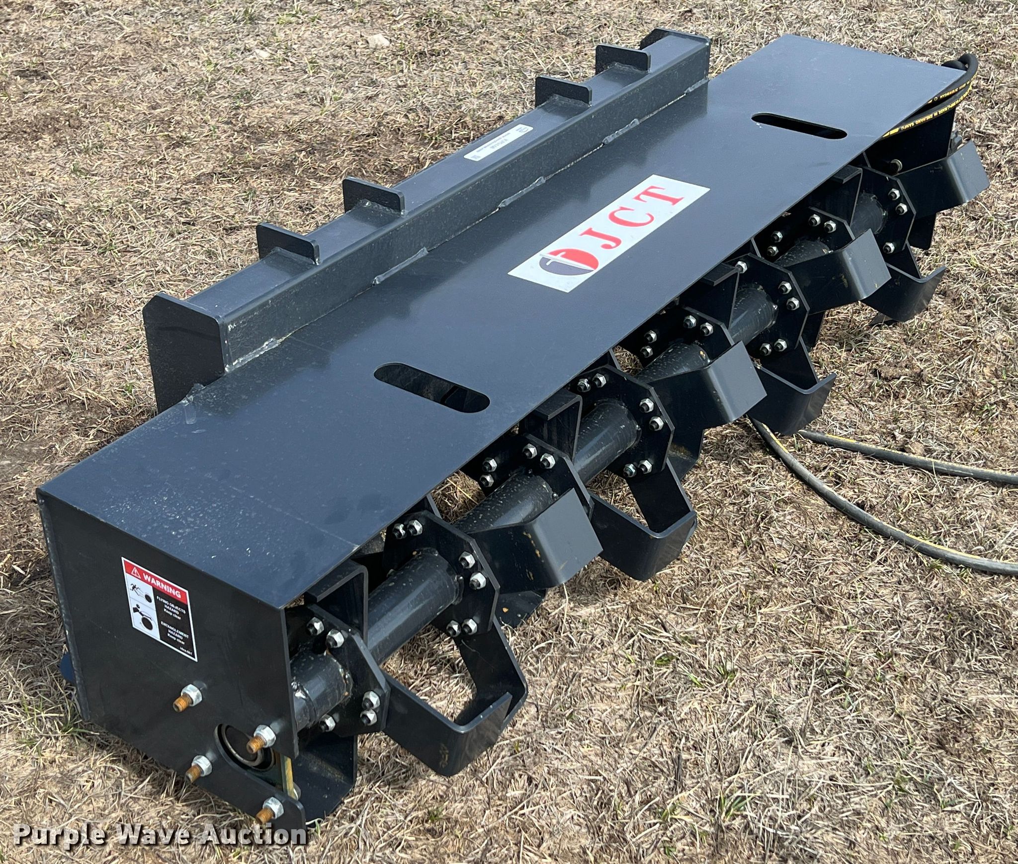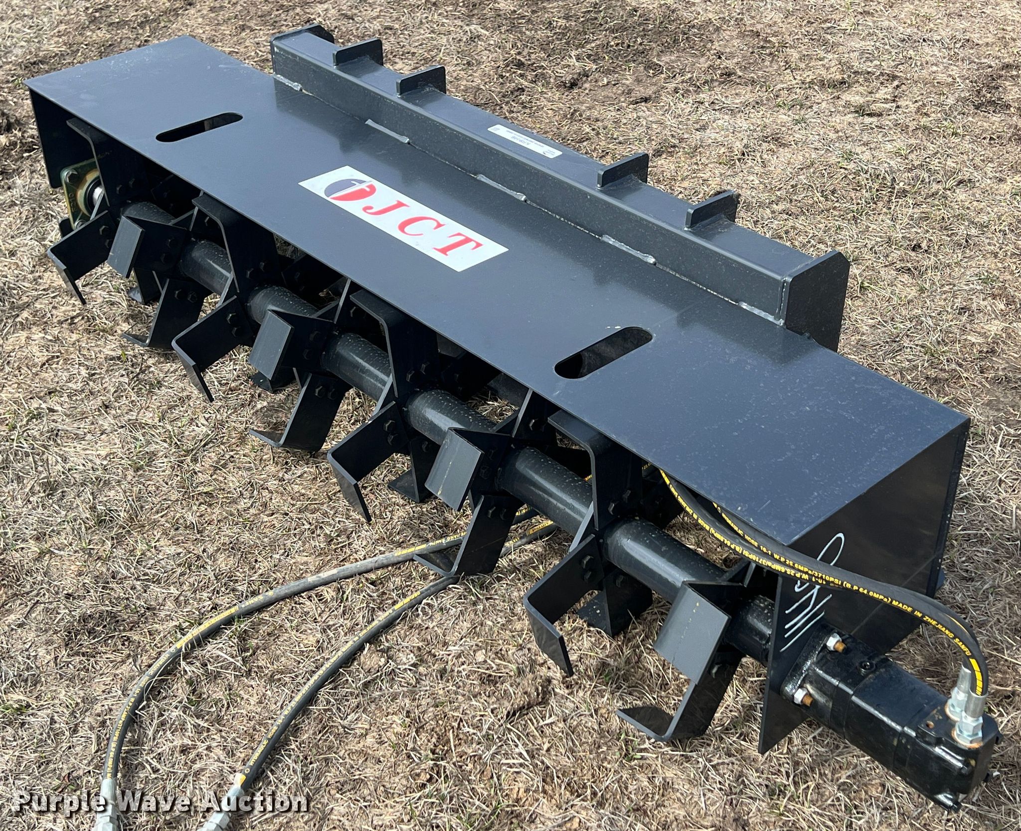 Purple Wave is selling a used Skid Steer Attach. in Kansas. This item is a JCT skid steer tiller with the following: Width: 72", Unused