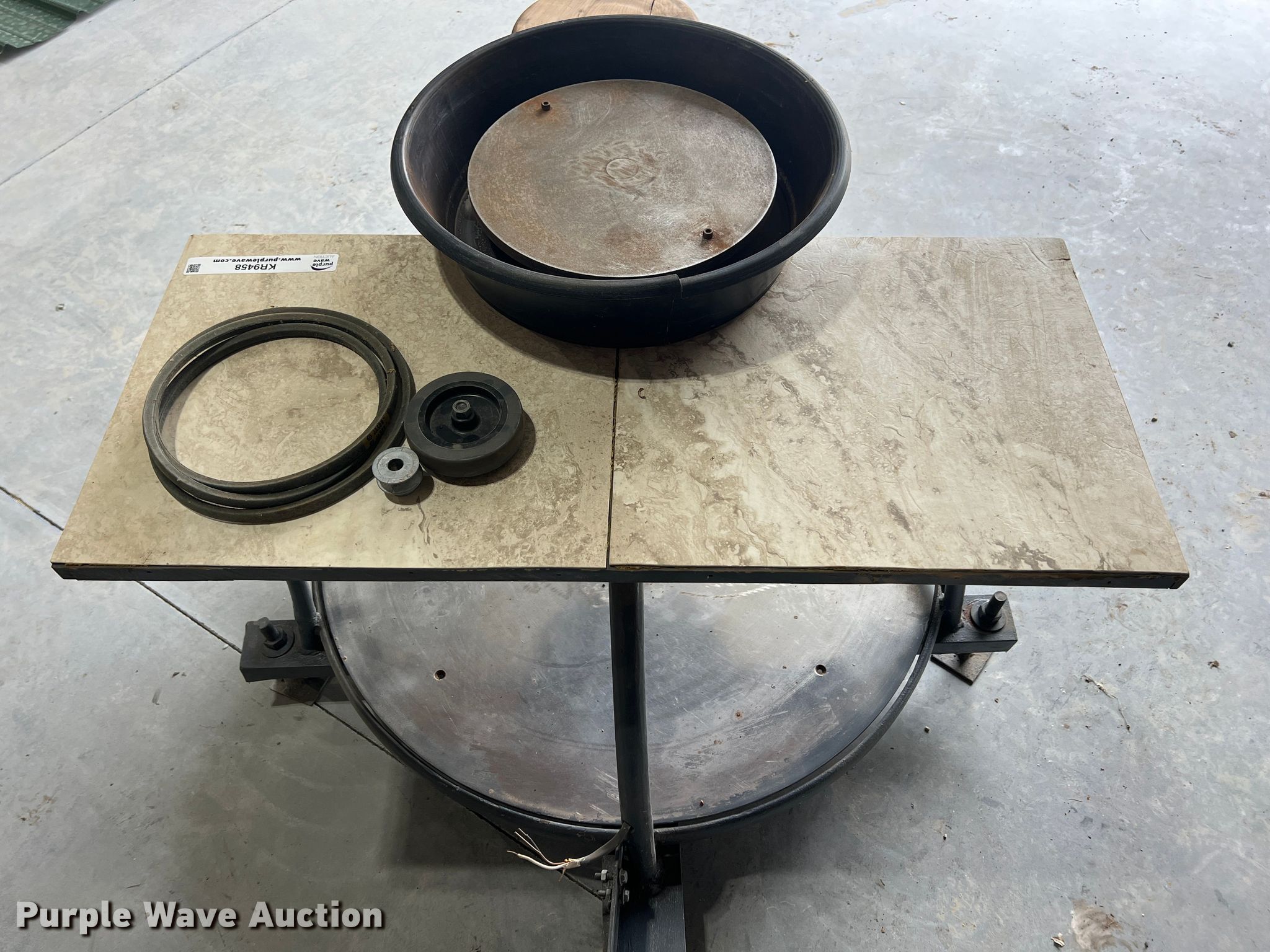 Purple Wave is selling a used Sporting Goods in Kansas. This item is a Pottery wheel with the following: 36" diameter kick wheel, 10" pin spacing