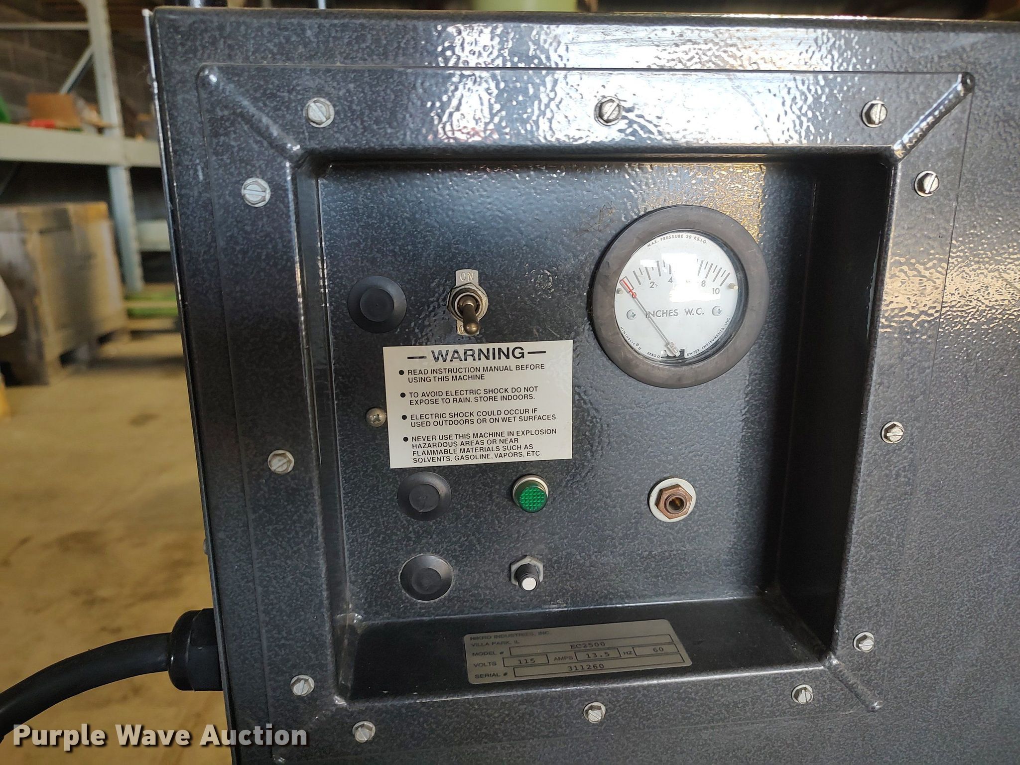 Purple Wave is selling a used Appliances in Kansas. This item is a Nikro Industries duct cleaner with the following: Model: EC2500, Serial: 311260, Volts: 115, HEPA filtered