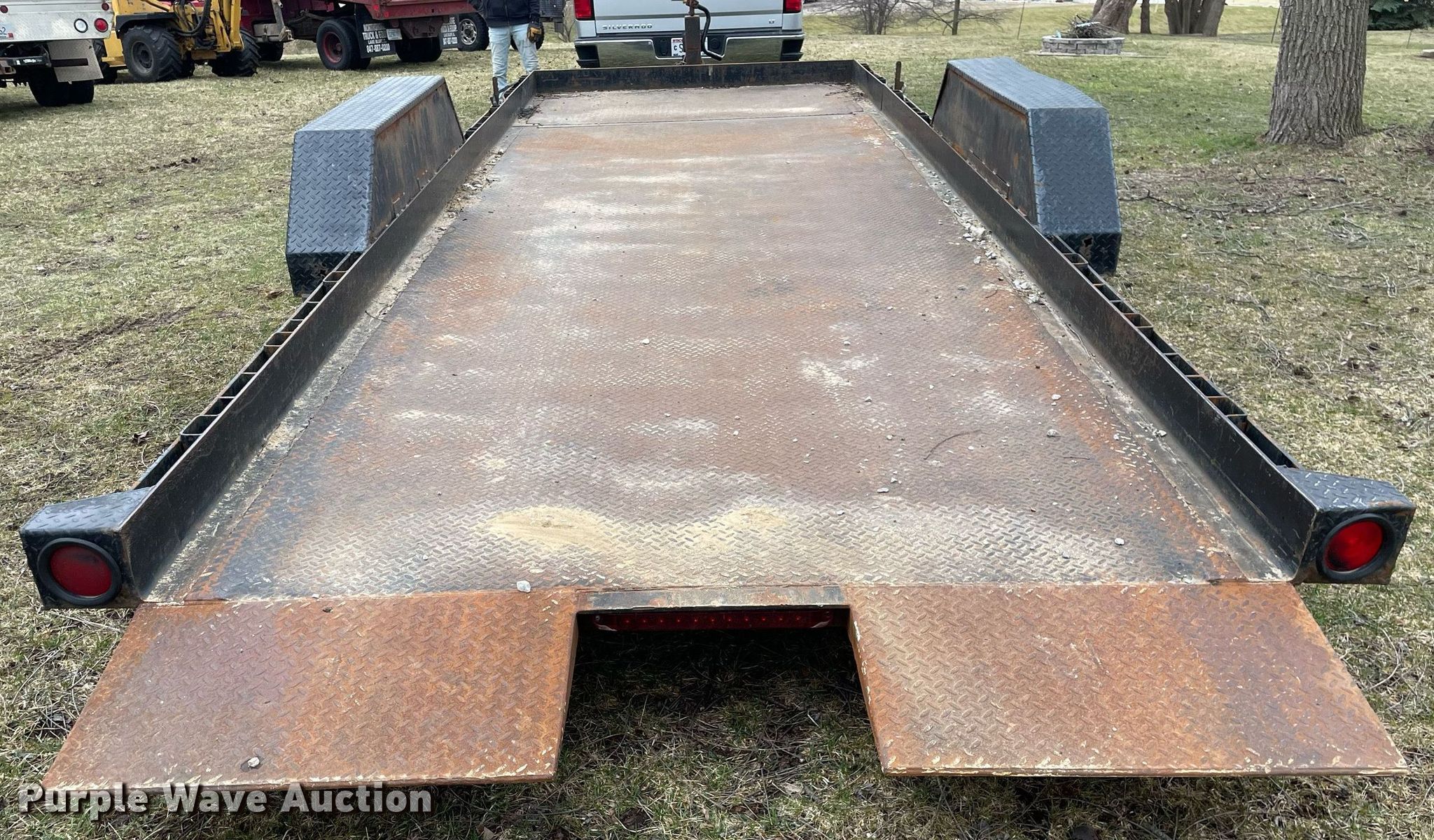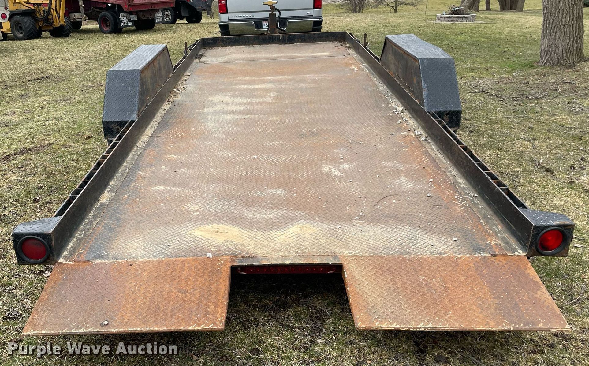 2005 Liberty Industries Inc tilt deck equipment trailer. VIN: 5M4LT20215F002244. Dimensions Overall: 26' L x 84" W, Deck: 20' L x 79" W, Tail length: 16". Features Deck type: Steel. Chassis Hitch: Pintle, Landing gear: Single, Suspension: Spring, Brakes: Electric, Axles: Tandem, GVWR: 9,990 lbs, GAWR: 7,000 lbs. Tires Steel wheels, Size: 235/85R16. Wisconsin title. Title distribution may be delayed up to 14 days from verification of funds. South East Communications, Inc.. 115 North Walworth Street. Darien, WI 53114