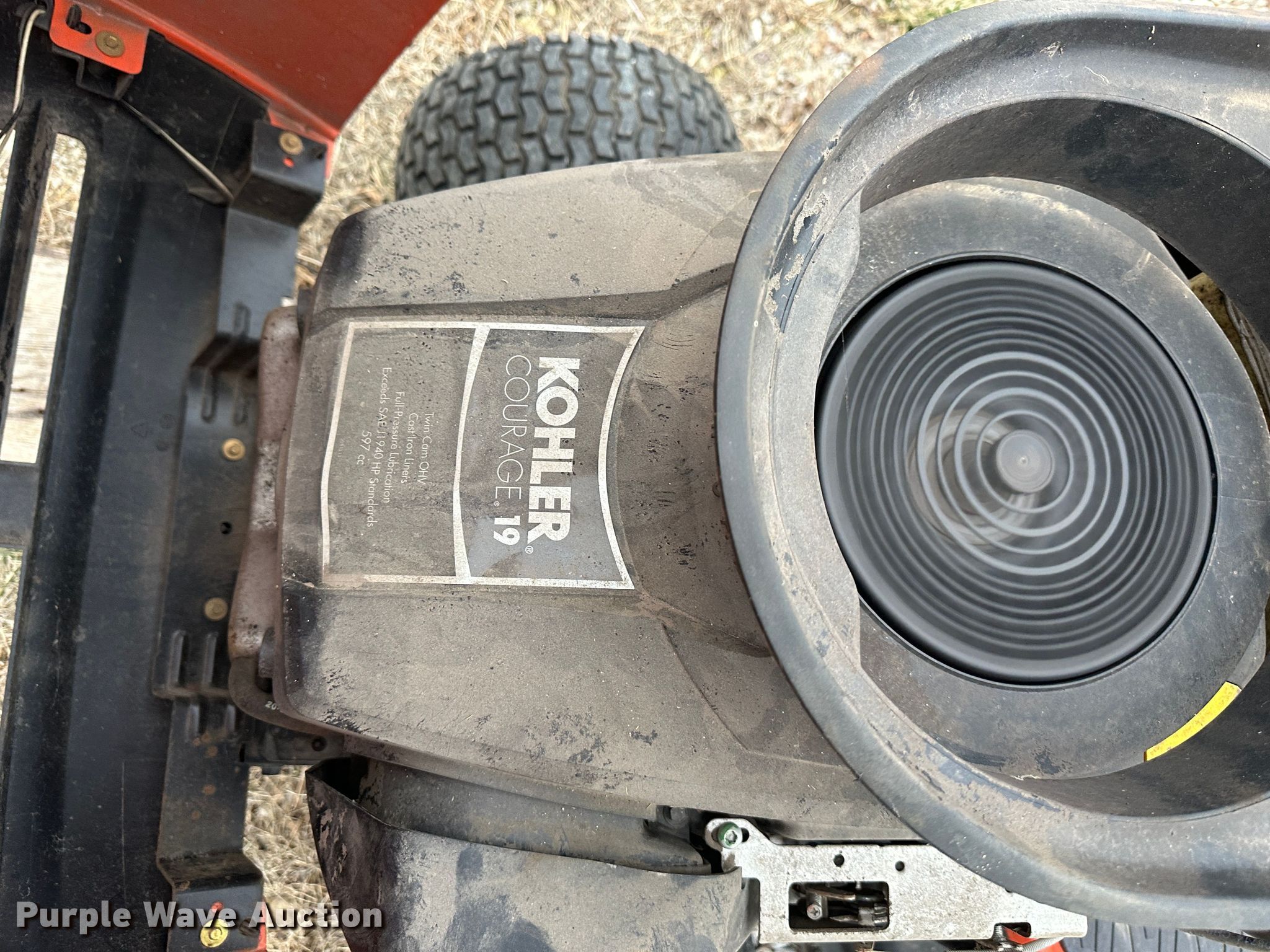 Ariens lawn mower. Cutting width: 42", Serial: 072309A015543. Engine Kohler, Cylinders: 2, Fuel type: Gas, HP: 19. Transmission Hydrostatic. Tires Front: 15x6.00-6, Rear: 18x9.50-8. R & R Enterprises of K.C.. Kansas City, KS 66101