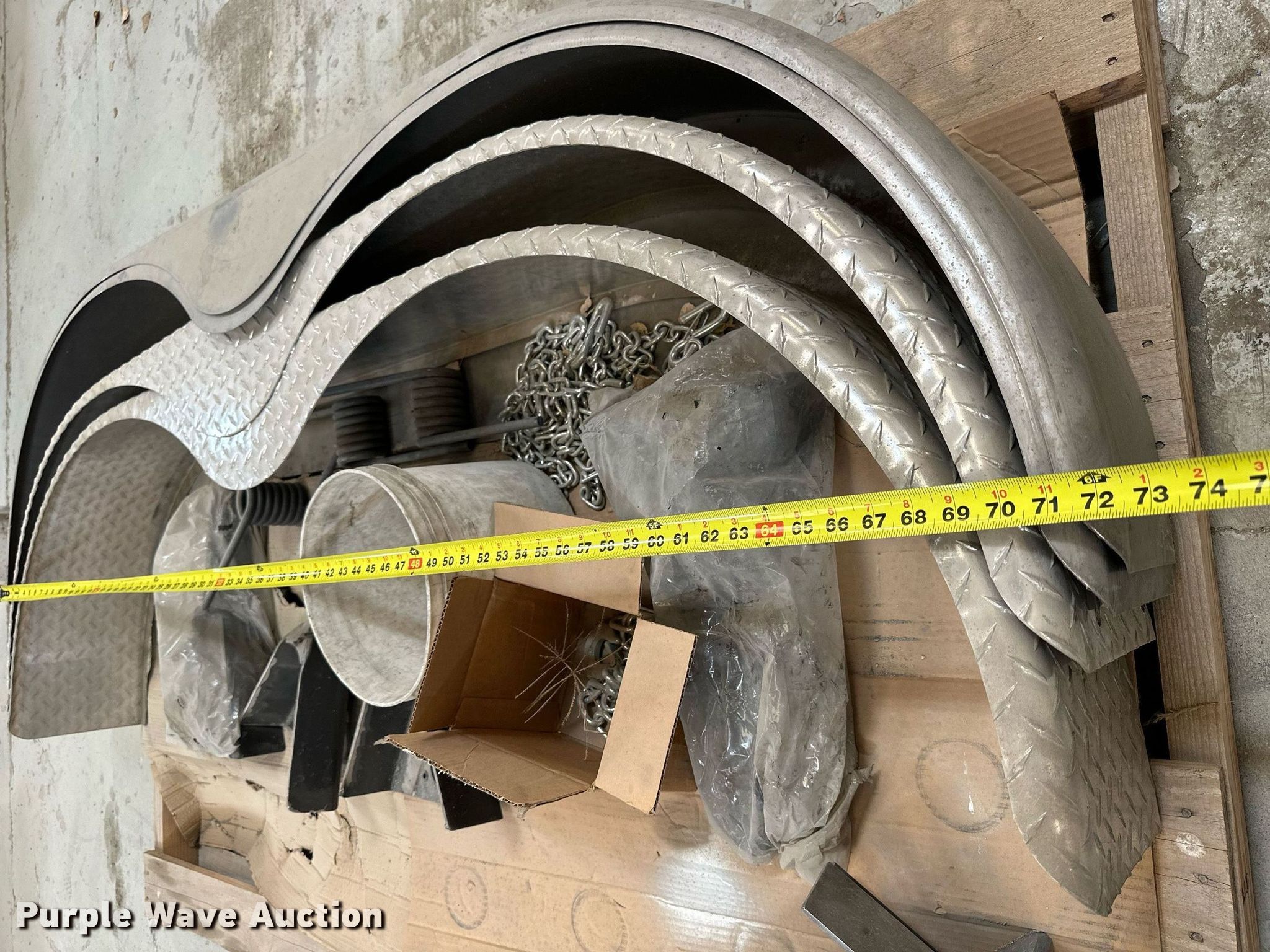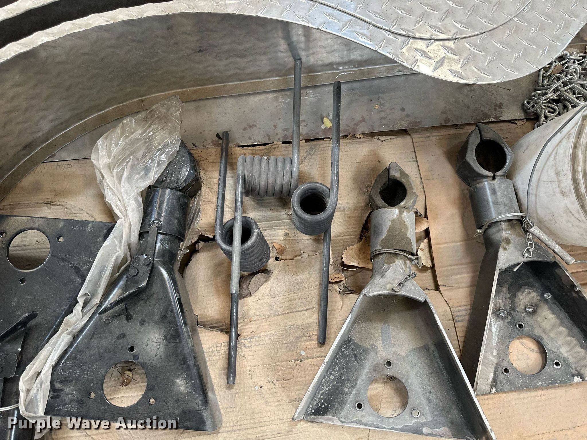 Purple Wave is selling a used Automotive Parts or Acces. in Kansas. This item is a Trailer parts with the following: (2) steel tandem fenders, (2) aluminum tandem fenders, (3) 2 5/16" ball hitch, 2" ball hitch